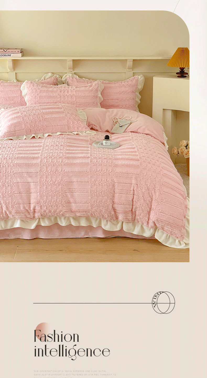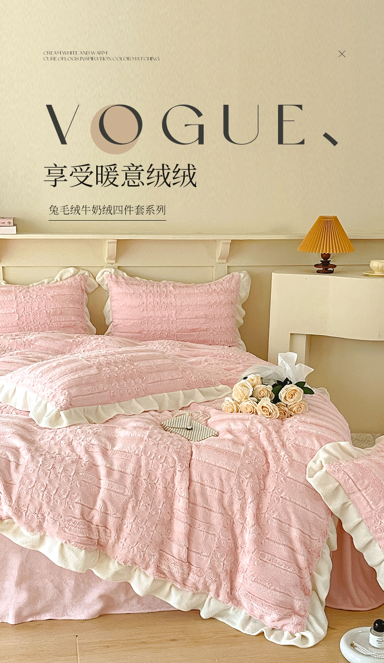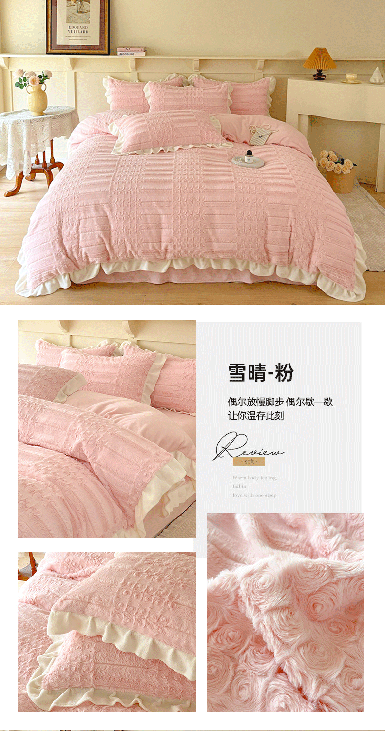 N先生 2023秋冬新款兔毛绒花边款四件套-雪晴系列 雪晴-粉