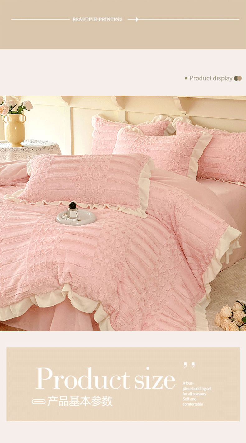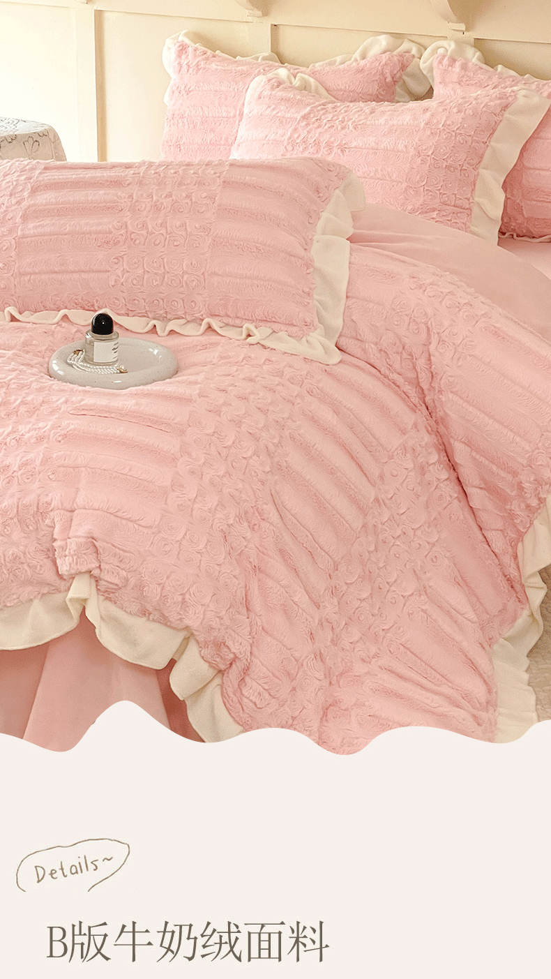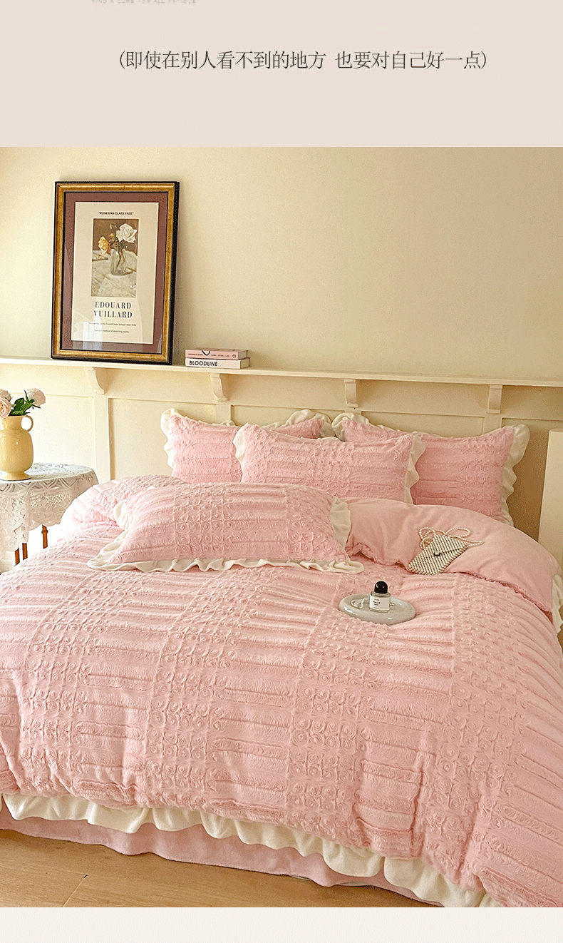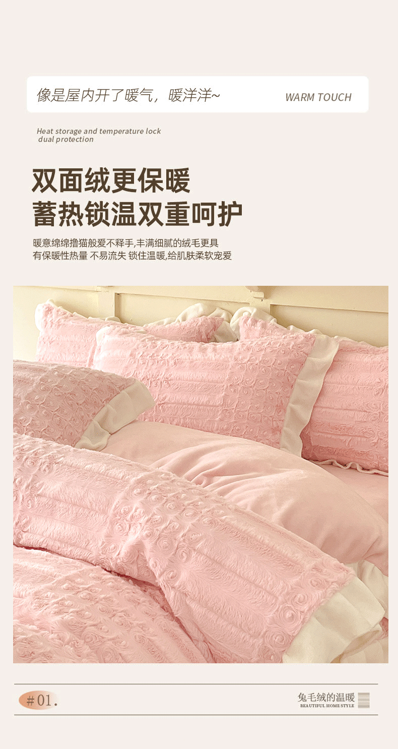 N先生 2023秋冬新款兔毛绒花边款四件套-雪晴系列 雪晴-粉