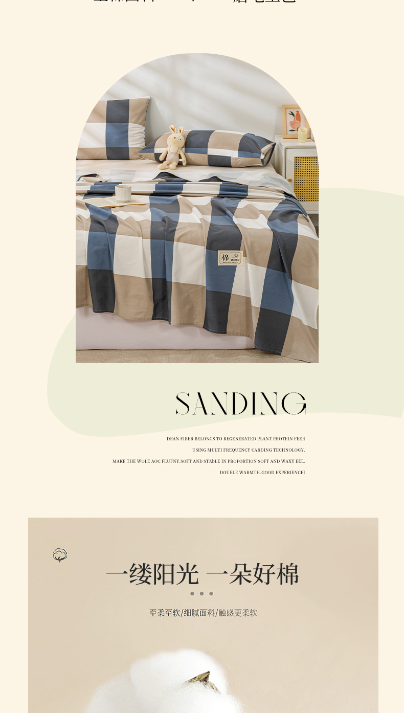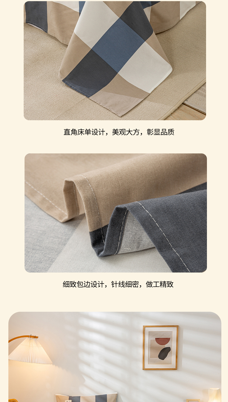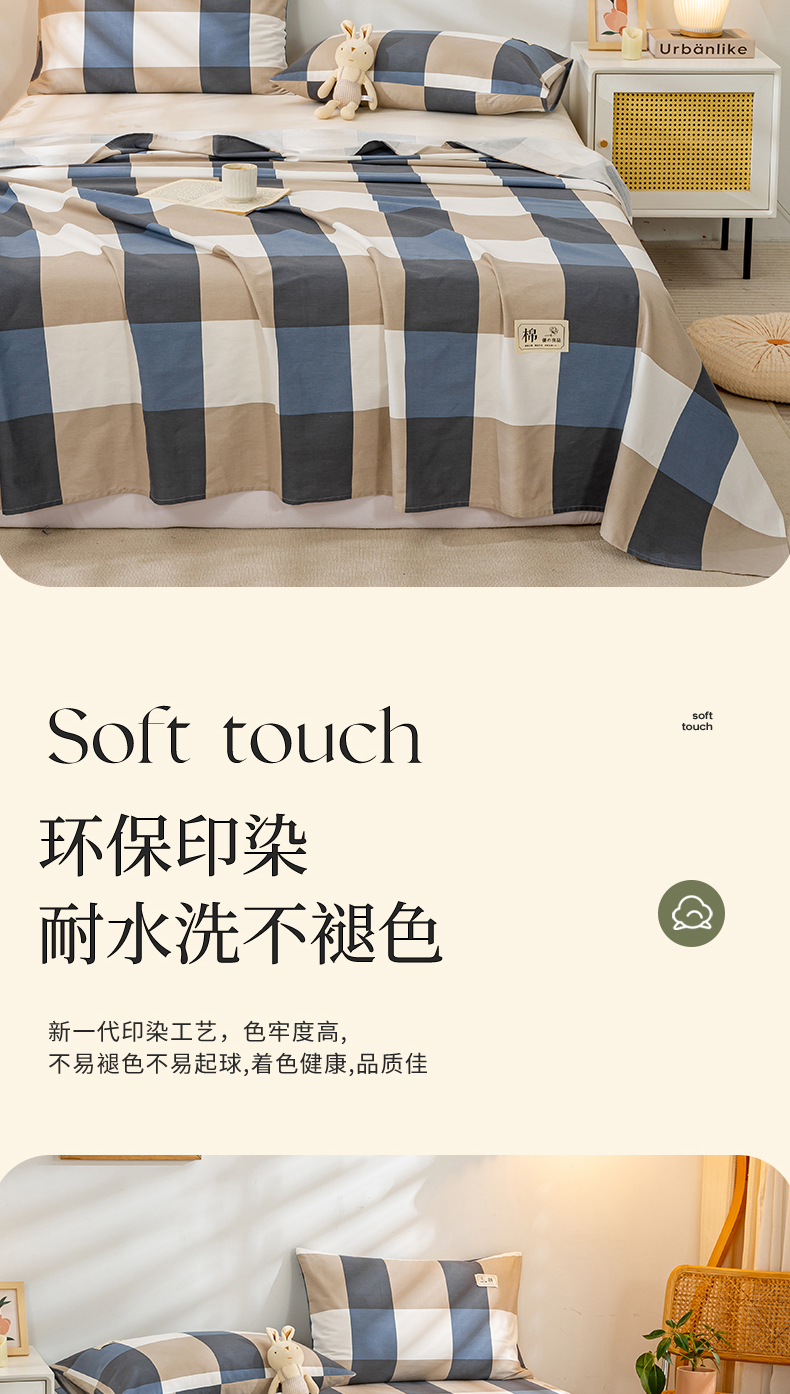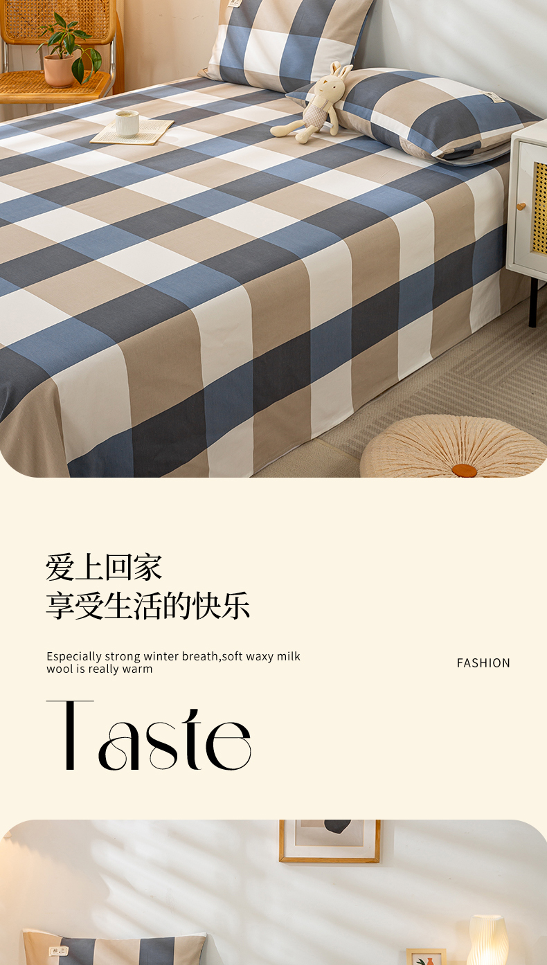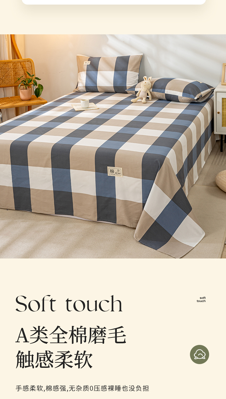 • 91家纺网 家纺一手货源 找家纺 恋人优选 2023新款纯棉磨毛单品床单 蓝大格