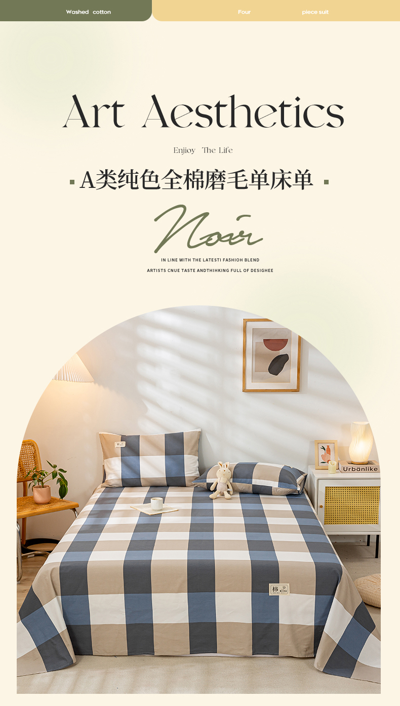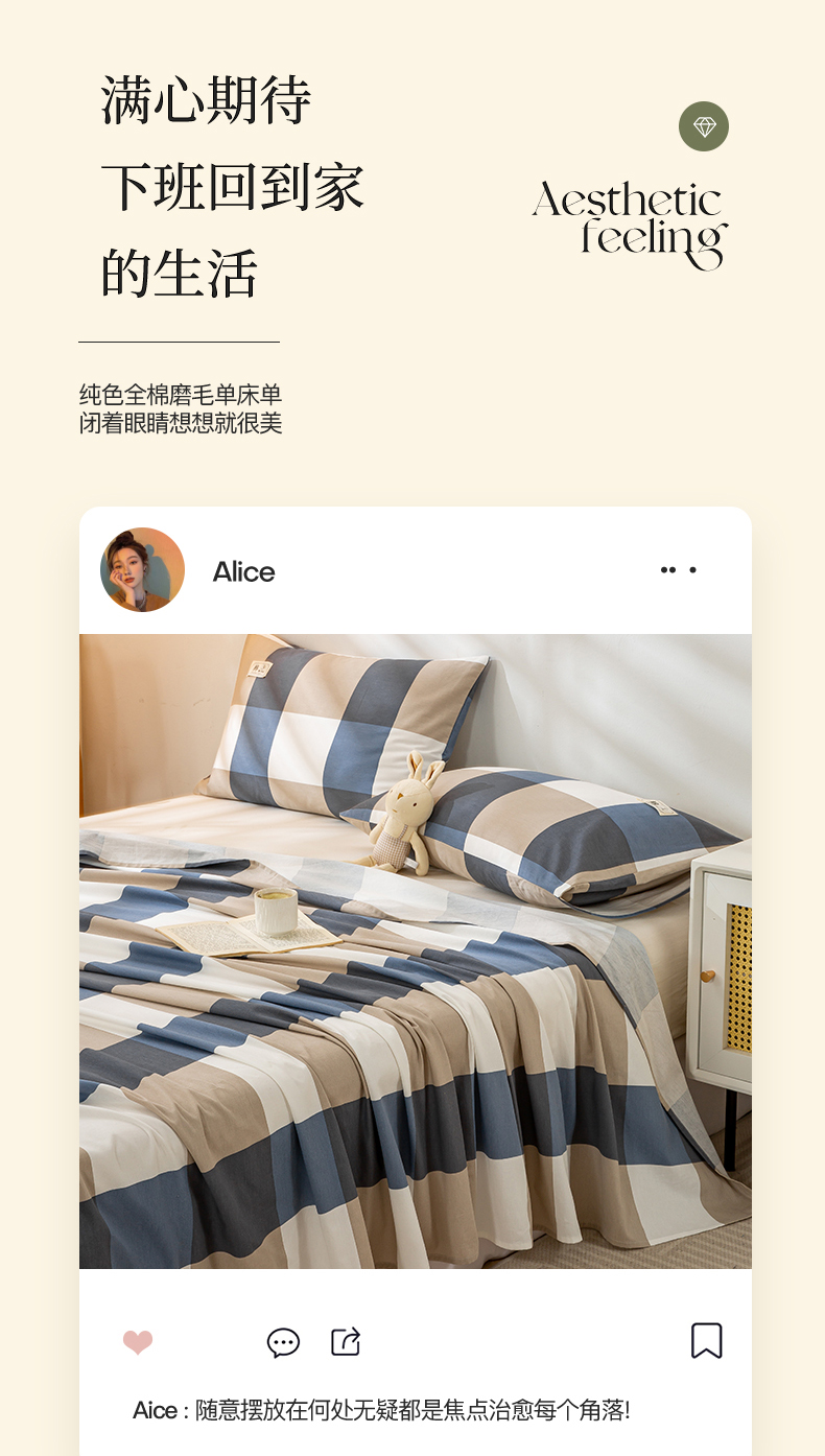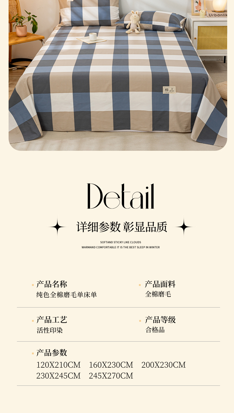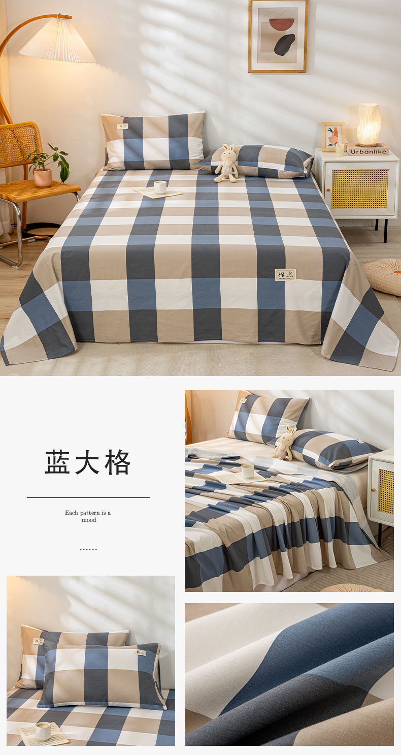 当前位置: 91家纺网 > 商品网购 > 床上用品 > 床单 > 恋人优选 2023新款纯棉磨毛单品床单 蓝大格