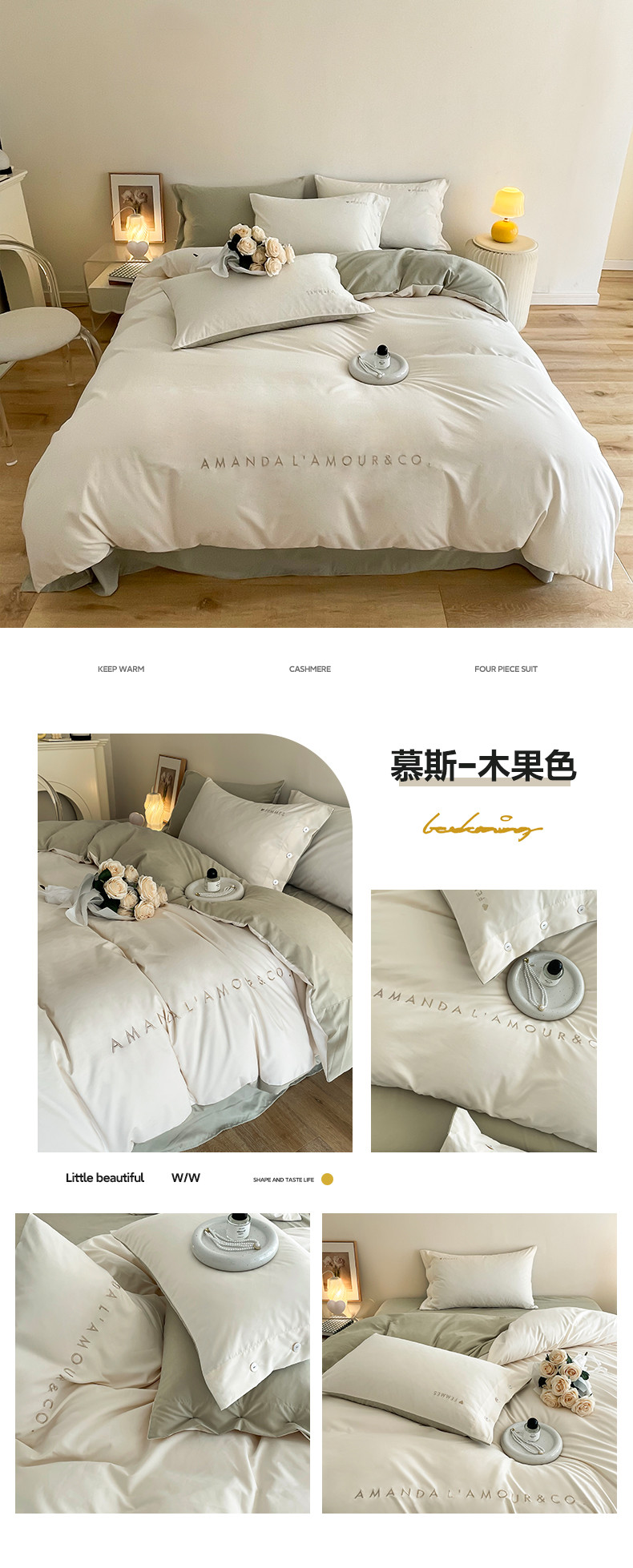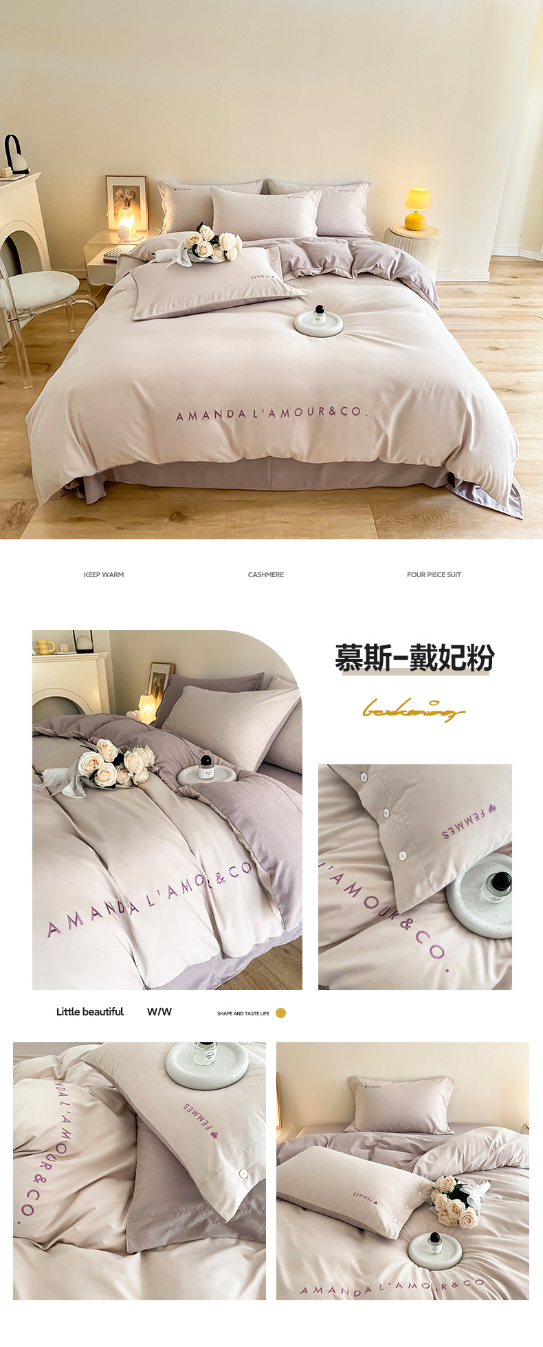 商品名称:(总)布可 2025秋冬新款云朵绒轻奢刺绣四件套-慕斯