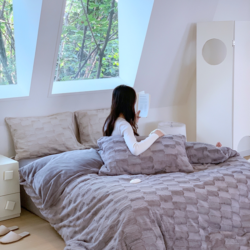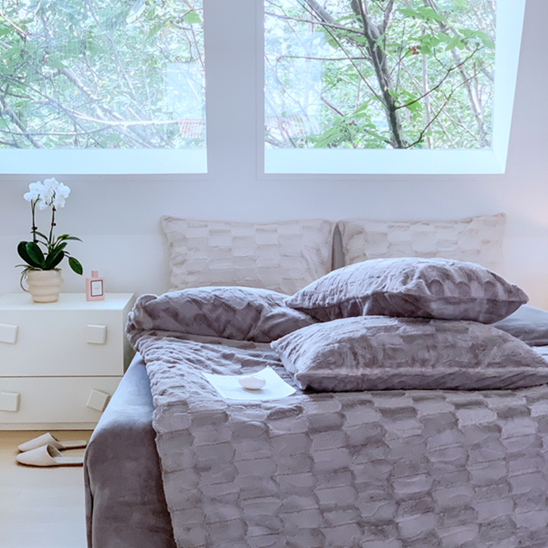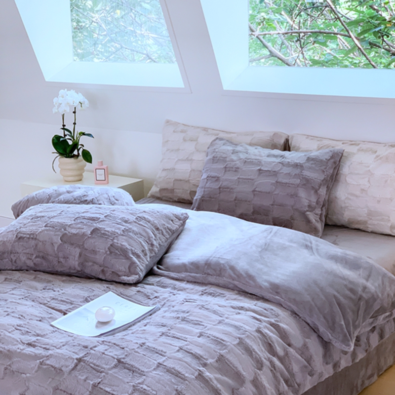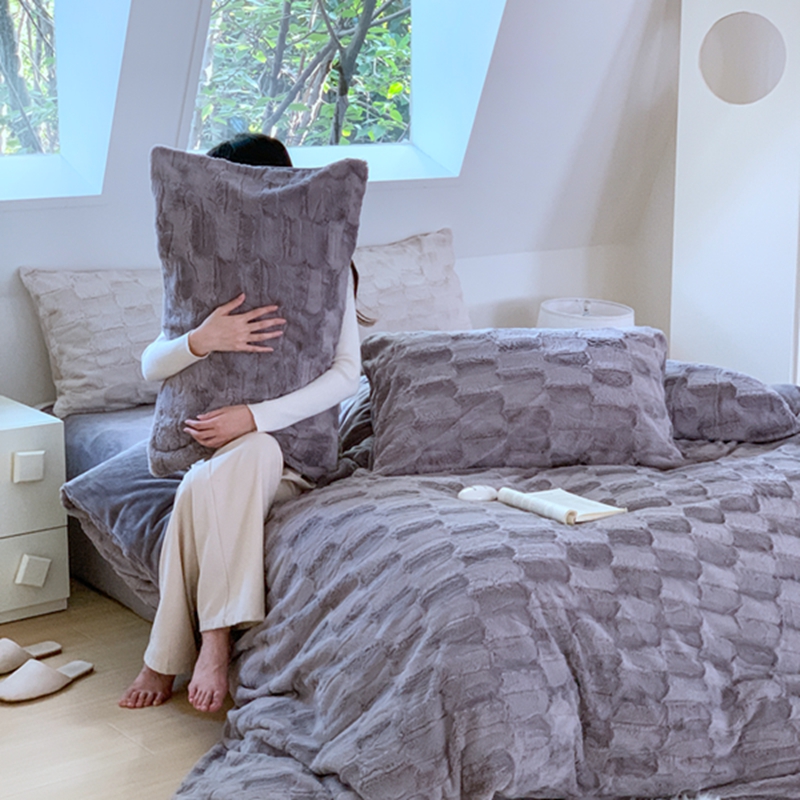 昔可家纺 2023兔兔绒四件套 格调灰