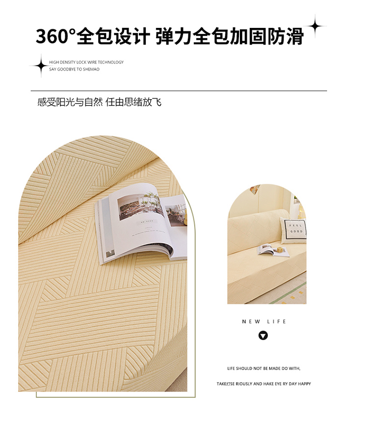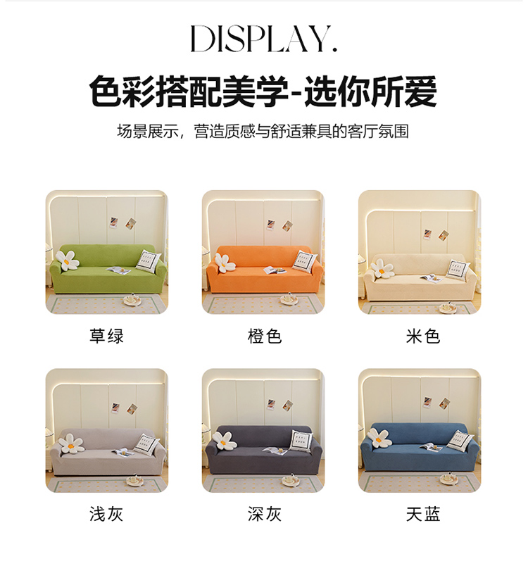 (总)天下布艺 2023新款纯色摇粒绒升级北欧百褶裙摆工艺通用沙发笠—斜格裙边,1,2,3,4,5,6,7,8,拼色1