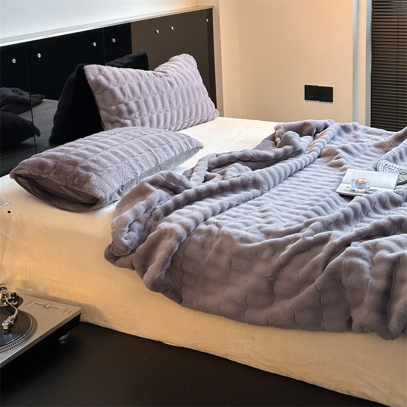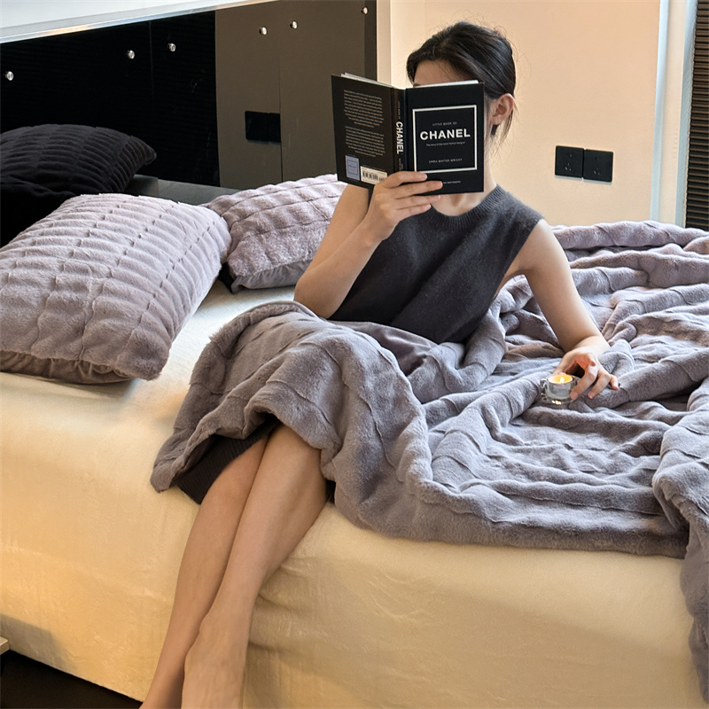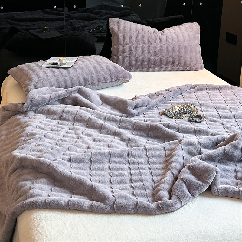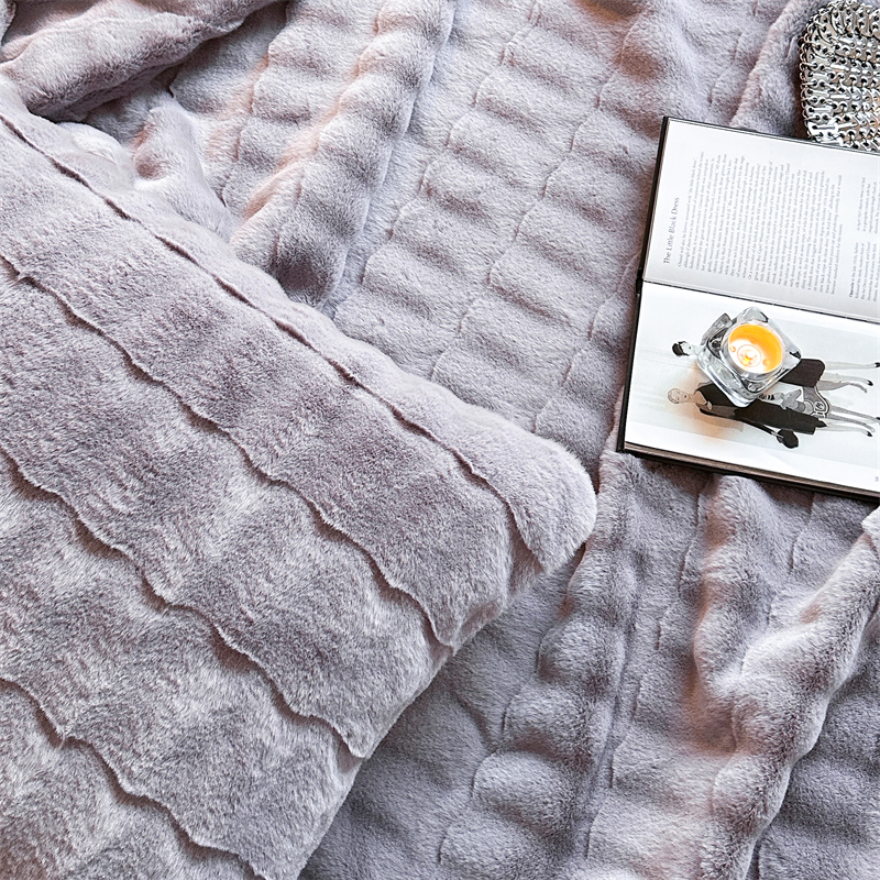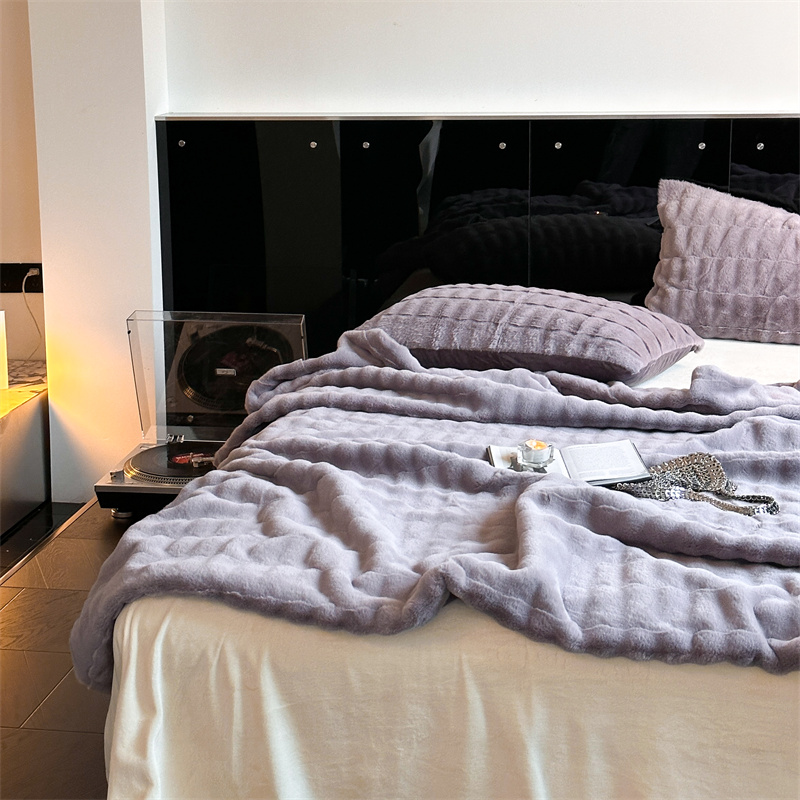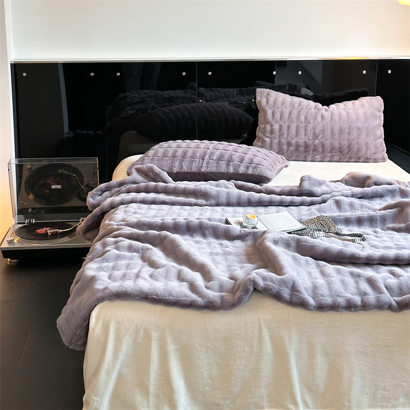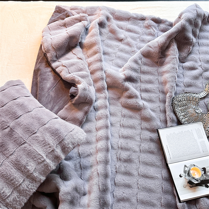 商品名称:初拾 2023新款高端贵妇皮草绒毛毯——莉莉安舞会 莉莉安舞会-紫灰