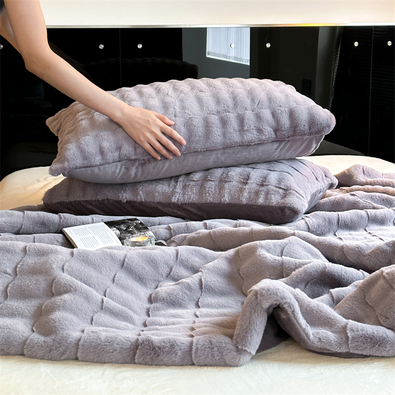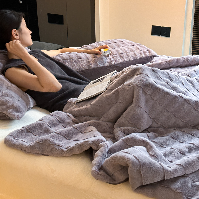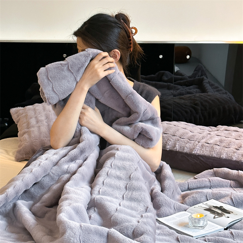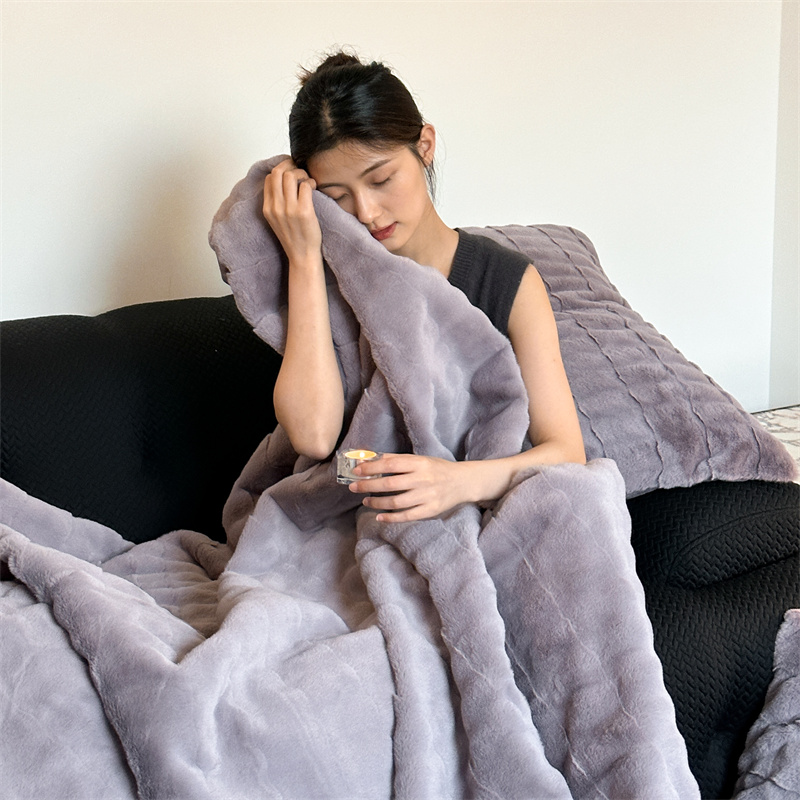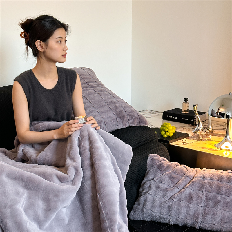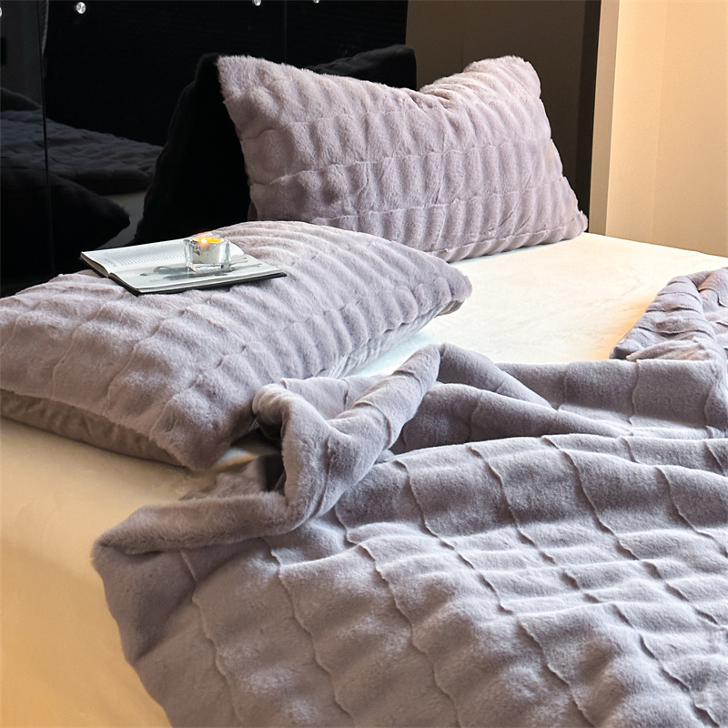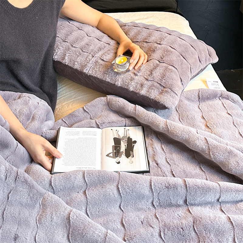 商品名称:初拾 2023新款高端贵妇皮草绒毛毯——莉莉安舞会 莉莉安舞会-紫灰