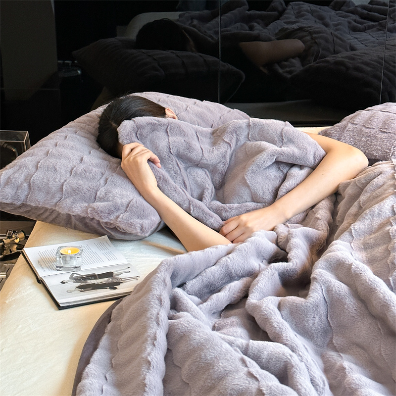 初拾 2023新款高端贵妇皮草绒毛毯——莉莉安舞会 莉莉安舞会-紫灰