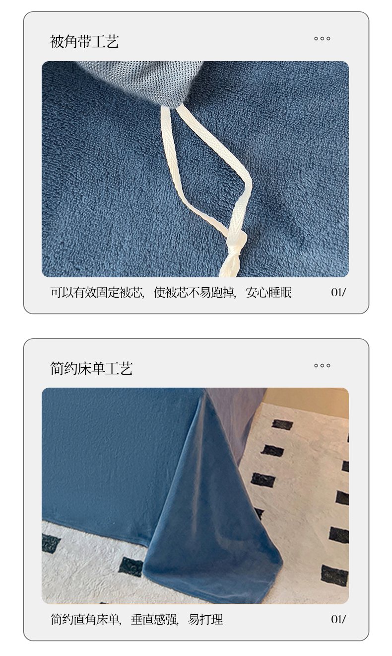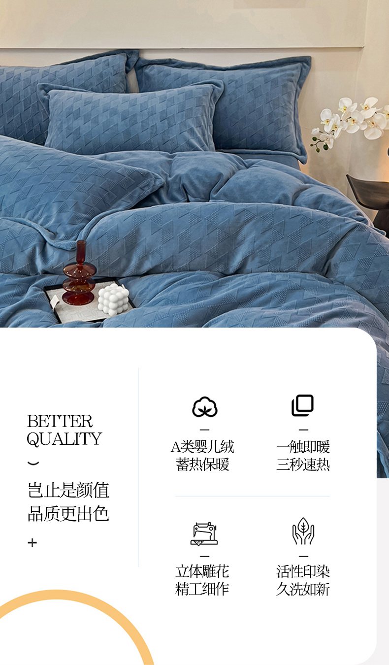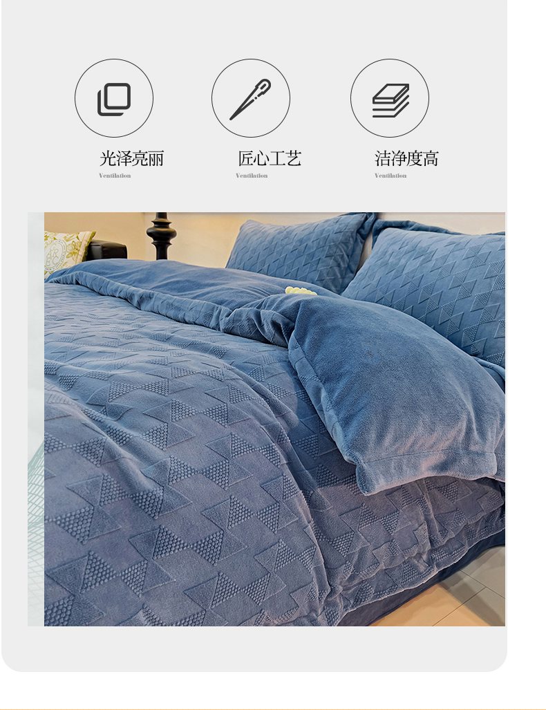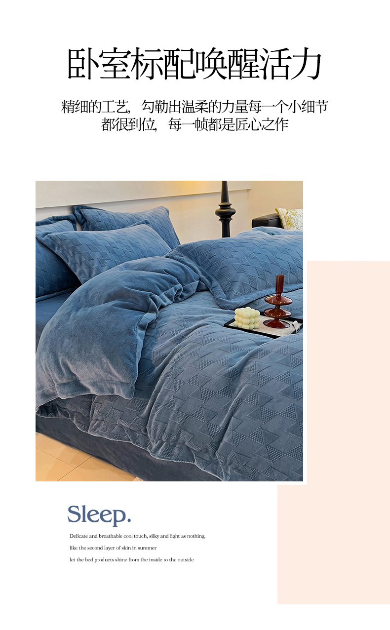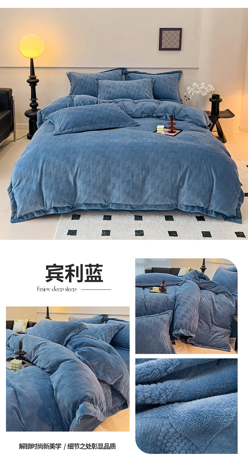 商品名称:米奈家居 2024新款A类高克重牛奶绒四件套-瑞利 宾利蓝
