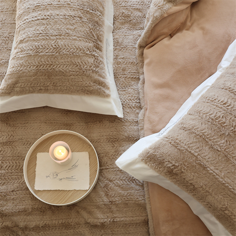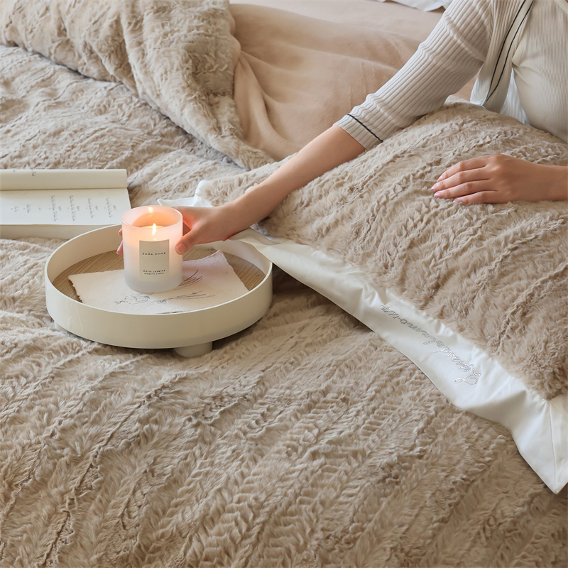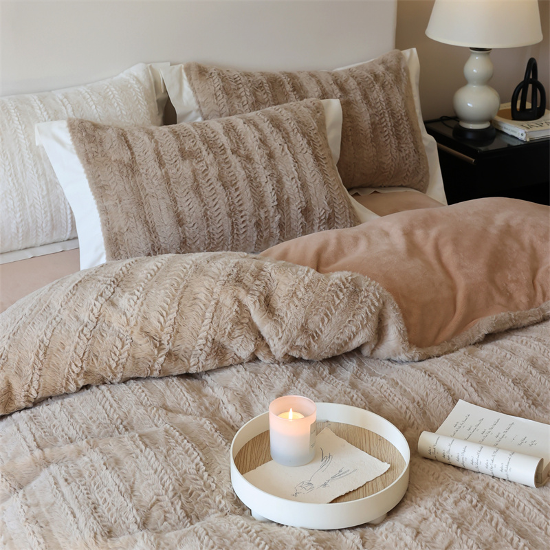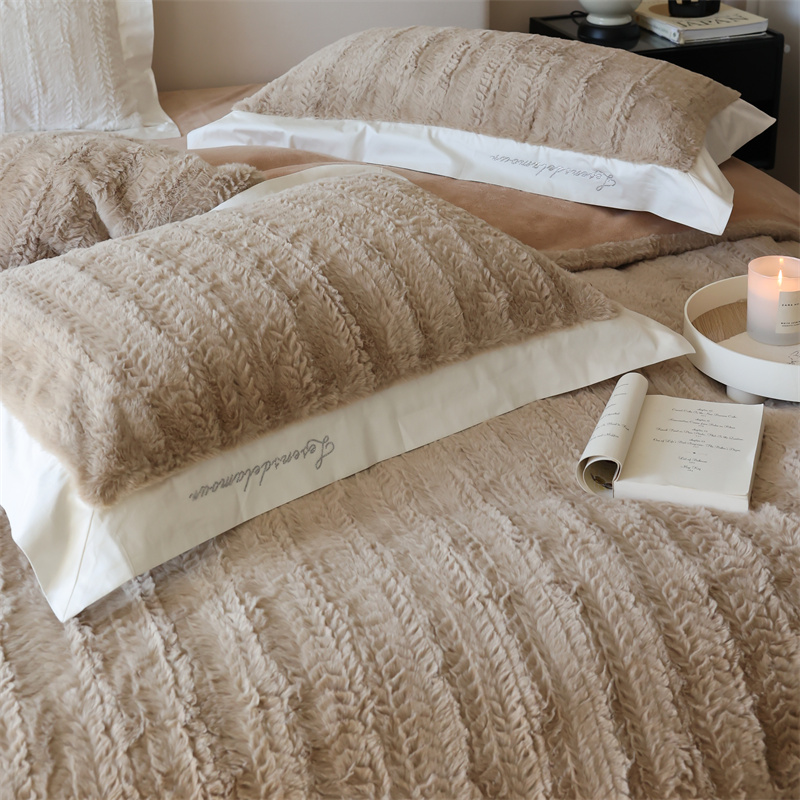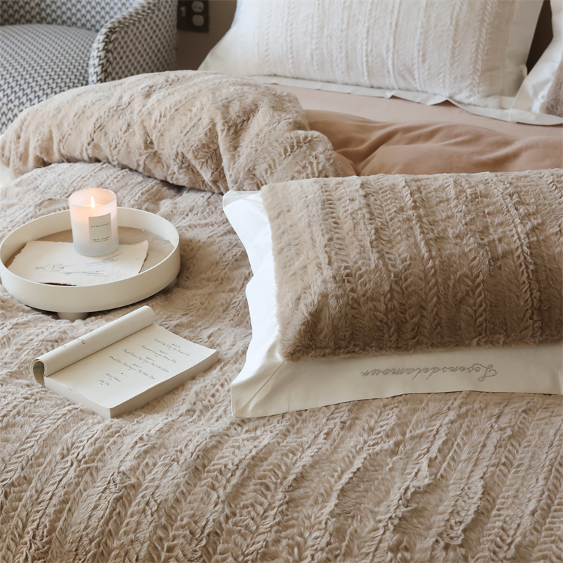 初拾 2023新款托斯卡纳皮草绒极简高端系列四件套—赫本 赫本-奶茶驼