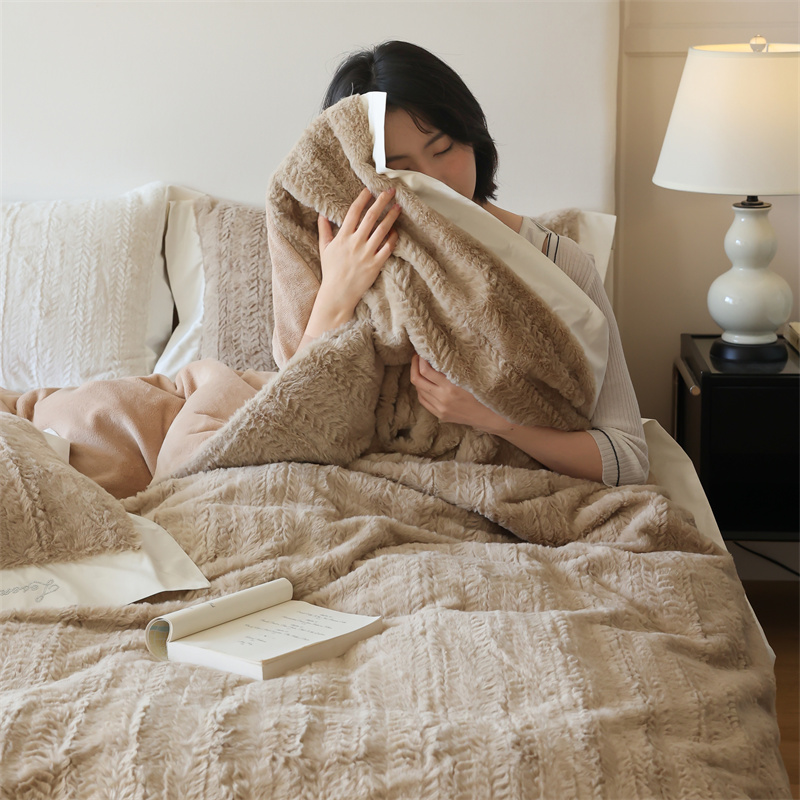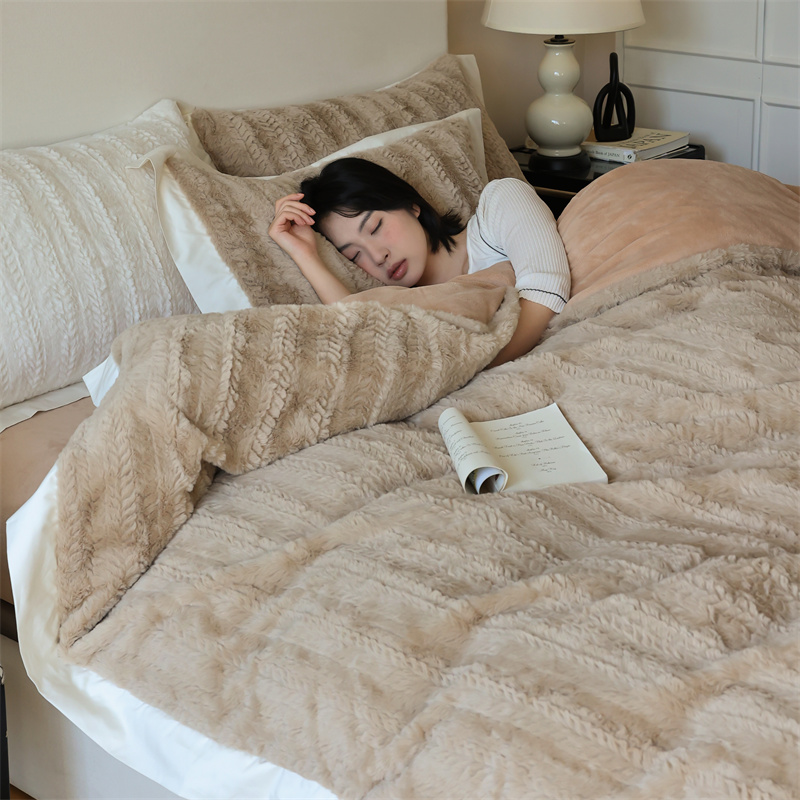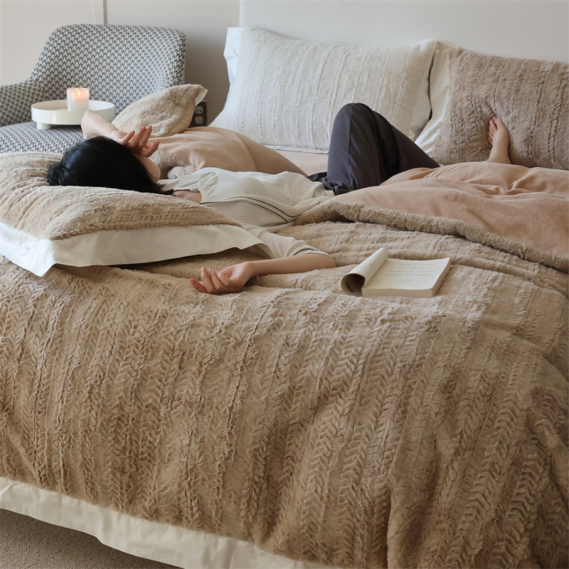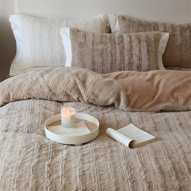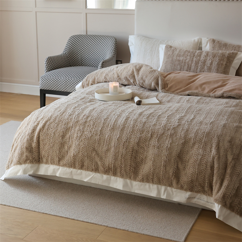 初拾 2023新款托斯卡纳皮草绒极简高端系列四件套—赫本 赫本-奶茶驼