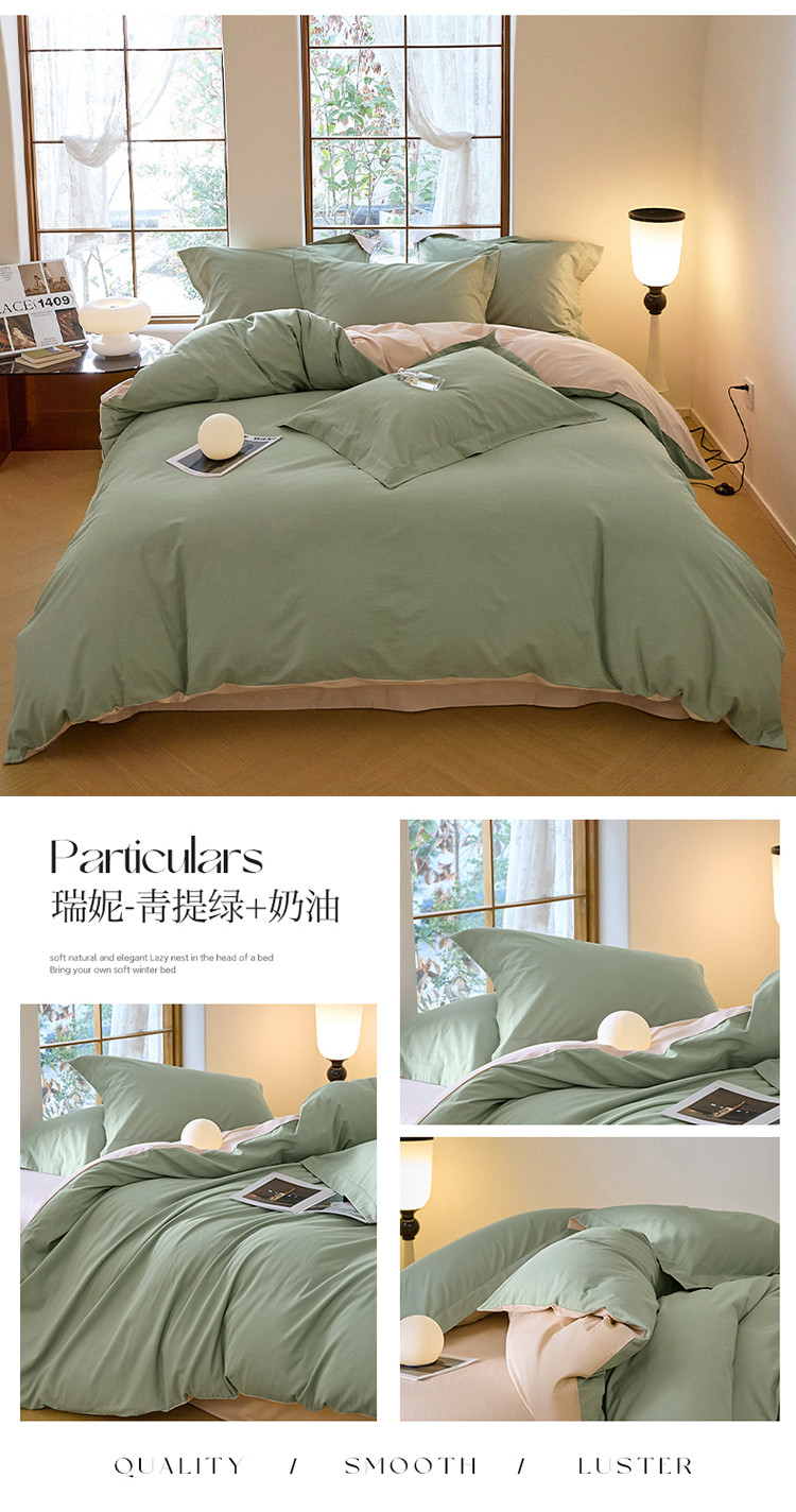 商品名称:秀色2025高端50支加厚陶瓷磨毛全棉四件套奶油风瑞妮青提绿+奶油
