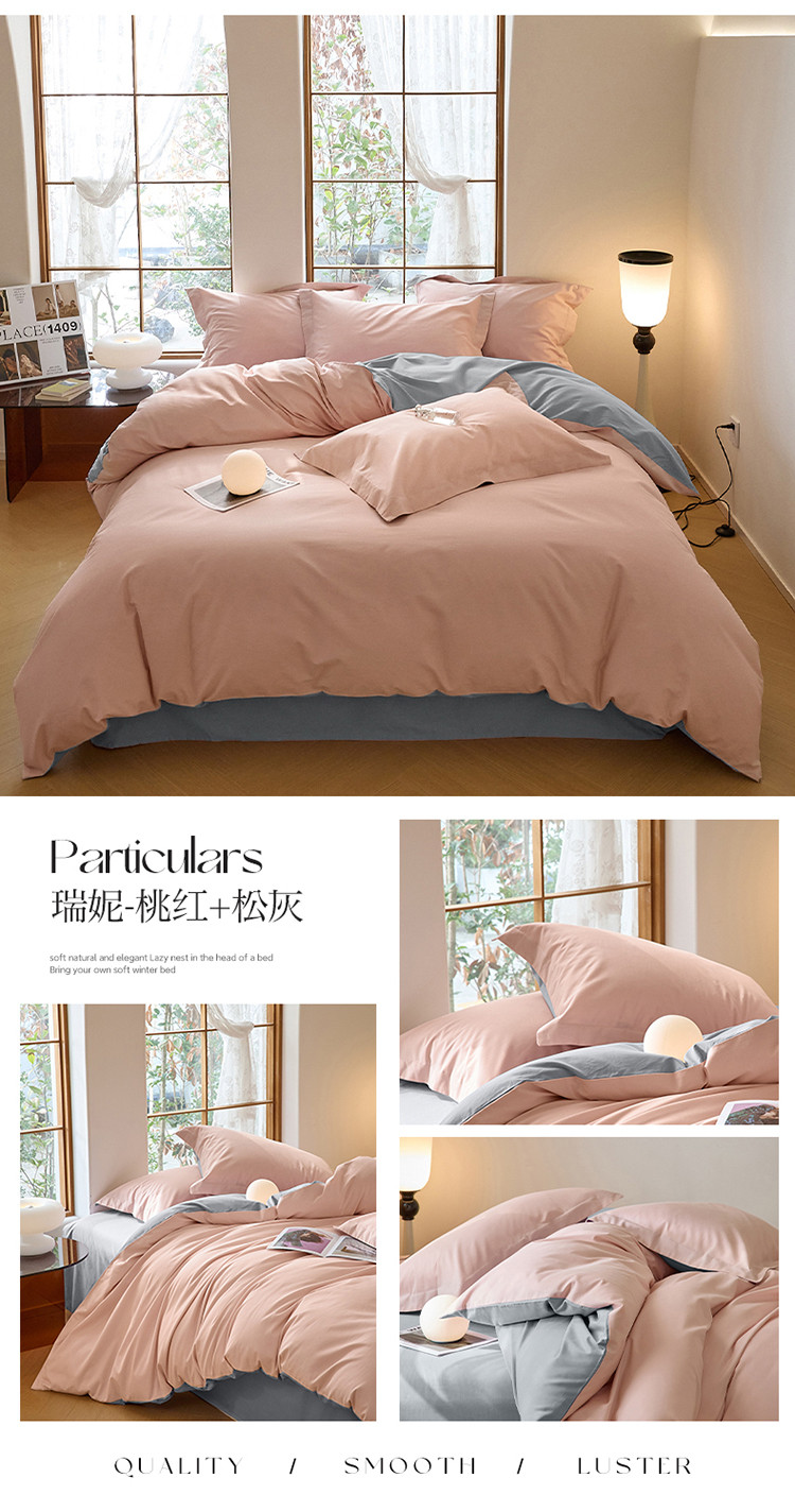 商品名称:秀色2025高端50支加厚陶瓷磨毛全棉四件套奶油风瑞妮桃红+松灰