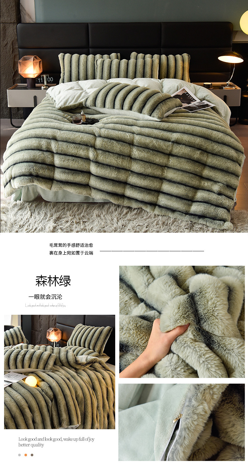 同田家纺 2023新款托卡斯兔毛绒四件套 森林绿
