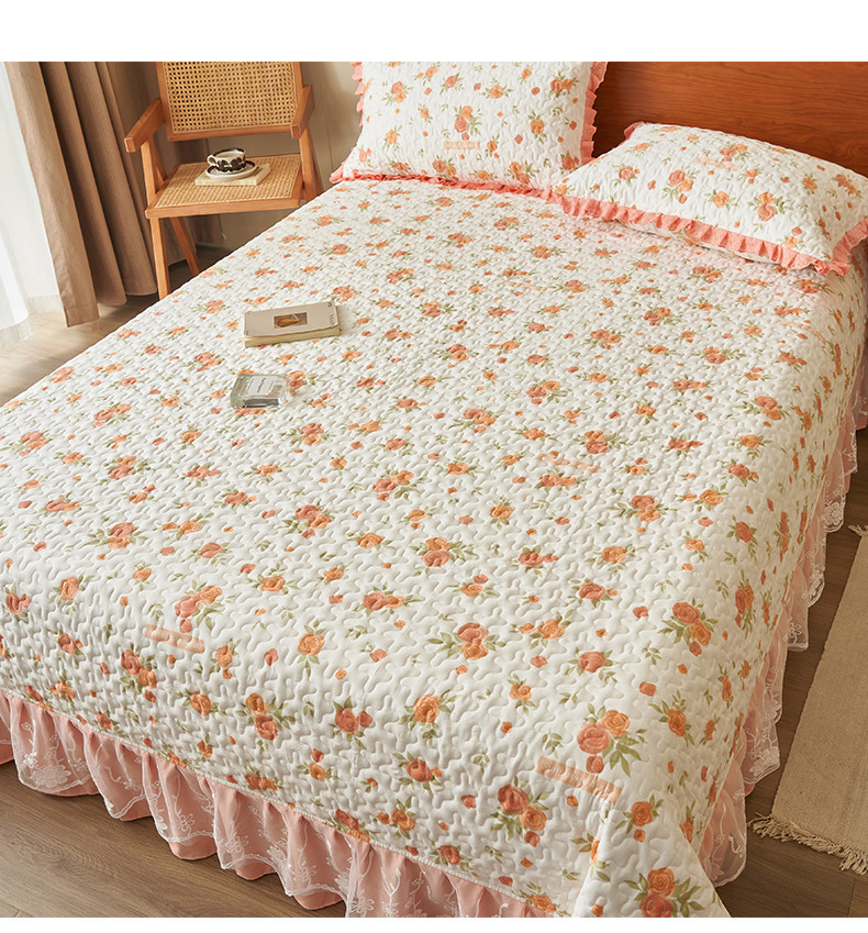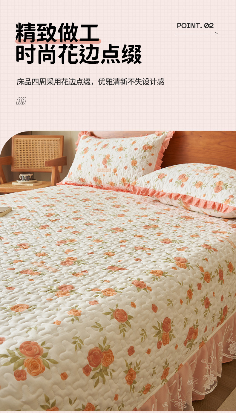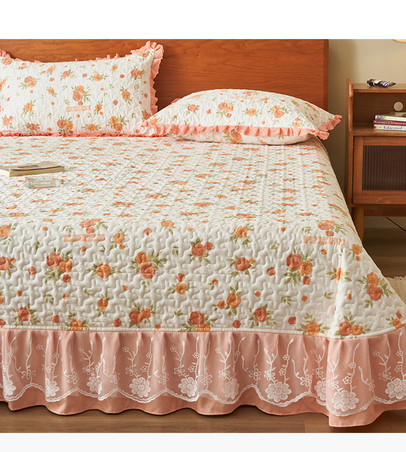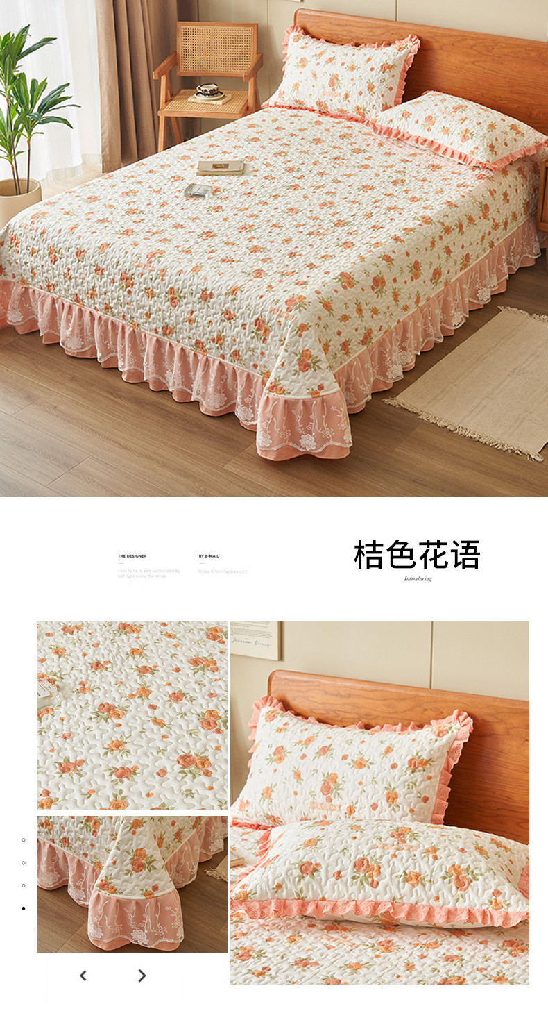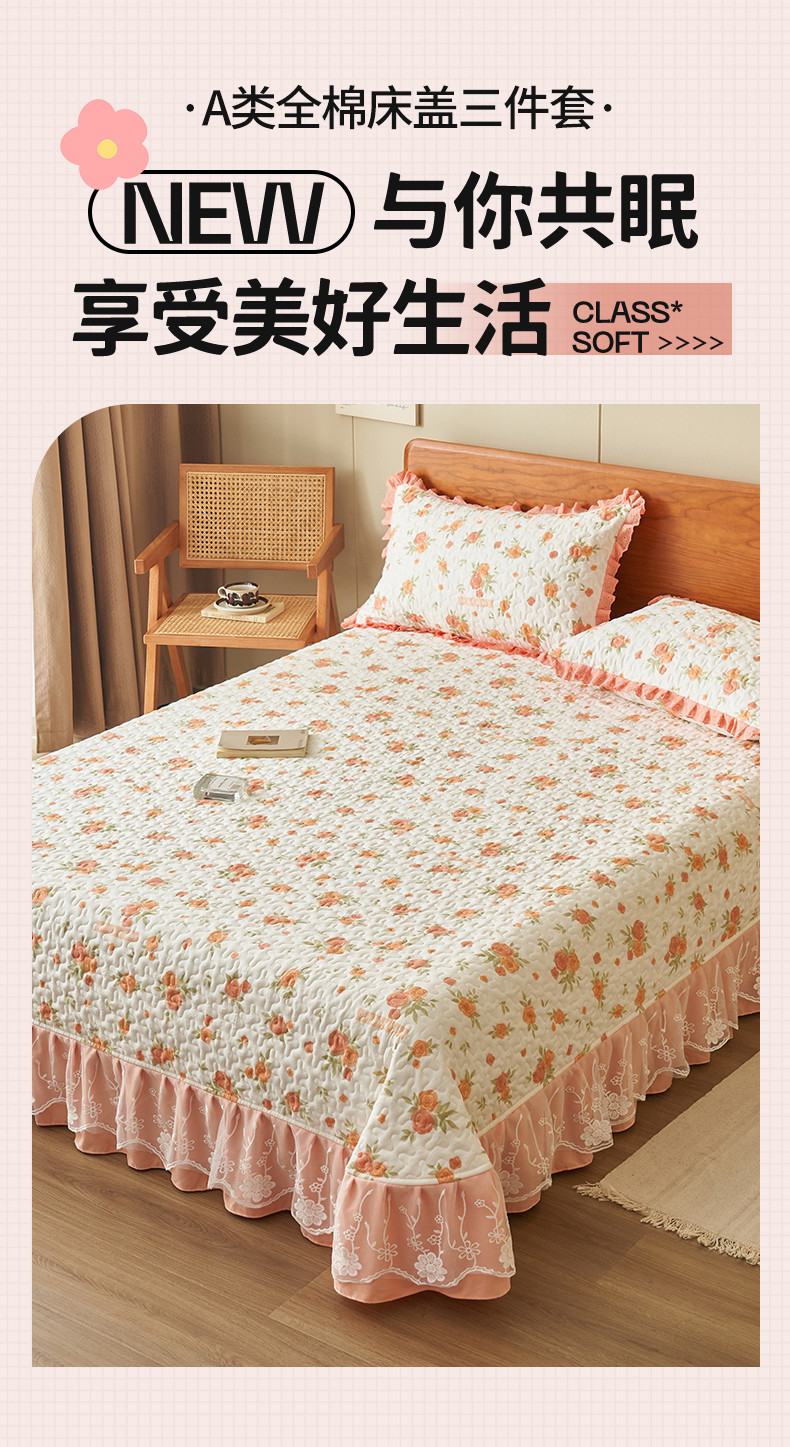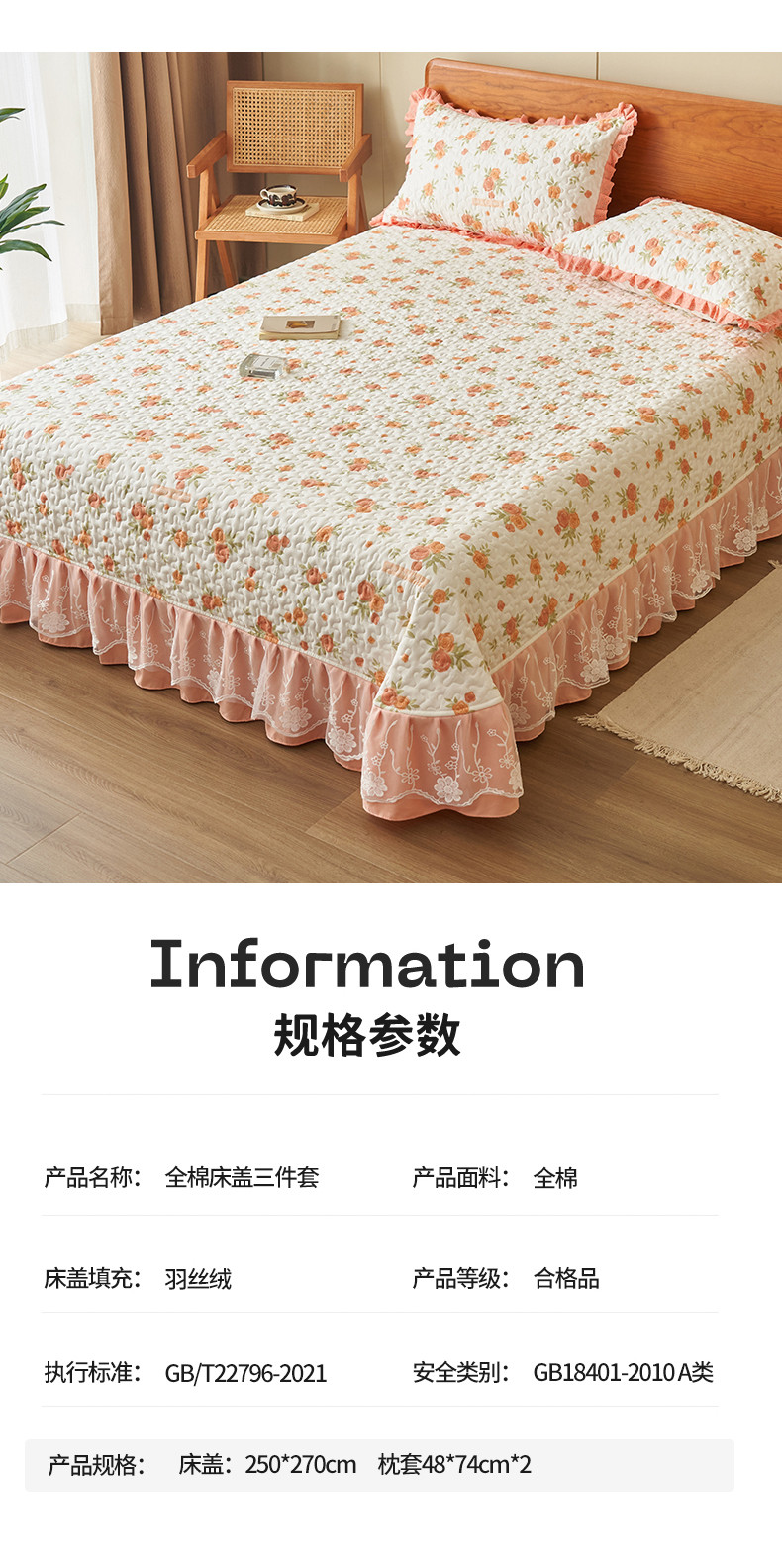 商品名称:恒爱 2023新款全棉床盖三件套 桔色花语
