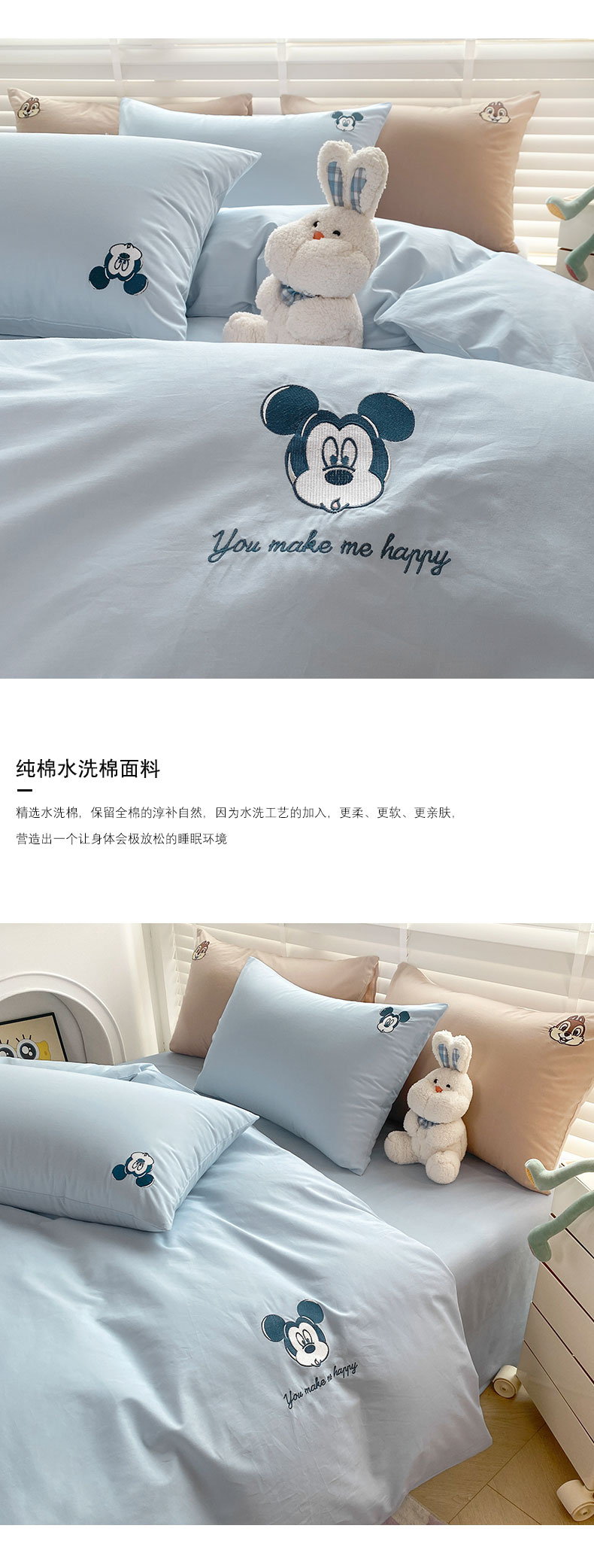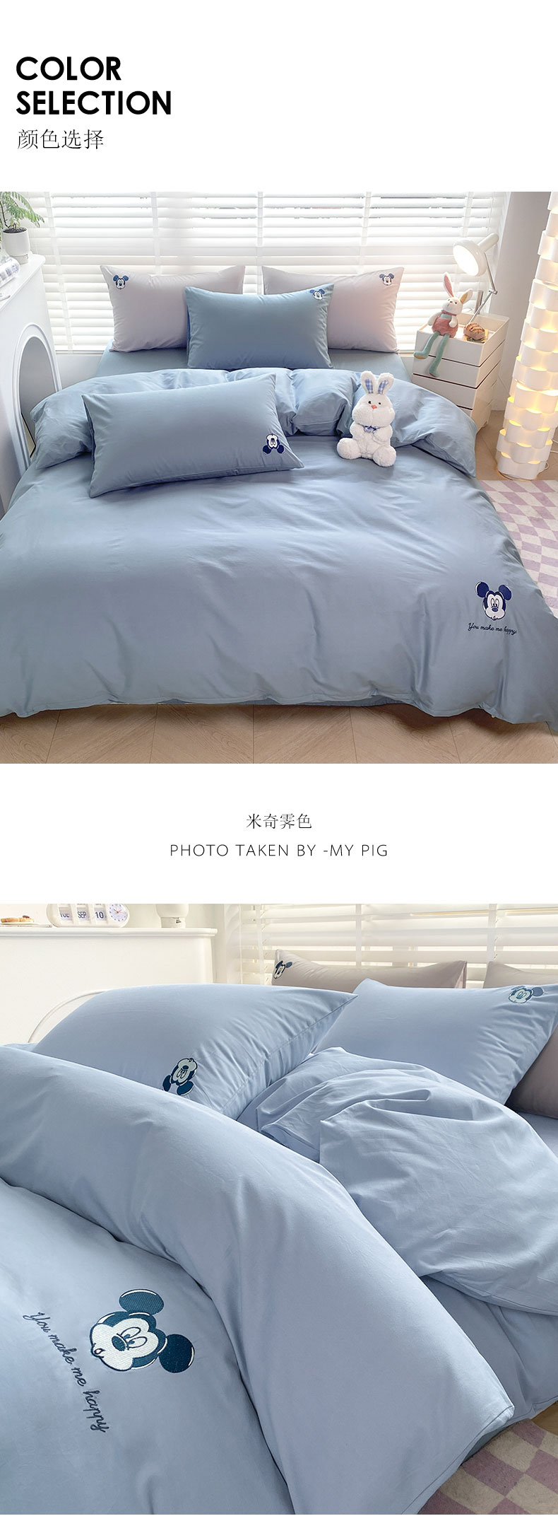 (总)Mr.pig猪先生水洗棉 2023新款迪士尼绣花单被套 浅蓝米奇