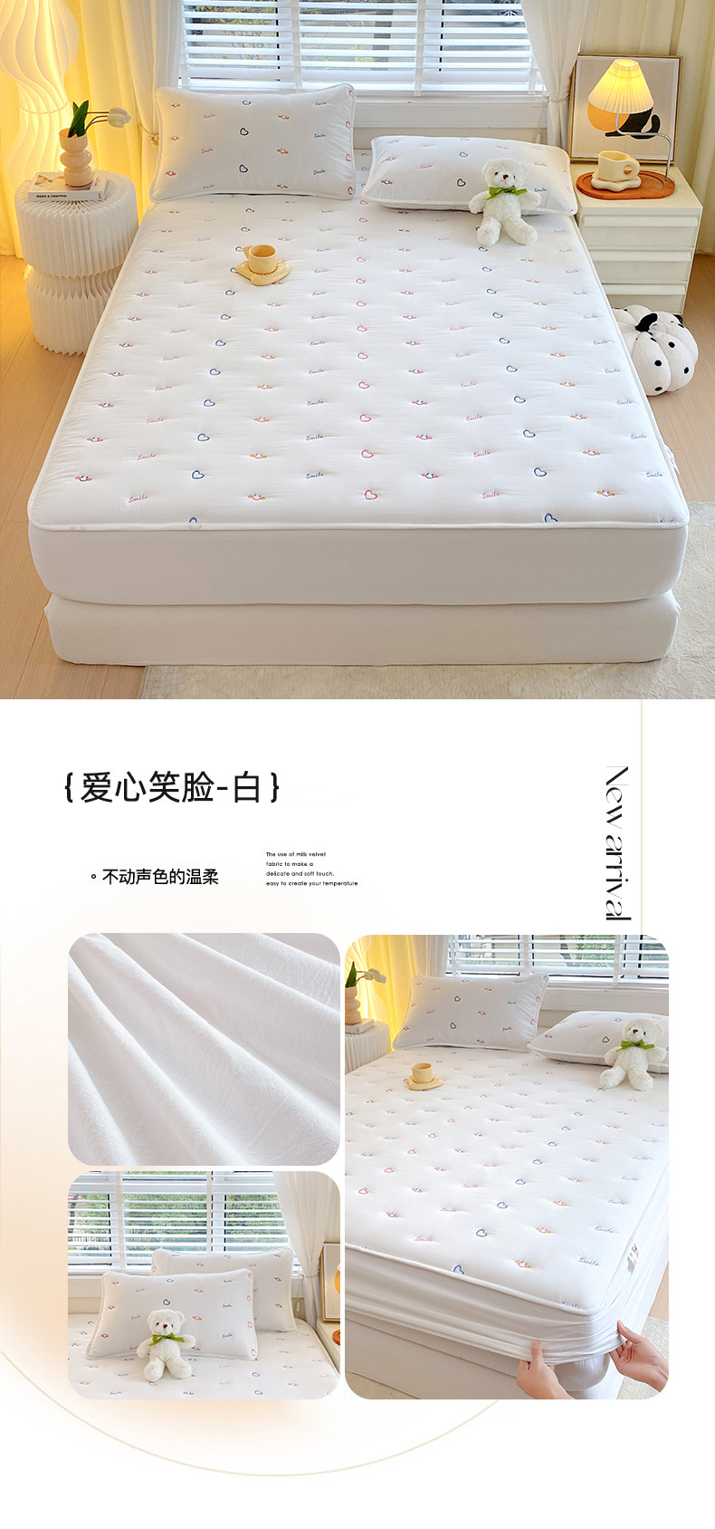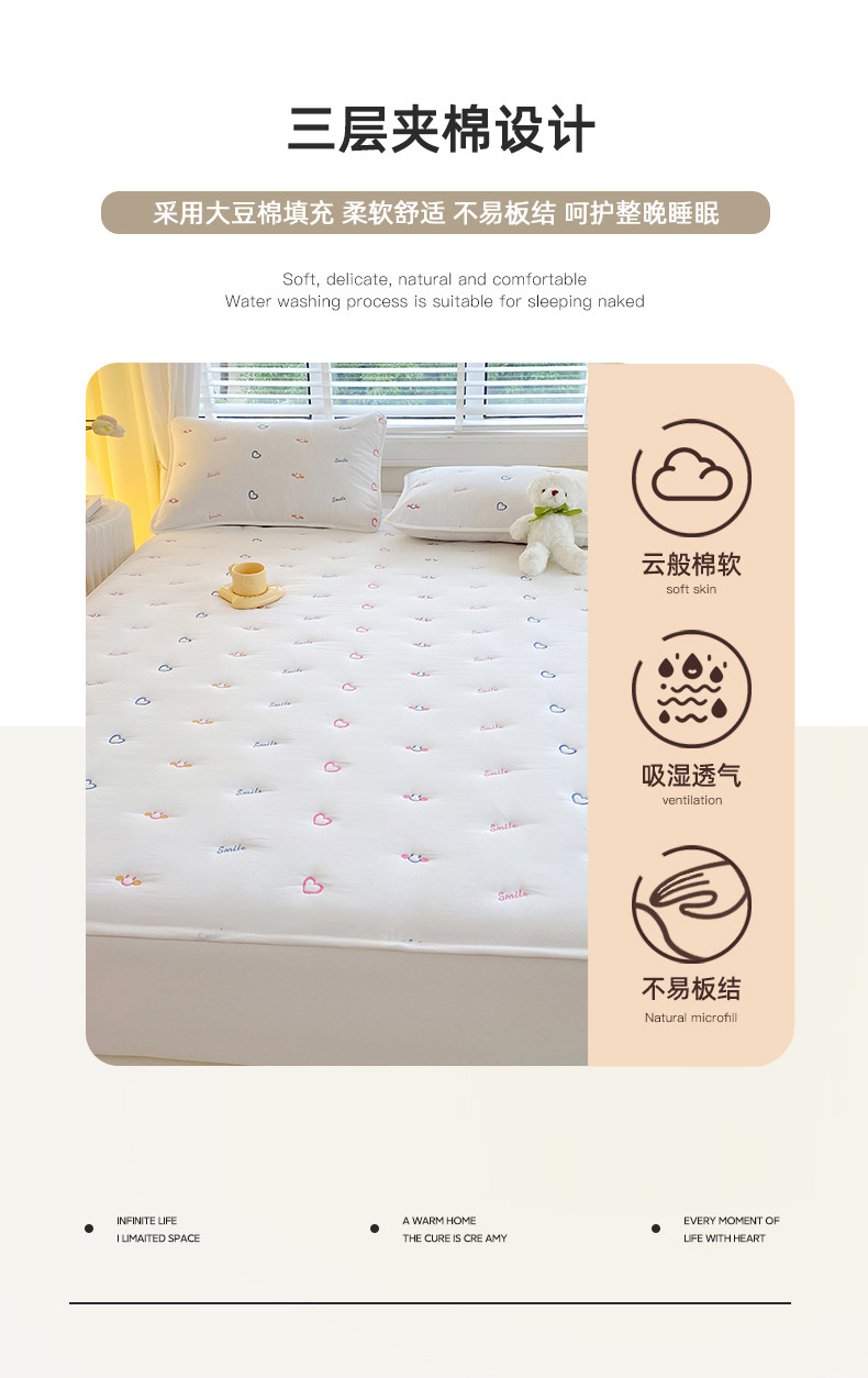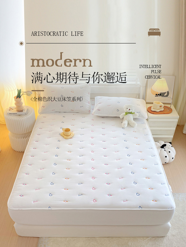 商品名称:(总)尊康家纺(原磊科) 2024新款全棉色织夹棉大豆床笠-爱心笑脸