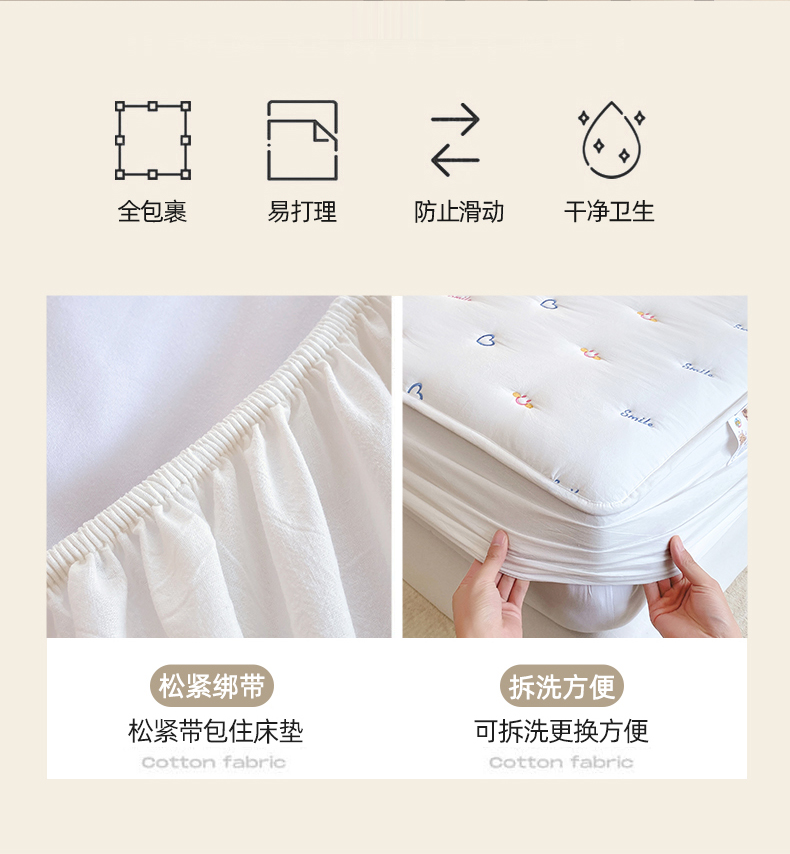 尊康家纺(原磊科) 2024新款亲肤奶昔棉夹棉床裙-风雅 风雅-奶白,风雅-奶白