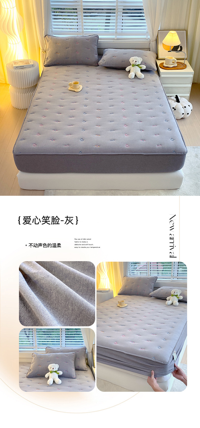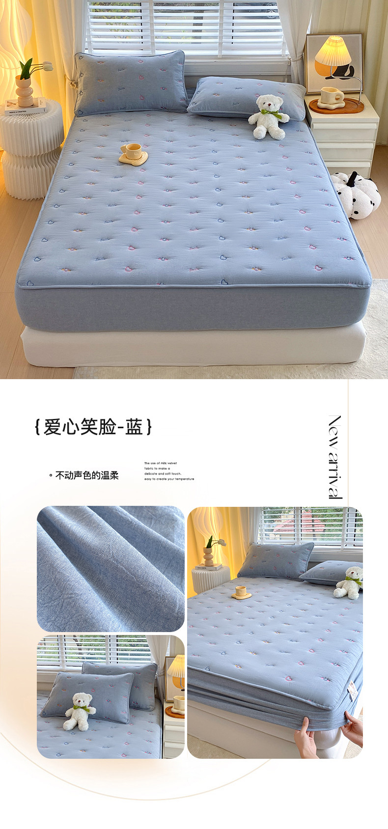 (总)尊康家纺(原磊科) 2024新款全棉色织夹棉大豆床笠-爱心笑脸