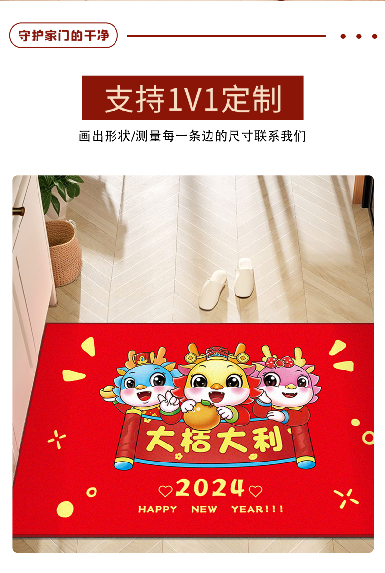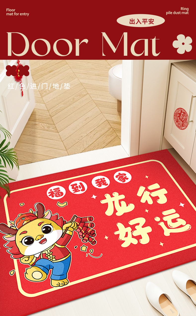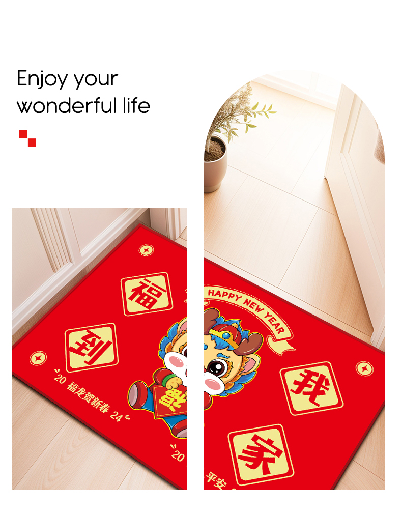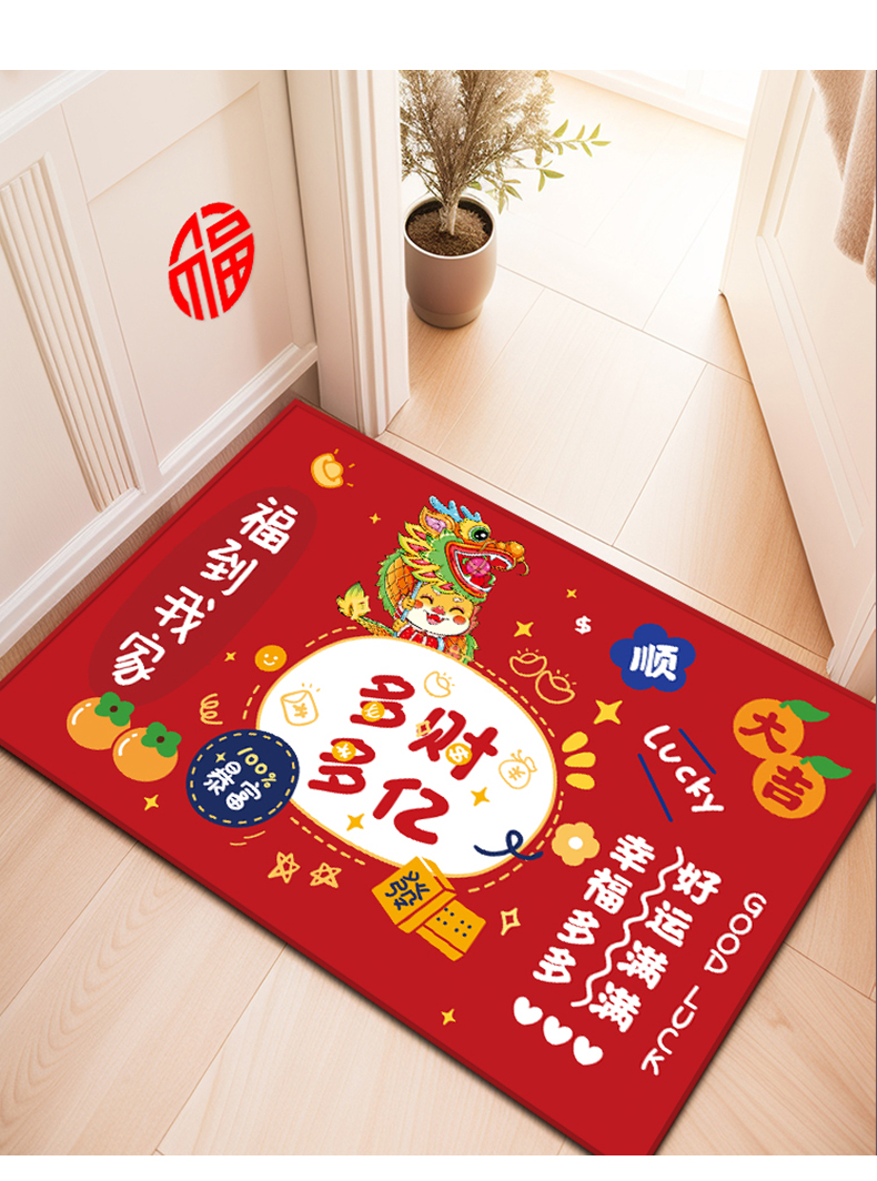 卡初家居(原微来) 2023新款水晶绒吸水吸油防滑耐磨贺岁款龙年地垫进门垫(拍摄1) 龙年-万事顺意