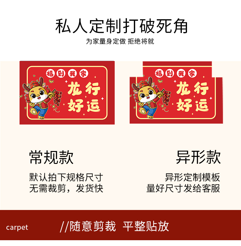 商品名称:卡初家居(原微来) 2023新款水晶绒吸水吸油防滑耐磨贺岁款龙年地垫进门垫(拍摄1) 龙年-万事顺意