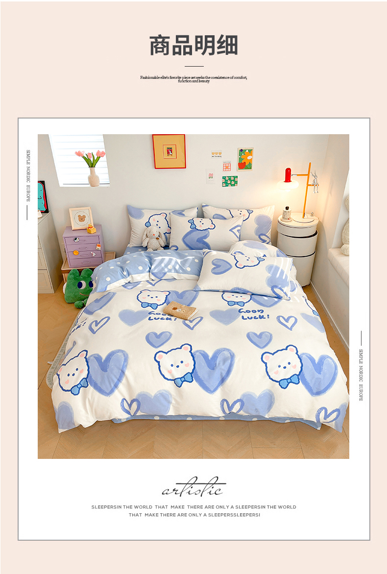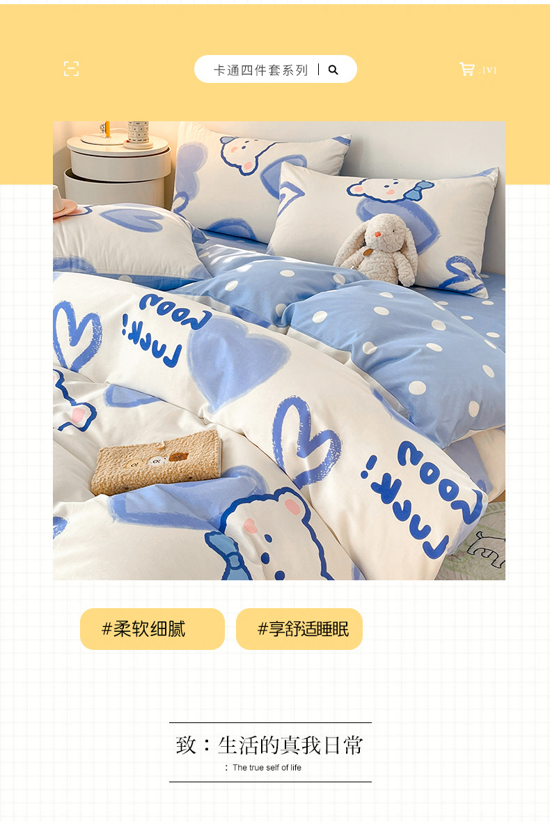 当前位置: 91家纺网 > 商品网购 > 床品套件 > 四件套 > 全棉普通四件套 > 吉象家纺 2024新款全棉印花卡通四件套系列 兰心小熊