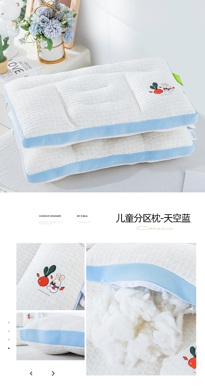 商品名称:纽乐家纺 2024新款针织棉儿童分区枕 天空蓝30*50一只