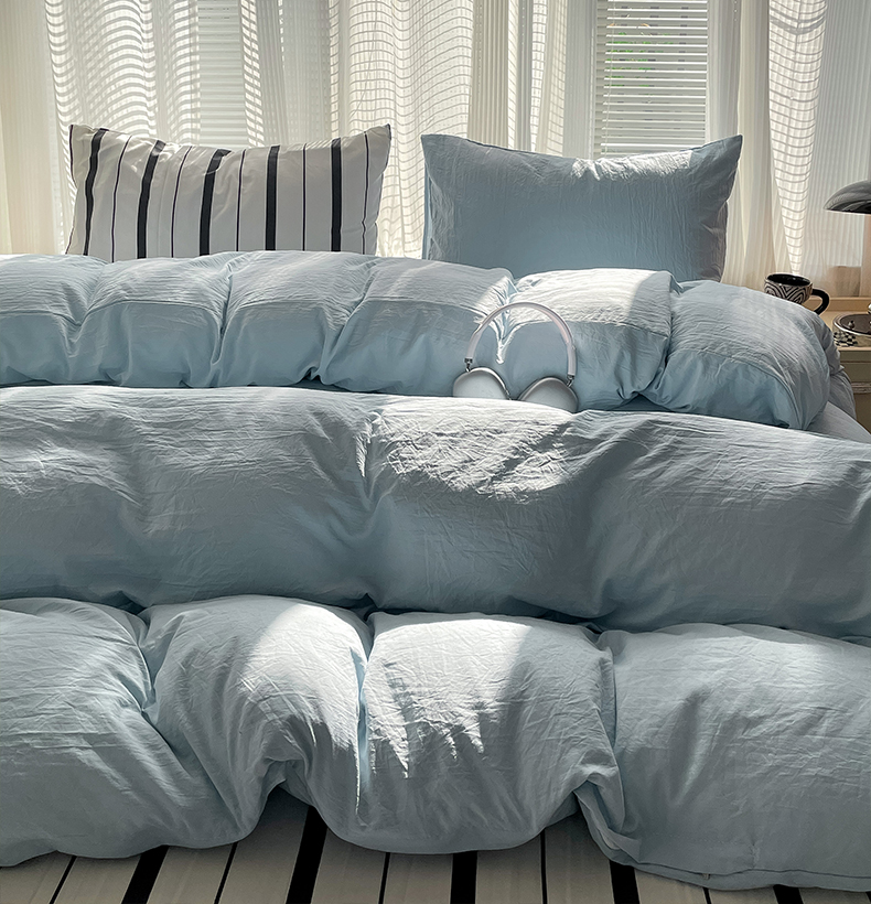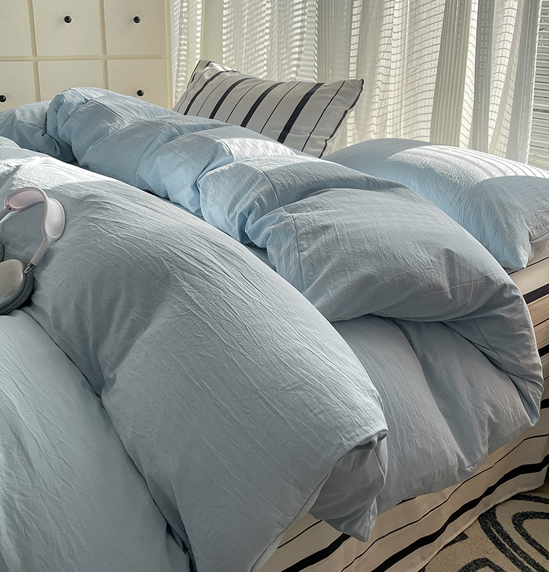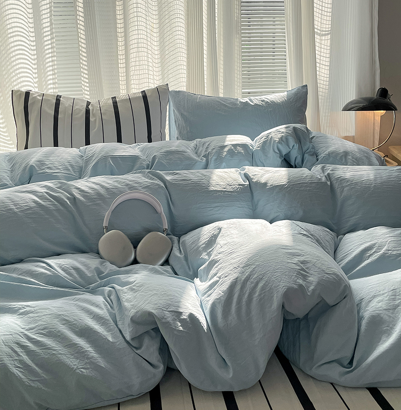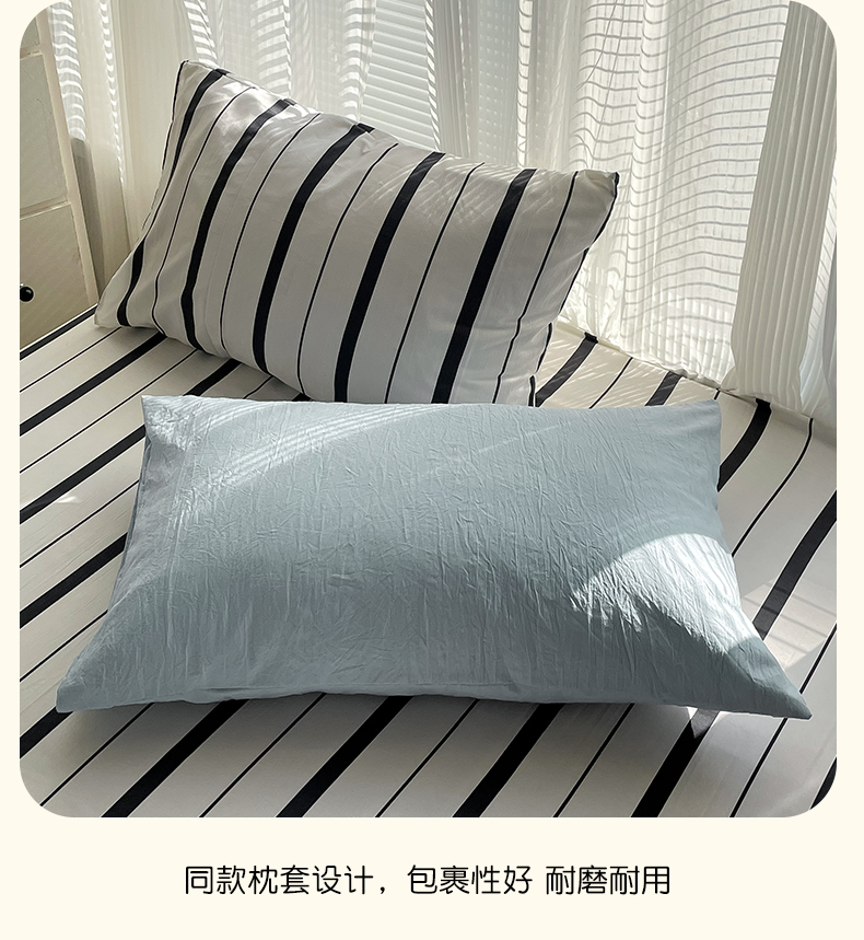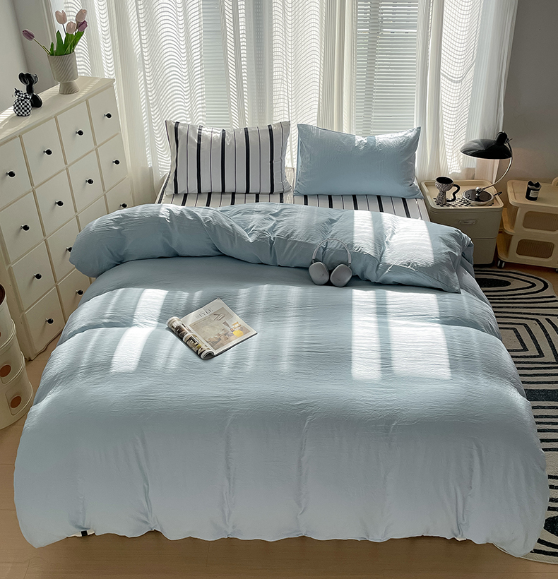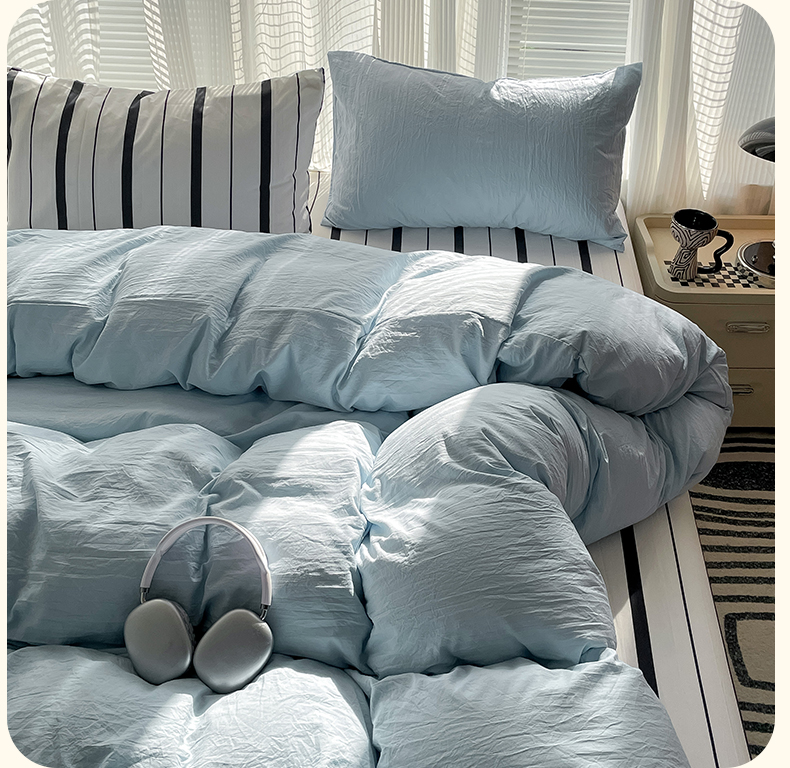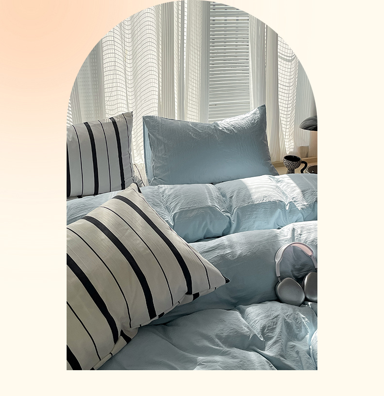当前位置: 91家纺网 > 商品网购 > 床品套件 > 四件套 > 水洗棉四件套 > 奈颜 2024新款水洗双层纱爆款双拼条纹四件套 浅雾蓝+条纹