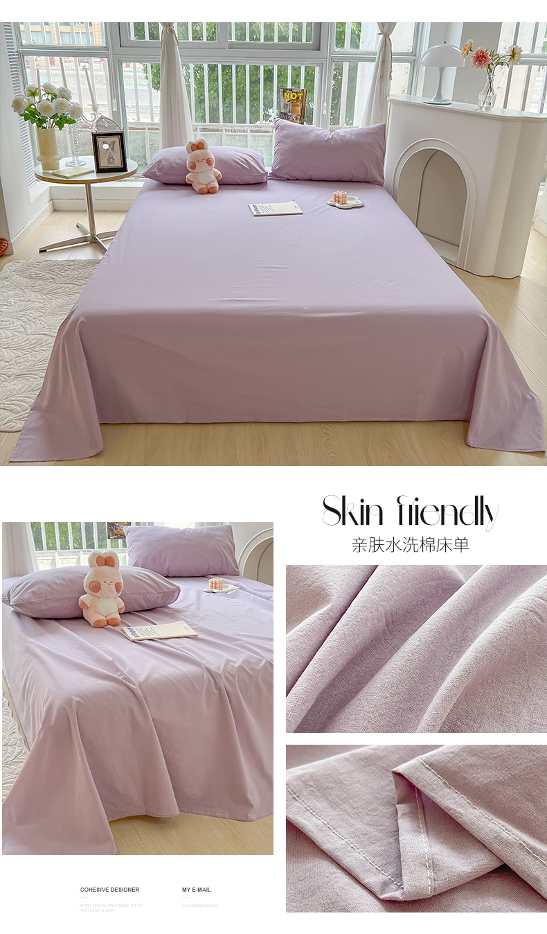 商品名称:盼季家纺 2024新款简约格子纯色水洗棉床单单件宿舍被单三件套 奶紫
