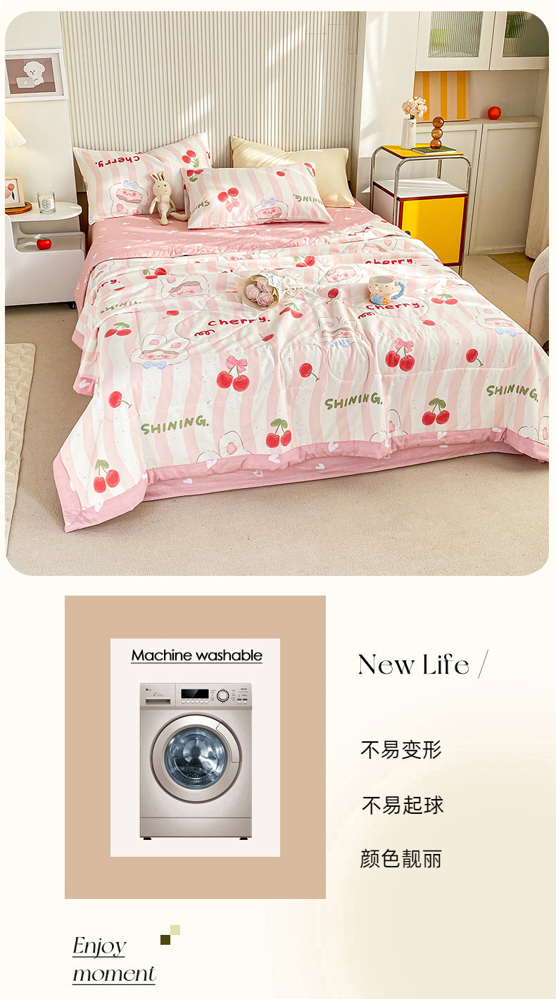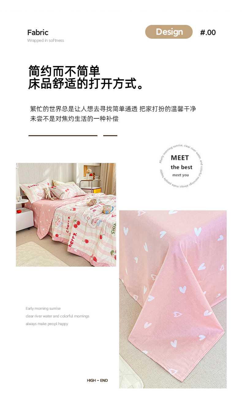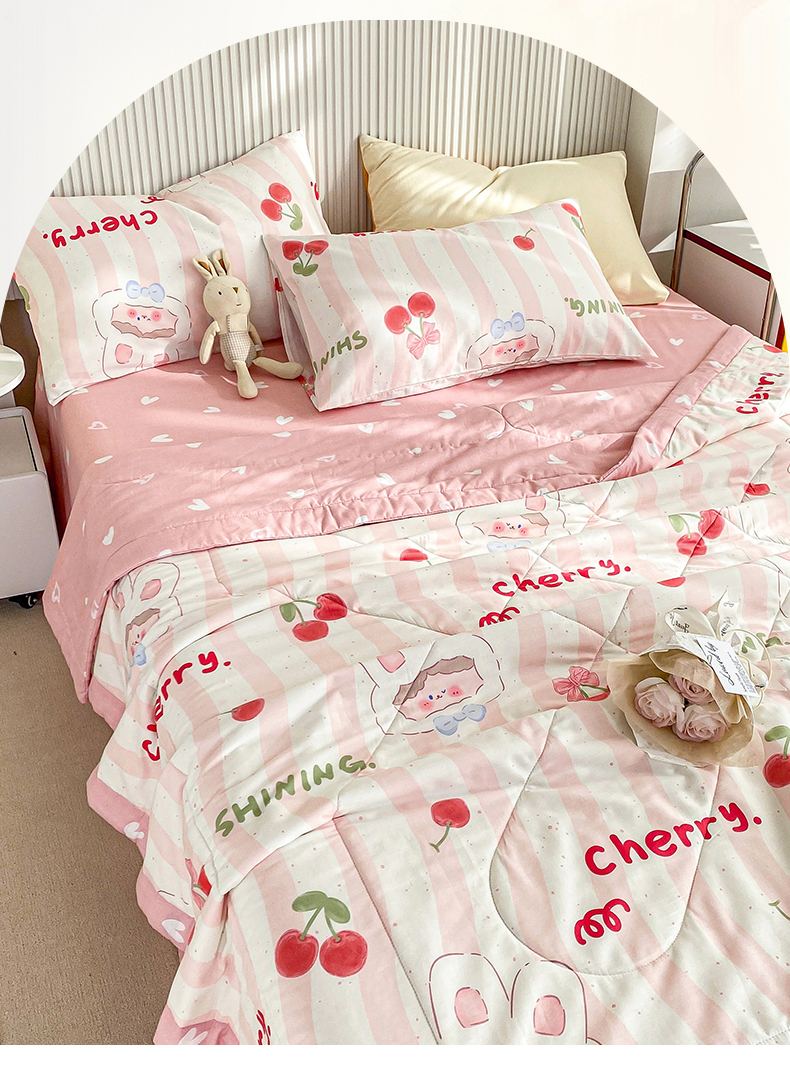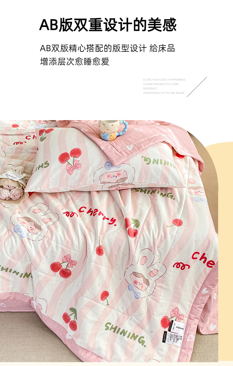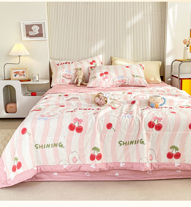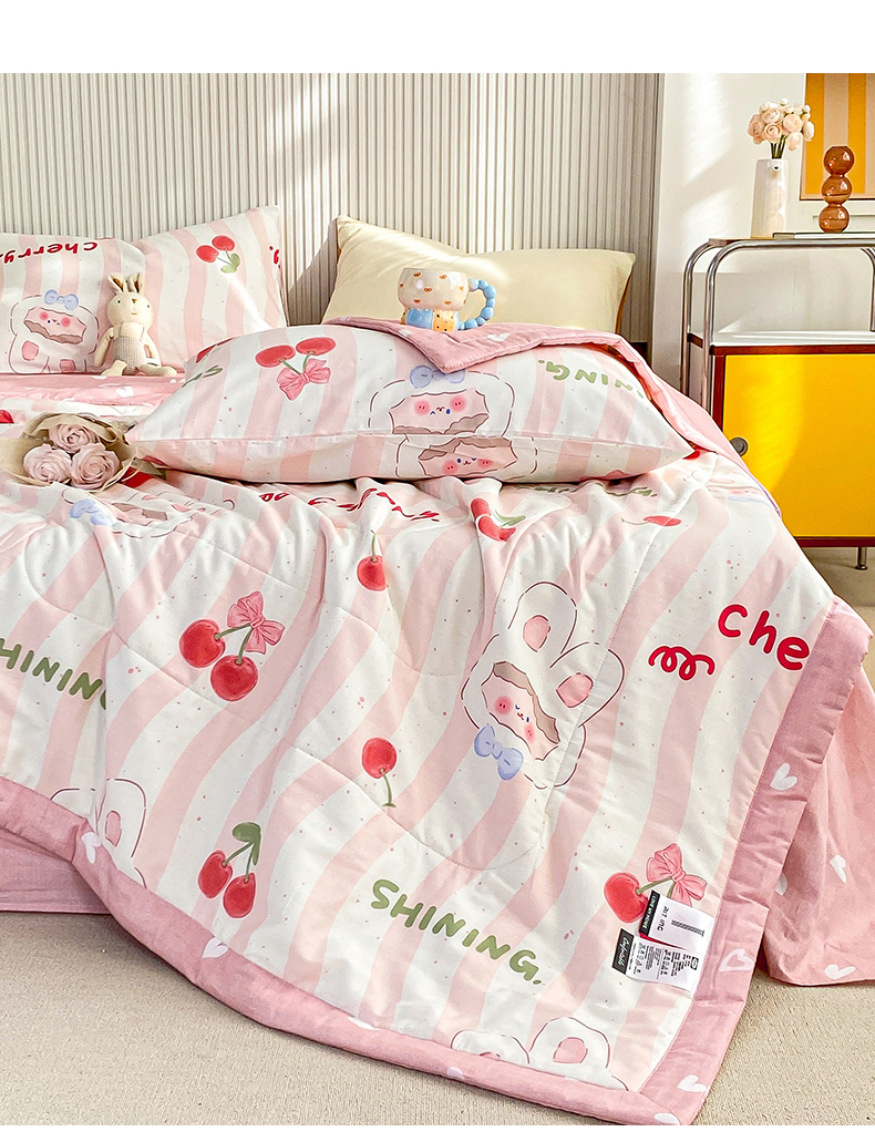 鸣升家纺 A类印花全棉12868棉花夏凉被四件套夏被 软耳兔