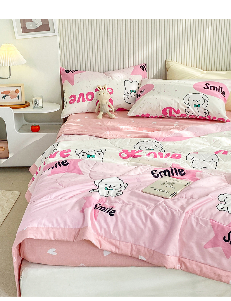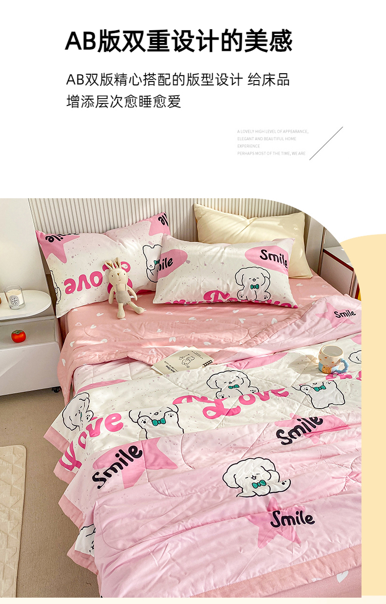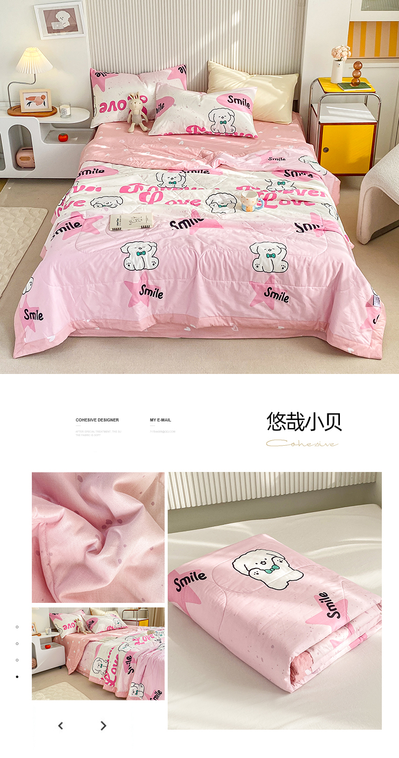 鸣升家纺 A类印花全棉12868棉花夏凉被四件套夏被 悠哉小贝
