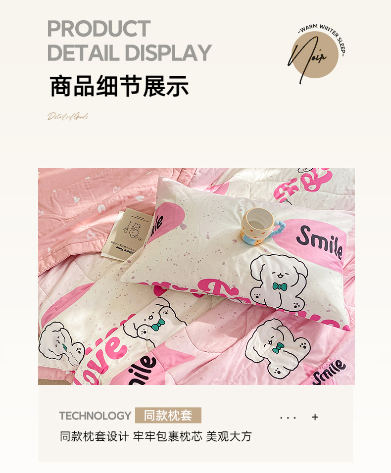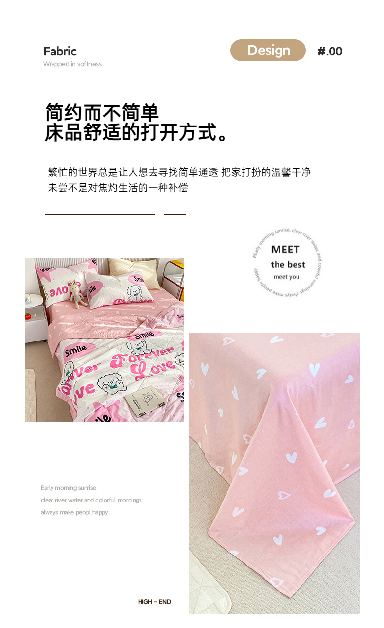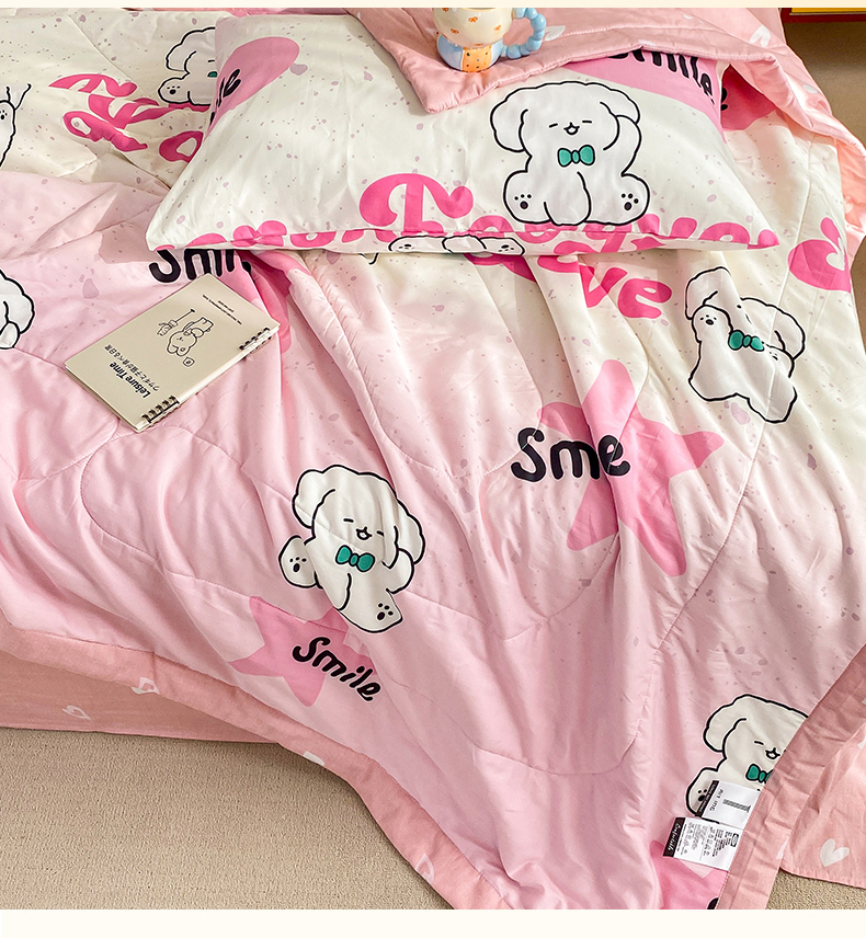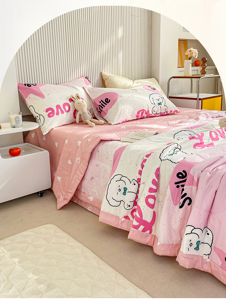 鸣升家纺 A类印花全棉12868棉花夏凉被四件套夏被 悠哉小贝