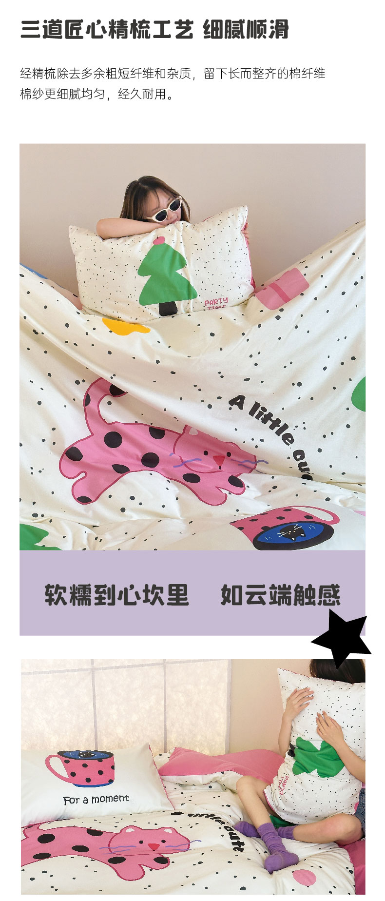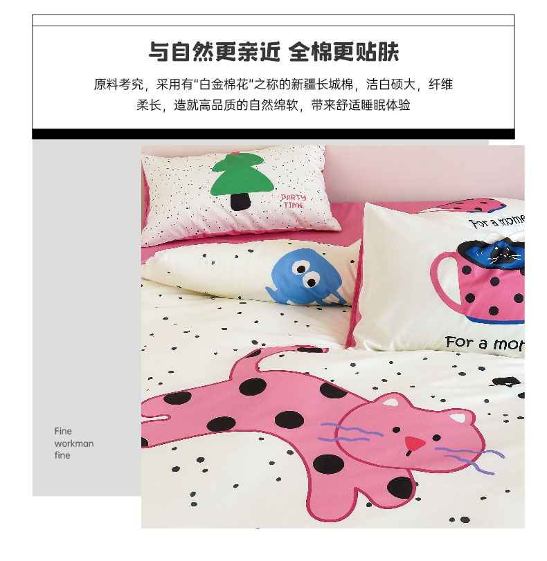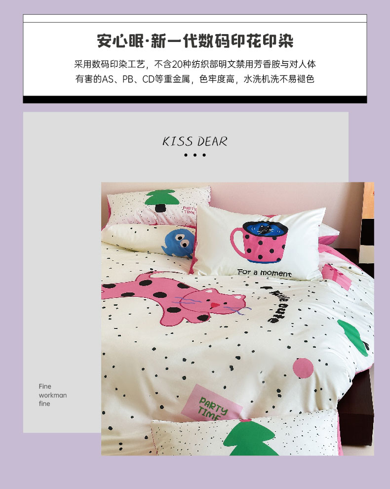 (总)红馆 2024新款13070大版数码印花四件套,sleep,大眼睛,小猫腻,赫本花,派对时刻,森林象,丸趣曲奇,泫雅猫咪