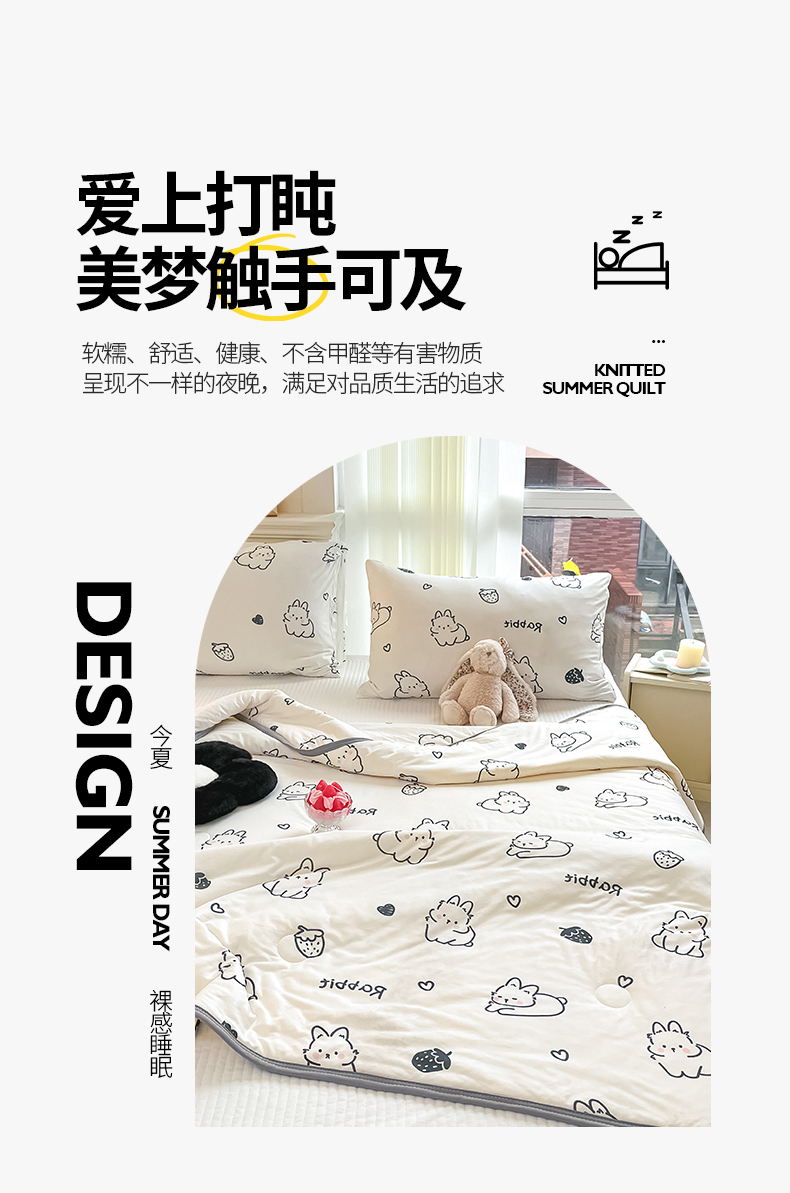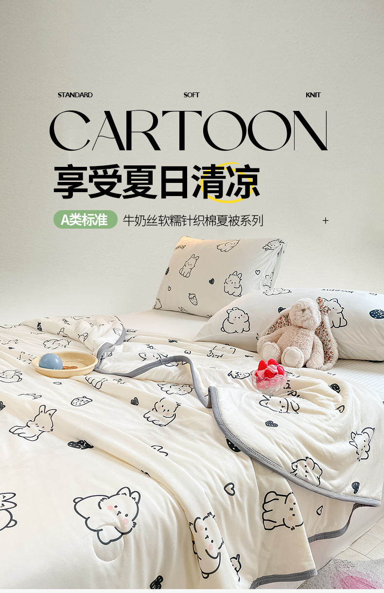 桃子家居 2024新款A类高品质牛奶丝软糯针织棉夏被 针织棉-小白兔