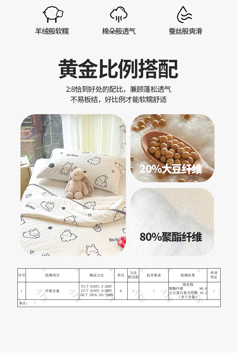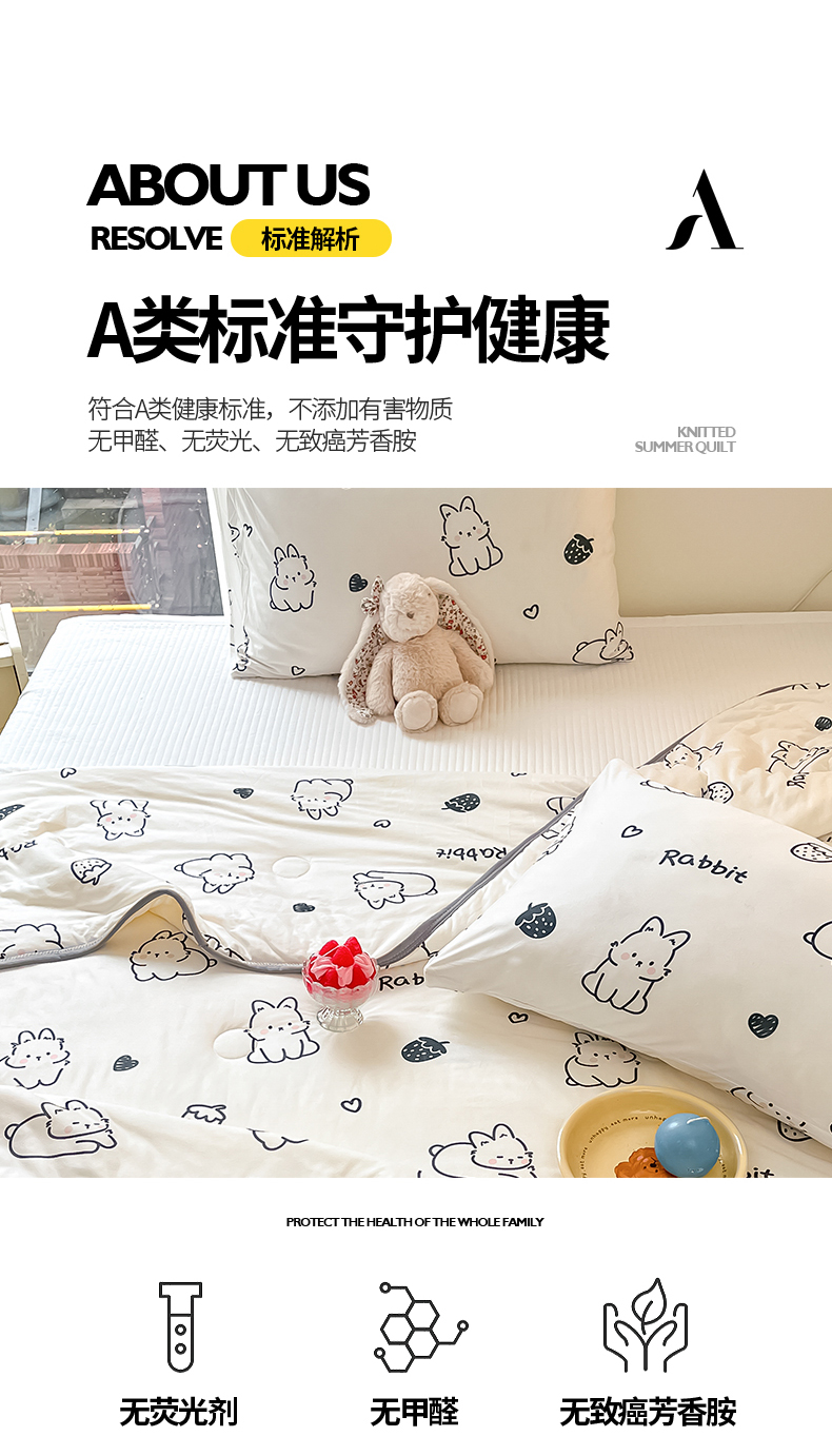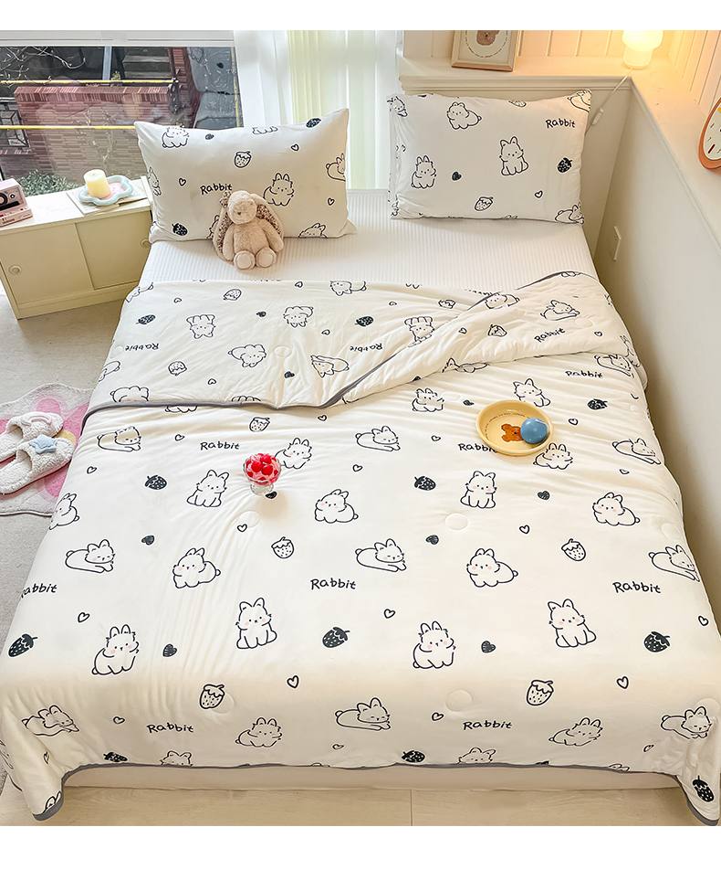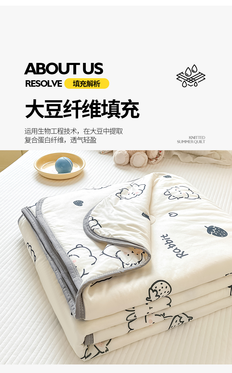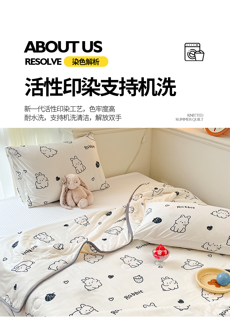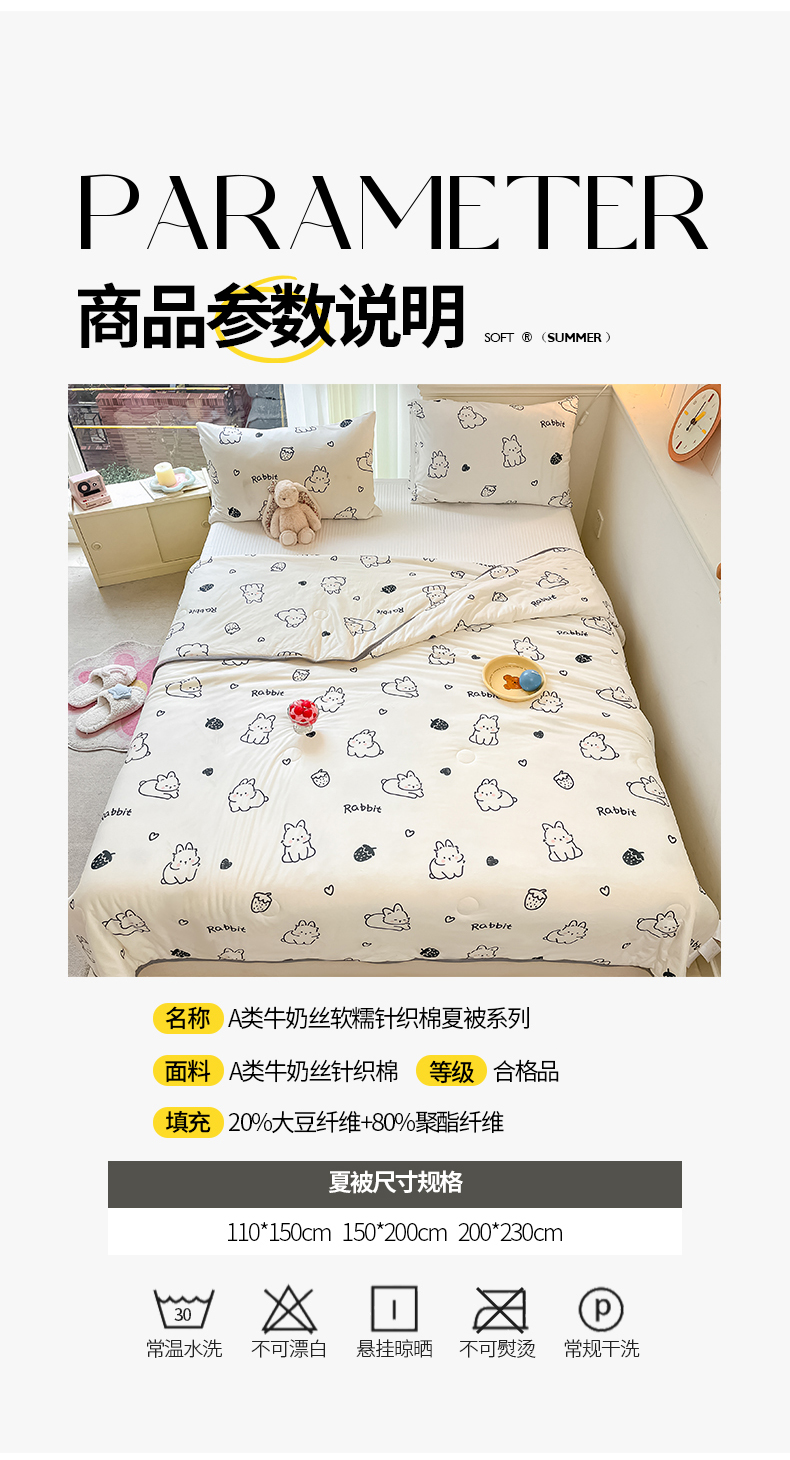 商品名称:桃子家居 2024新款A类高品质牛奶丝软糯针织棉夏被 针织棉-小白兔