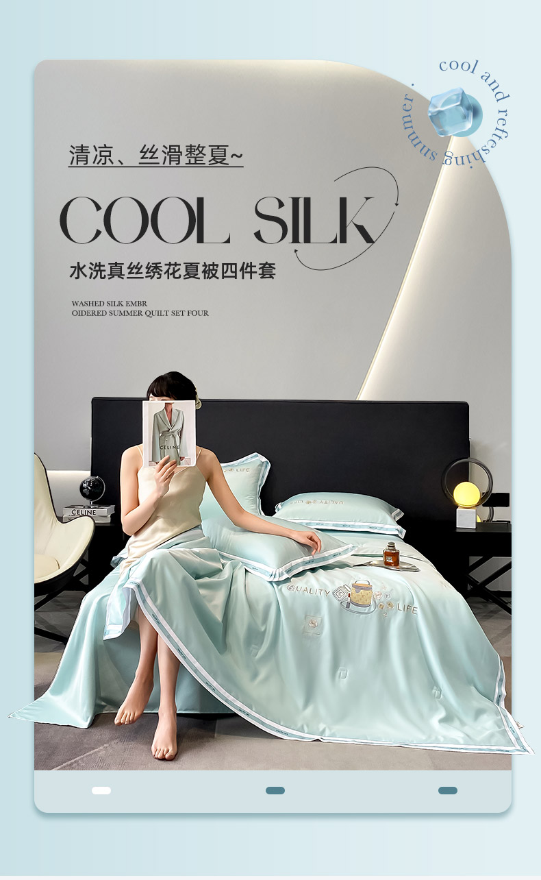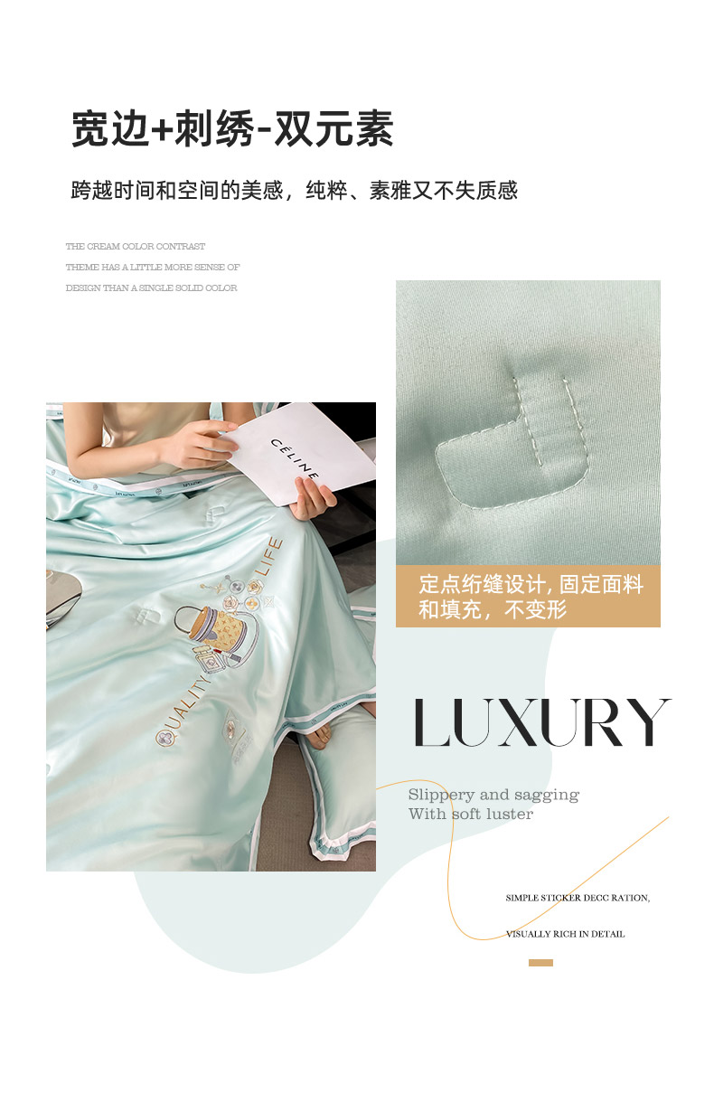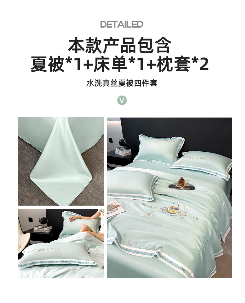 当前位置: 91家纺网 > 商品网购 > 床品套件 > 四件套 > 水洗真丝四件套 > 欧冠家纺 2024新款大牌风水洗真丝绣花床笠被套夏被四件套 路易系列 路易-白茶绿