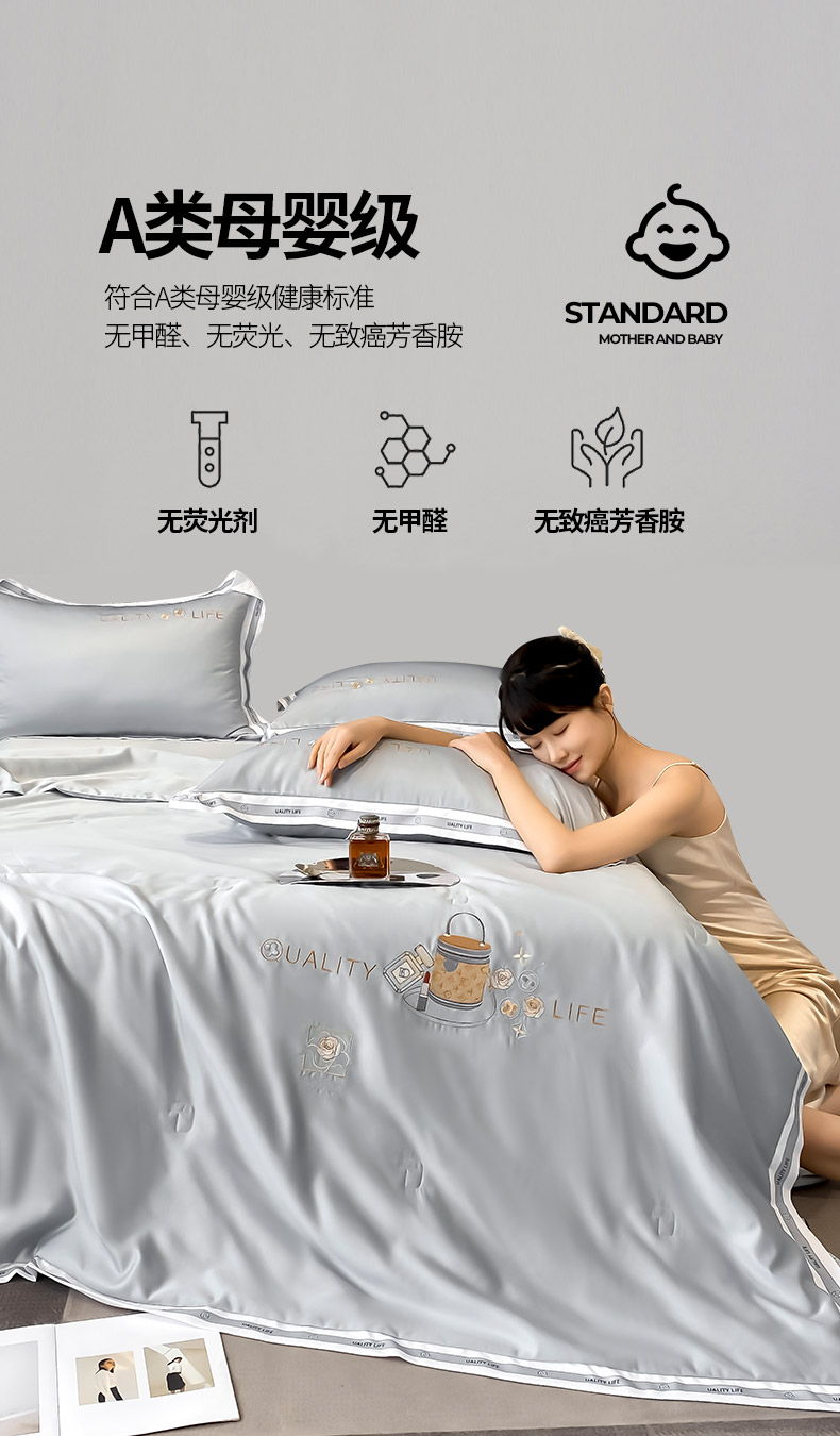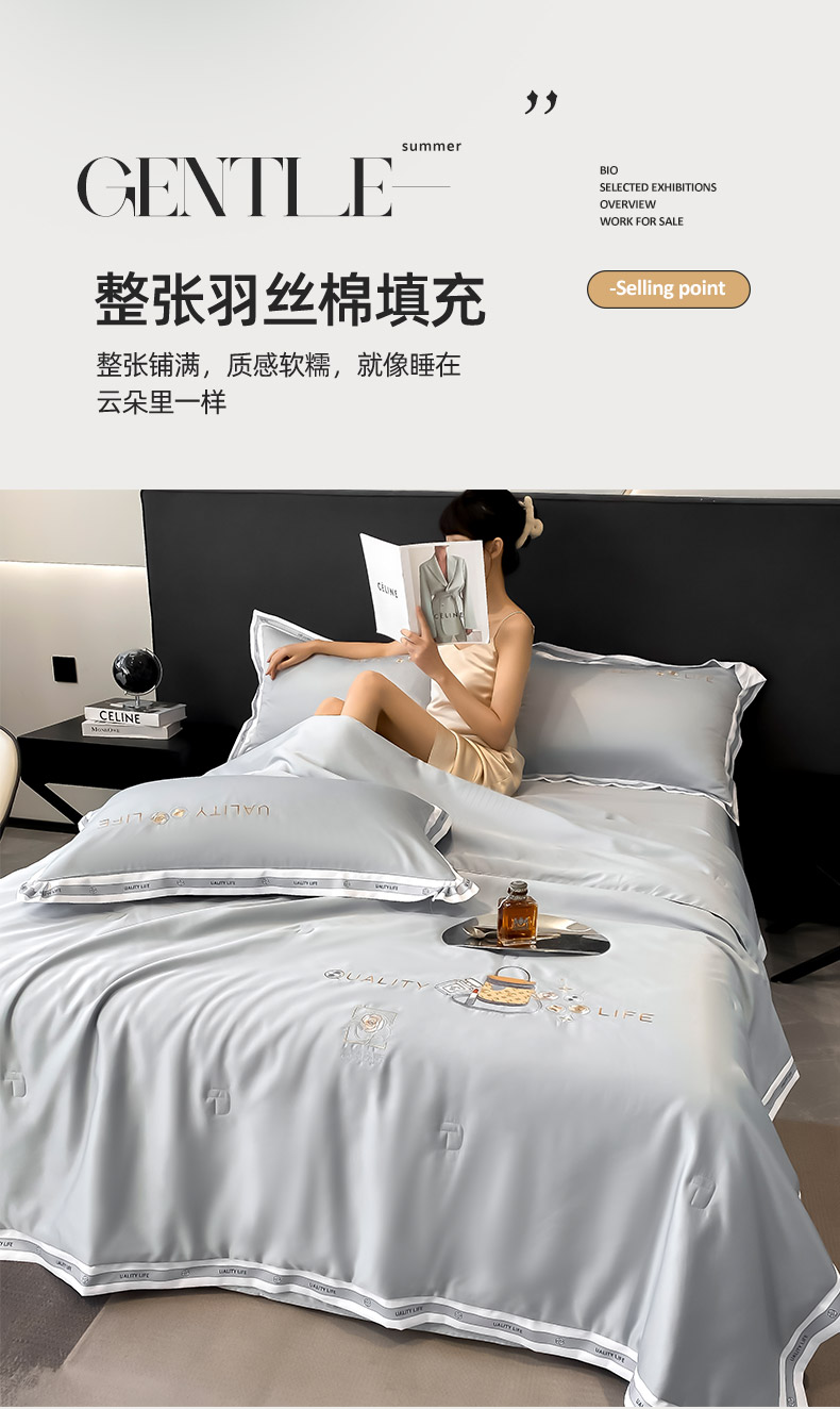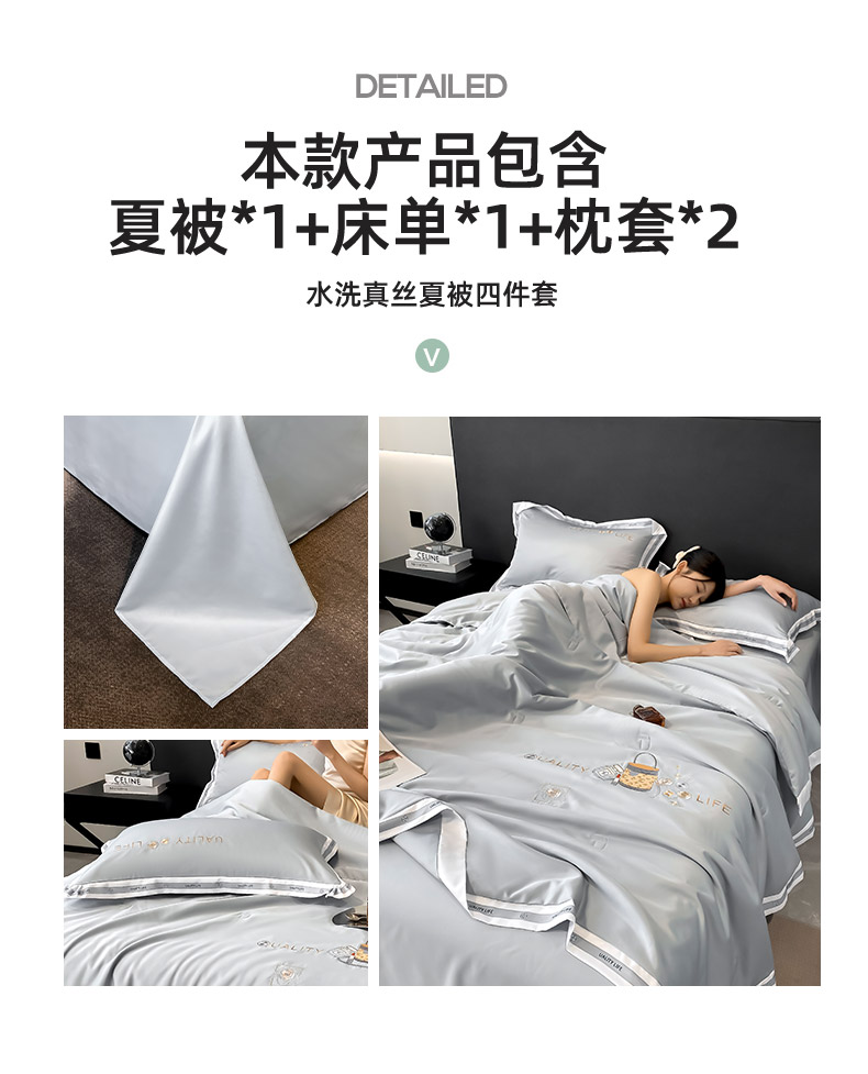 当前位置: 91家纺网 > 商品网购 > 被子 > 夏被 > 丝印良品 2024新款大牌风水洗真丝绣花床笠被套夏被四件套路易系列 路易-山灰