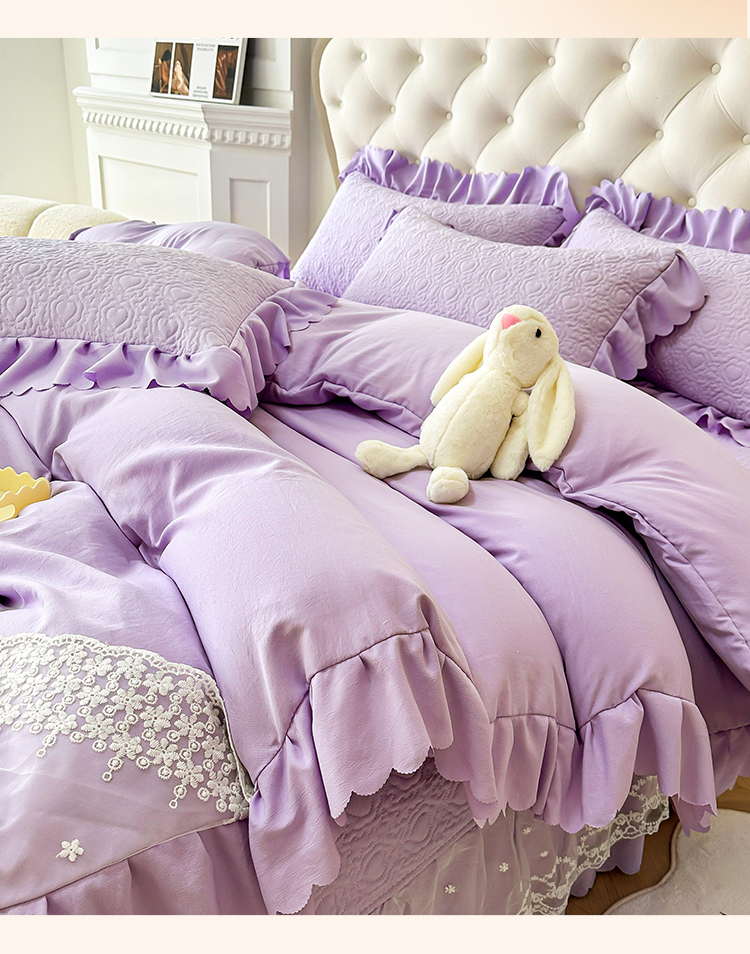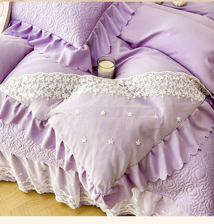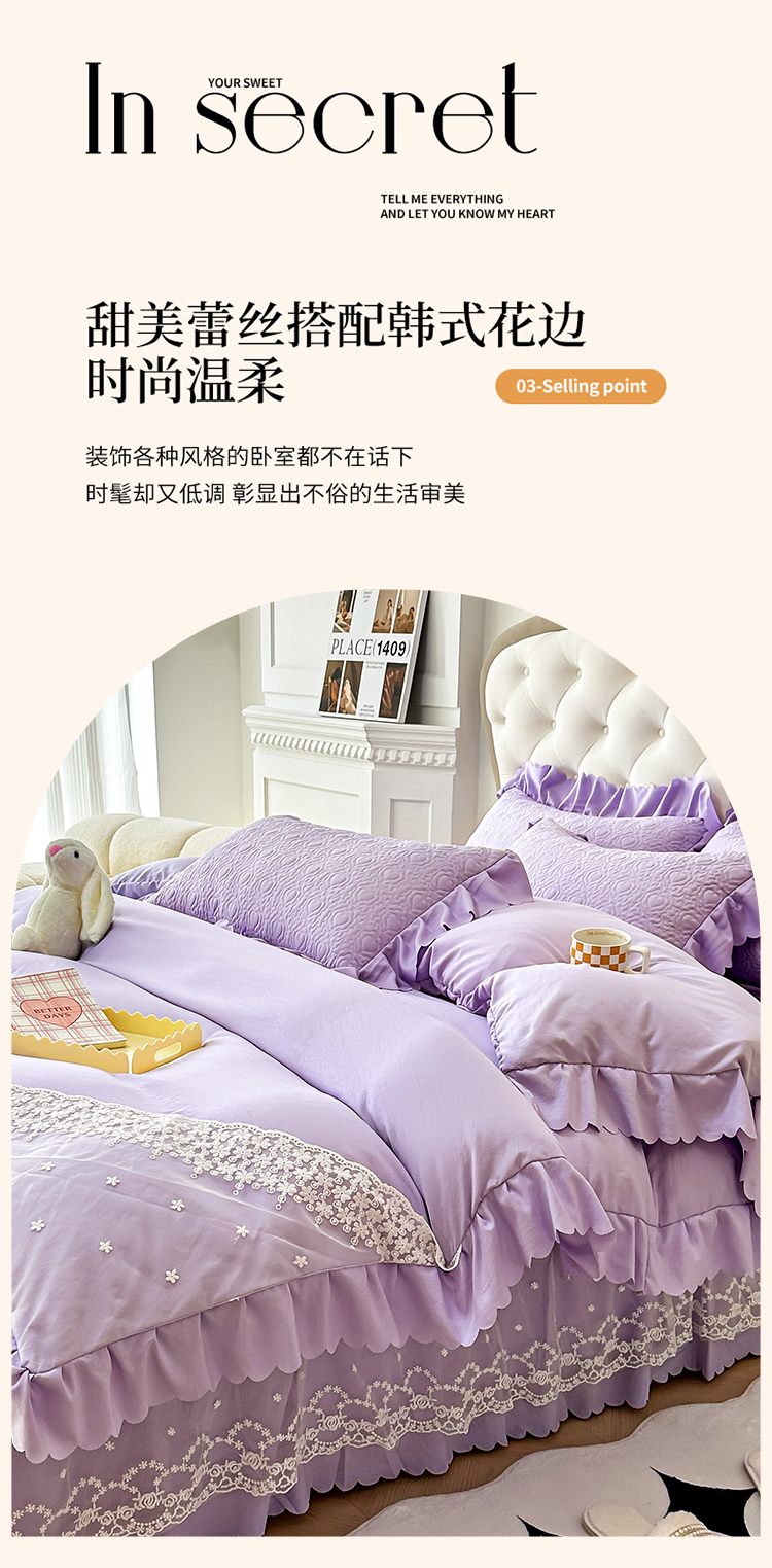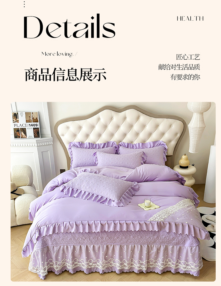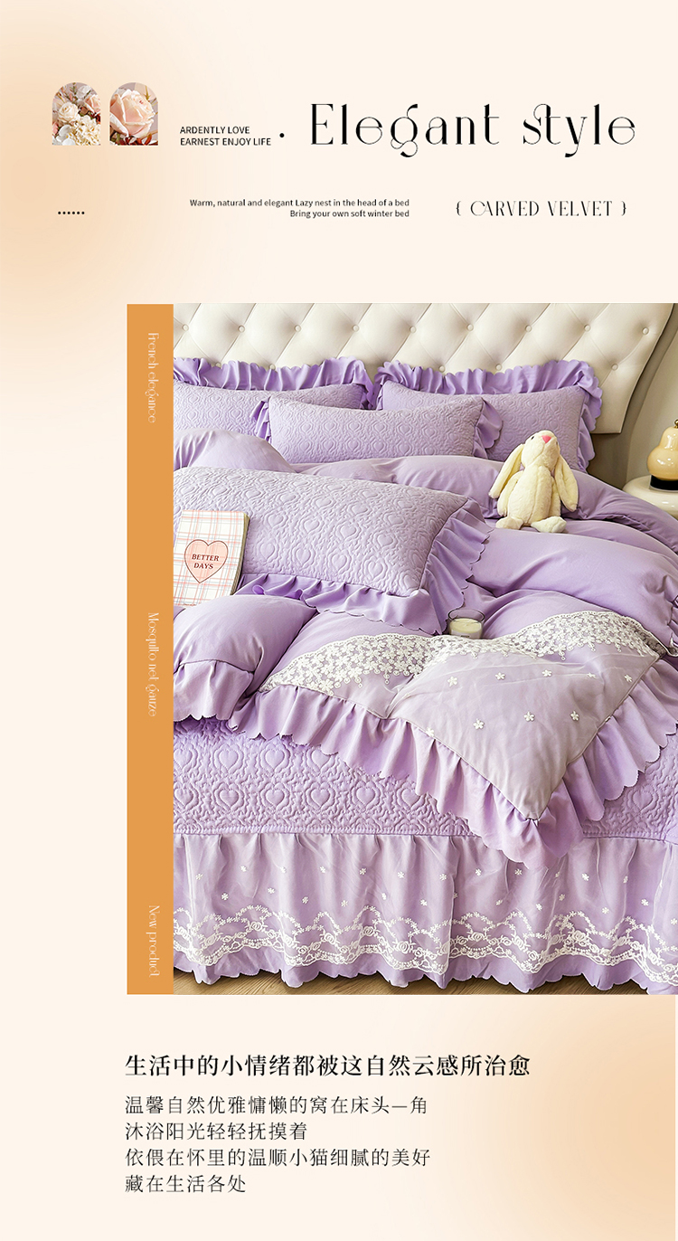 (总)漫布云 2025新款230g高克重韩版立体盘花牛奶蚕丝绒绣花四件套床裙款被套-洛丽塔系列,洛丽塔-嫩黄 ,洛丽塔-香芋紫 , 洛丽塔-珍珠粉,洛丽塔-婴儿蓝