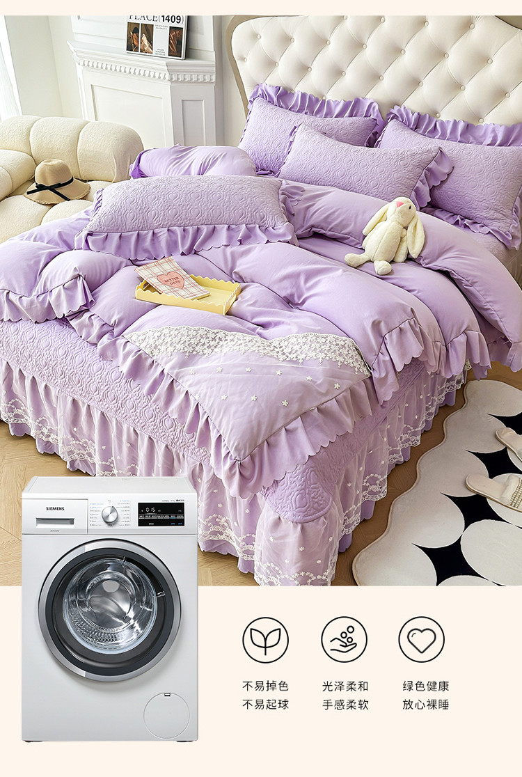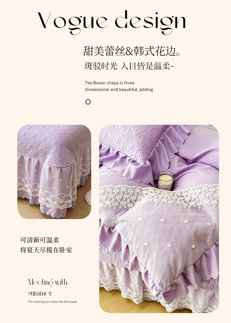 (总)漫布云2025甄选A类凉豆豆纯色系蕾丝花边床裙款床单款床盖床单凉席三件套蕾丝床盖款凉席三件套,唯爱-梦幻紫, 唯爱-天空蓝 ,唯爱-新芽绿, 唯爱-婴儿蓝 ,唯爱-樱花粉