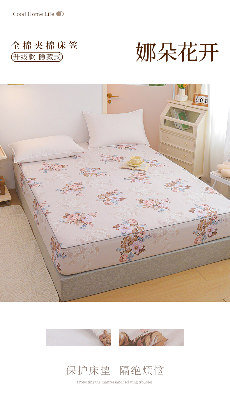 商品名称:元元 2024新款小清新隐藏式夹棉套件单品-夹棉床笠 娜朵花开