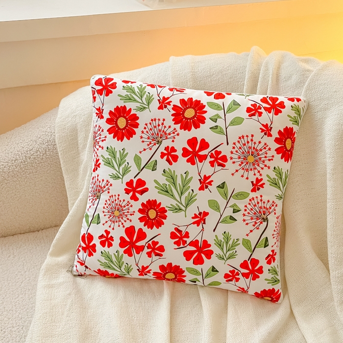 番茄+ 2025新款四季磨毛亲肤抱枕被 朱瑾花