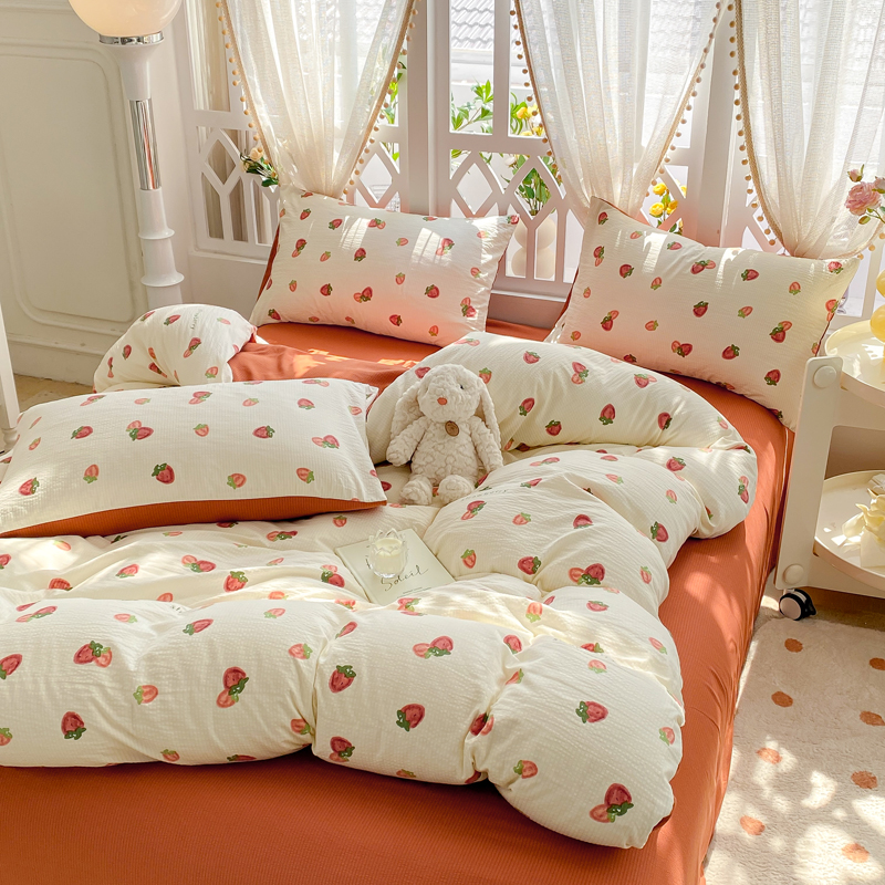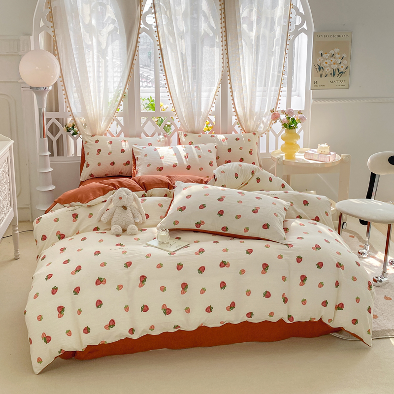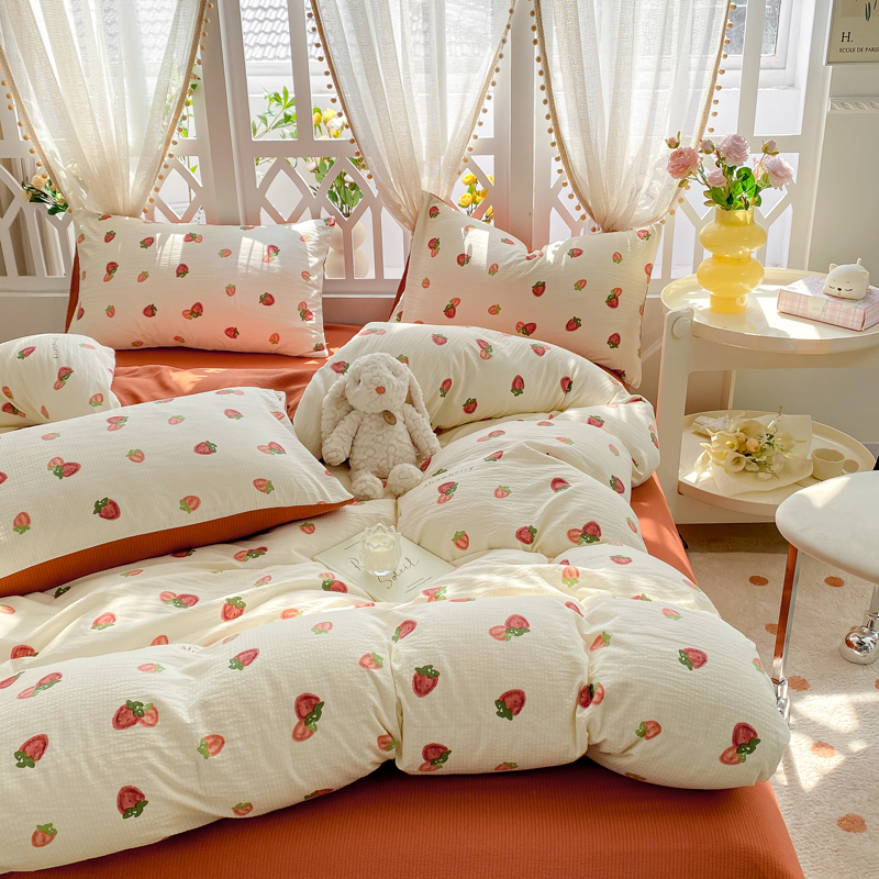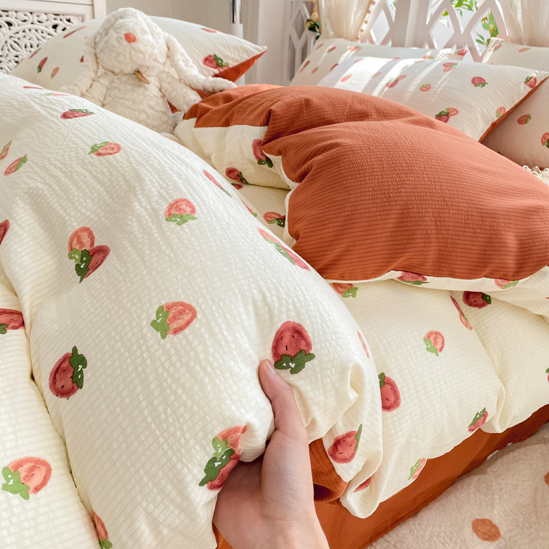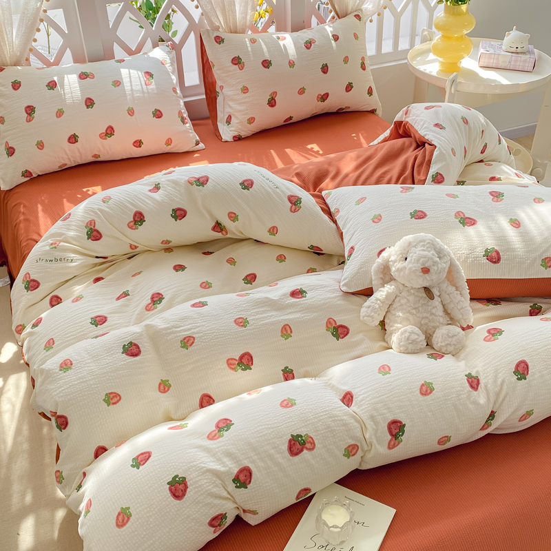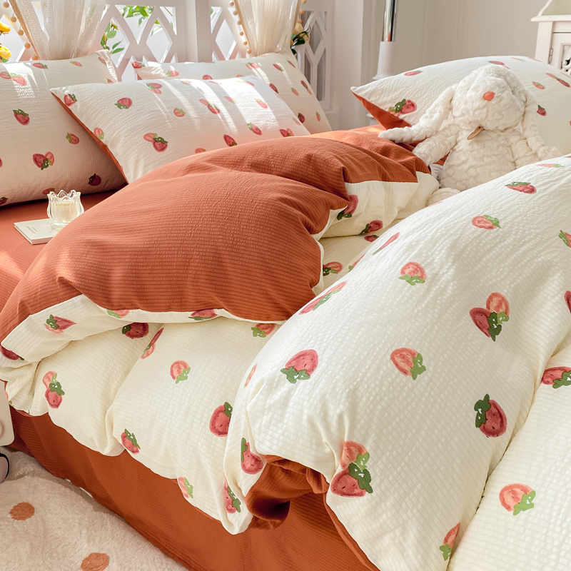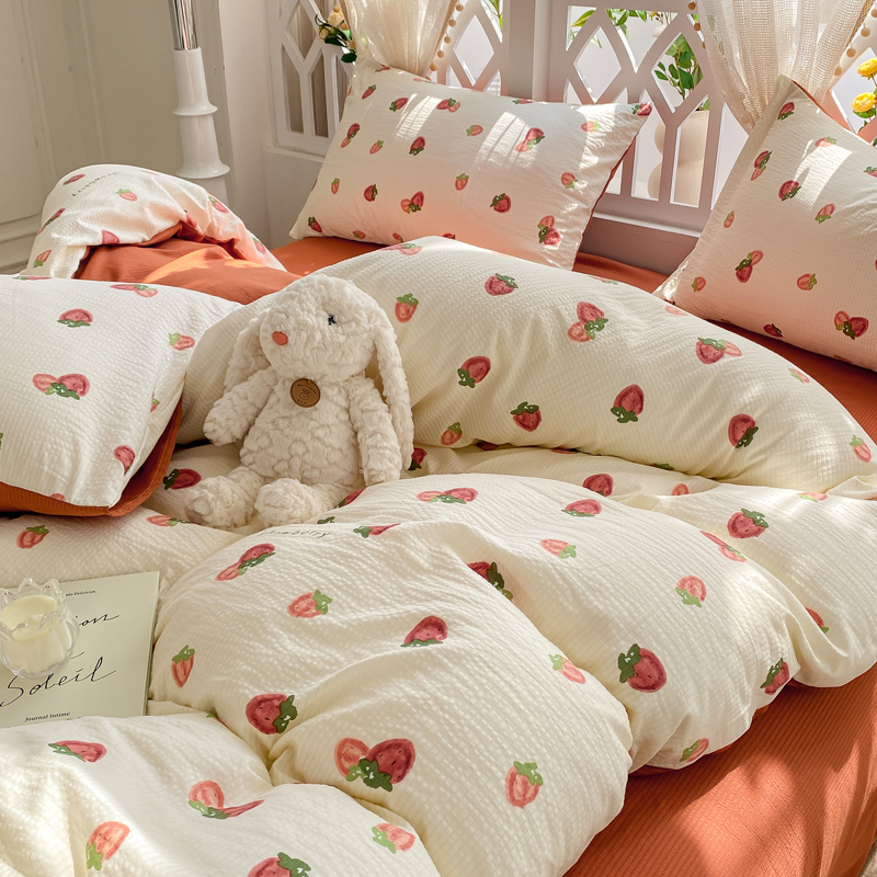 当前位置: 91家纺网 > 商品网购 > 床品套件 > 四件套 > 其它四件套 > 牛牛家纺 牛牛 2024新款泡泡棉小清新四件套(1) 草莓园