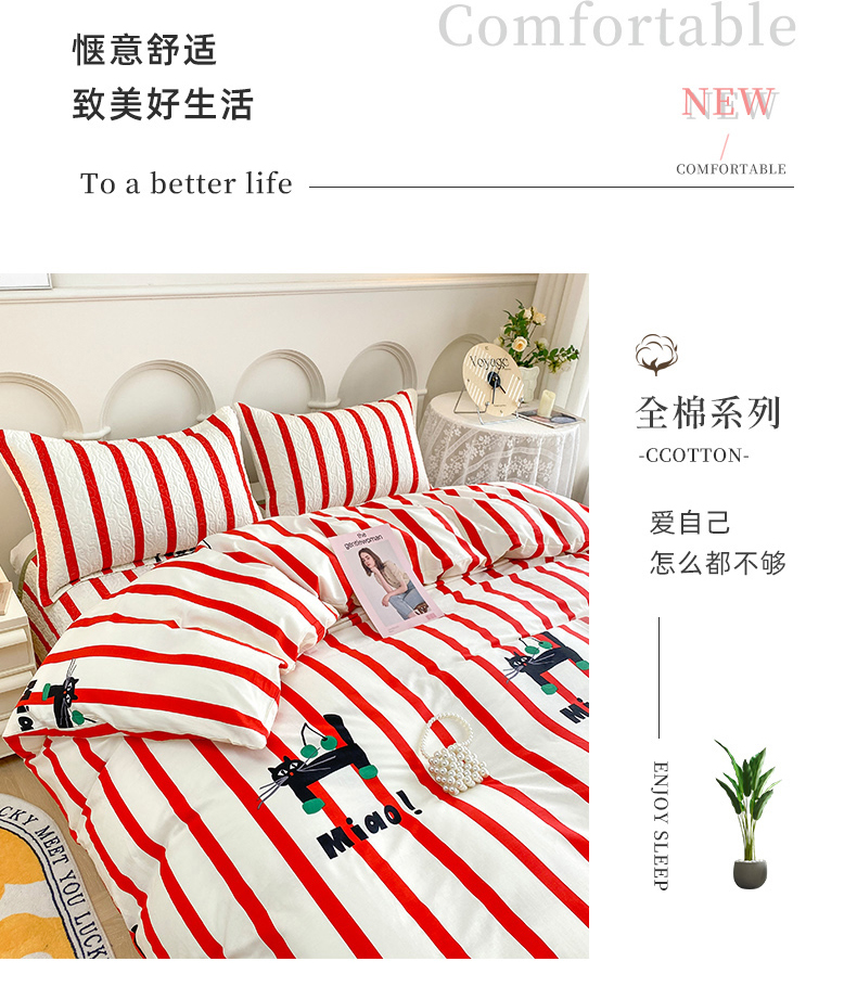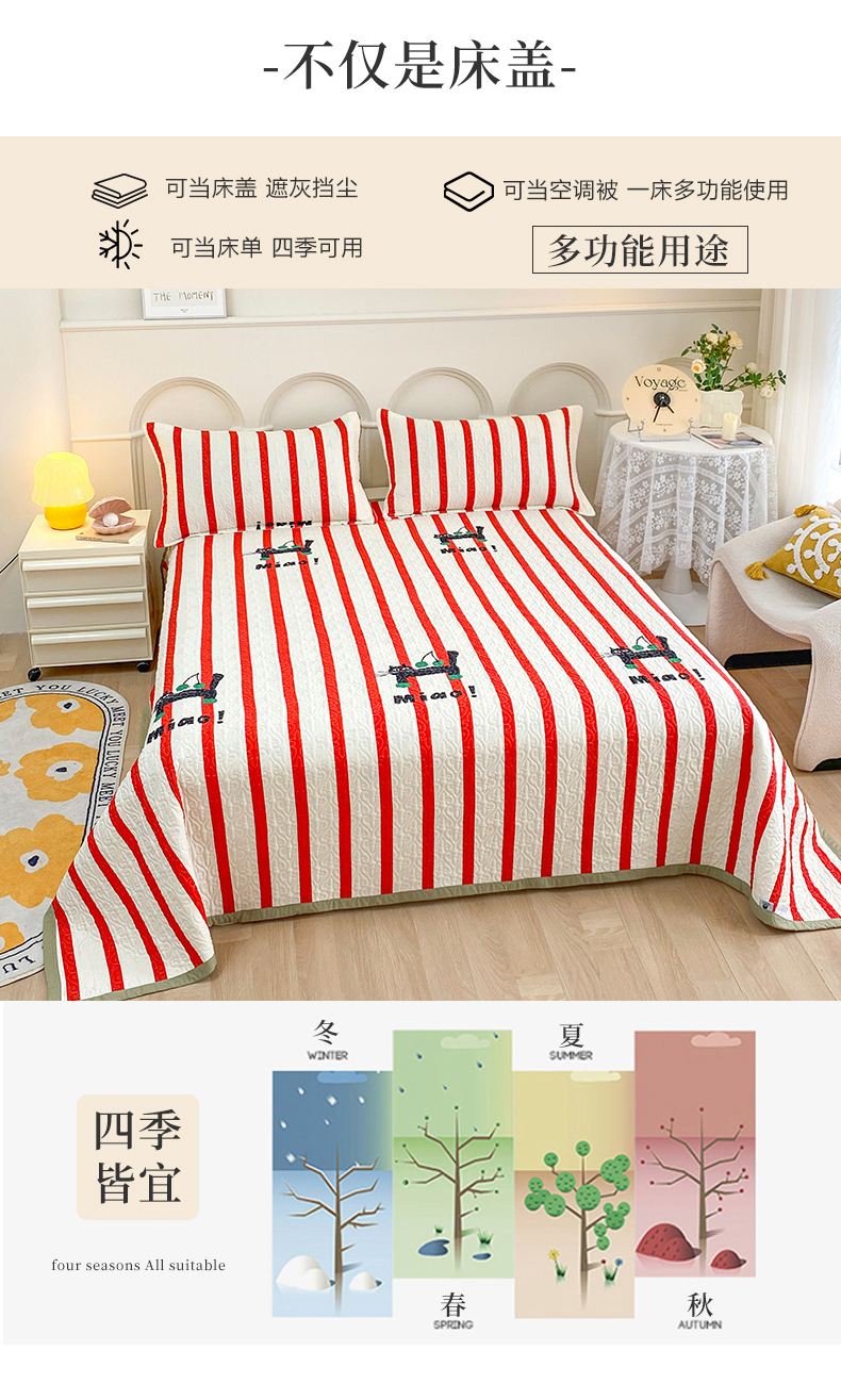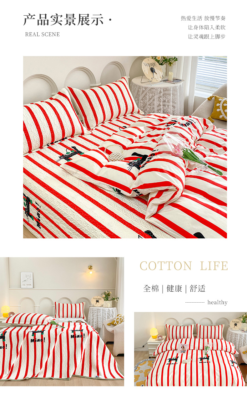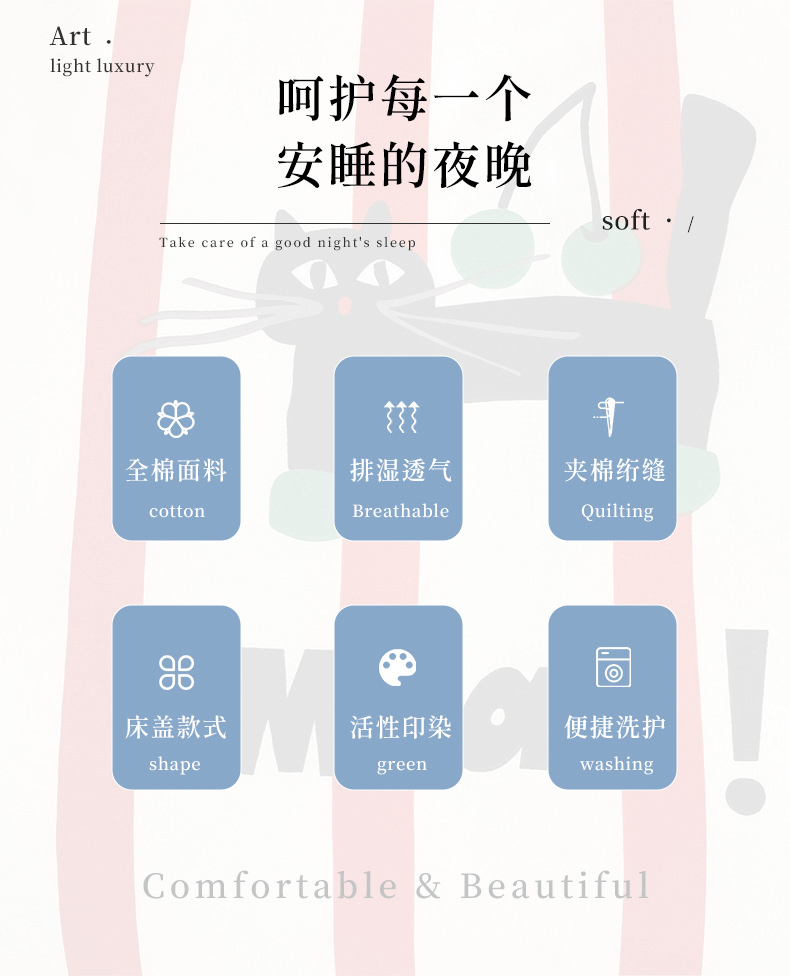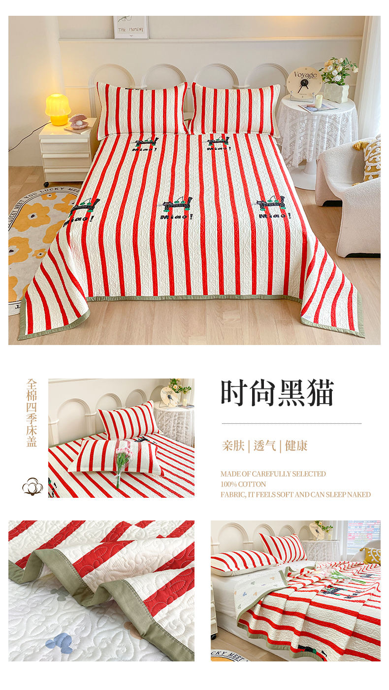 • 91家纺网 家纺一手货源 找家纺 胜权40支A类全棉夹棉绗缝13372简约款印花多功能床盖夏被四季通用时尚黑猫