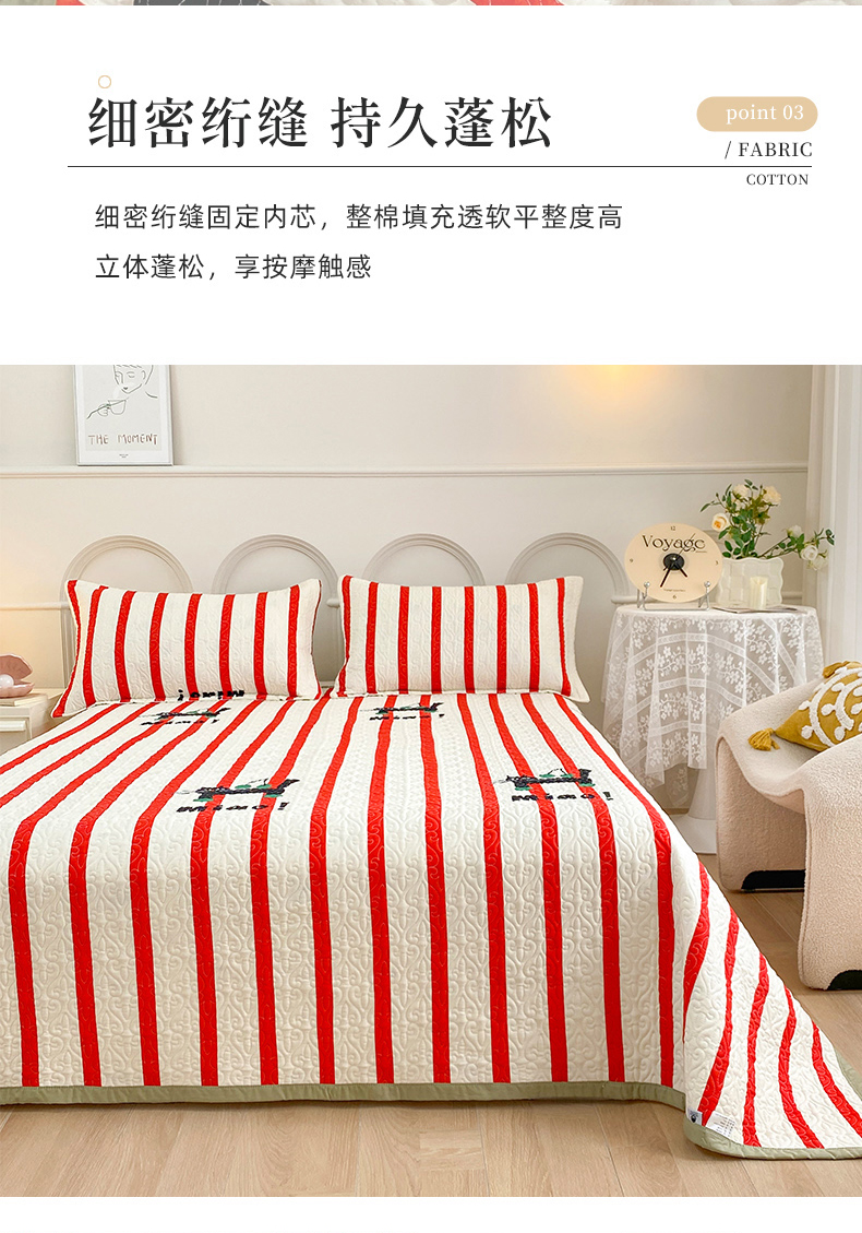 胜权40支A类全棉夹棉绗缝13372简约款印花多功能床盖夏被四季通用时尚黑猫