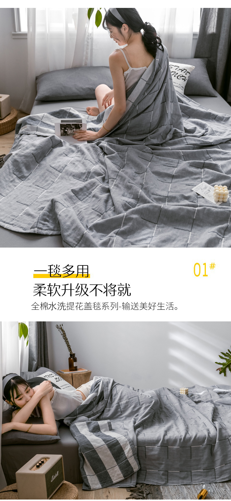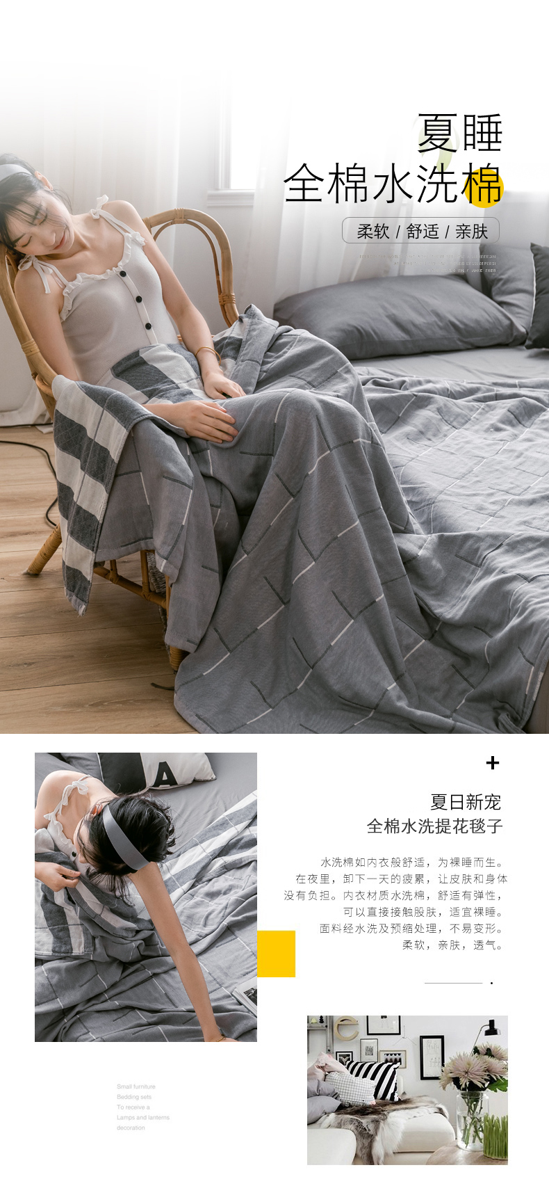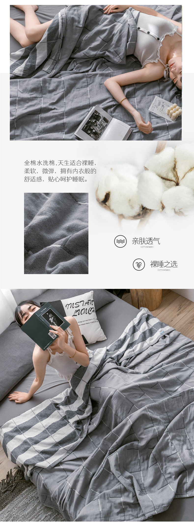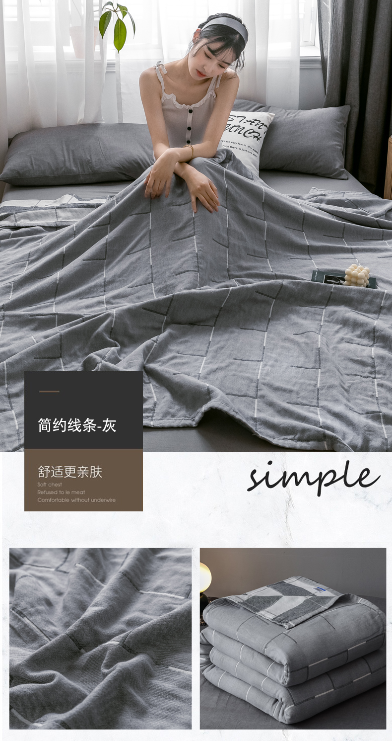 商品名称:朴尔家纺-毛巾被 2024新款三层水洗棉全棉纱布毛巾被 简约线条-灰