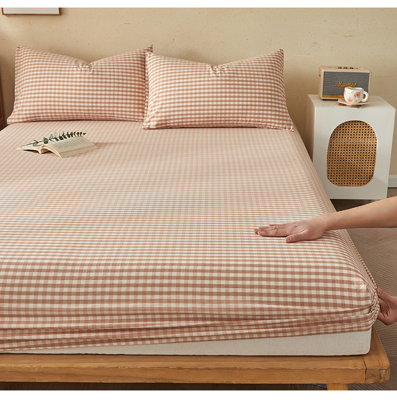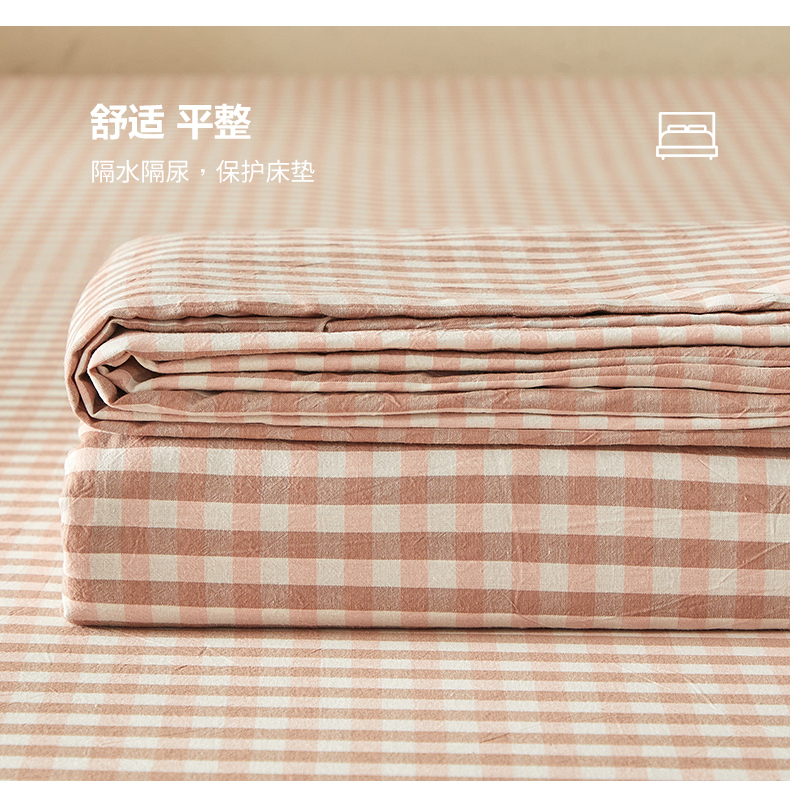 暖阳 2025新款A类无印风防水床笠 单床笠 粉玉小格
