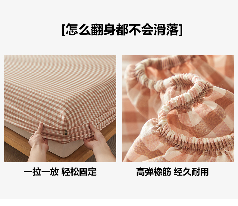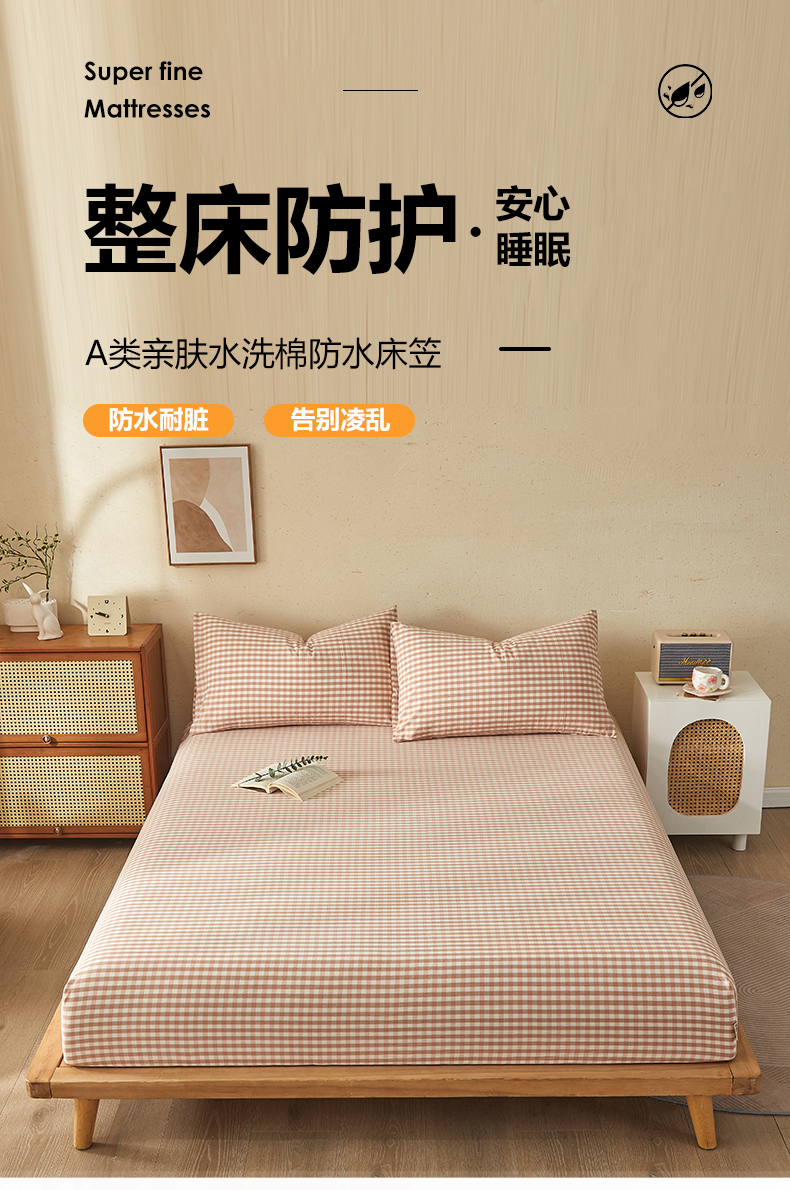 商品名称:暖阳 2025新款A类无印风防水床笠 单床笠 粉玉小格