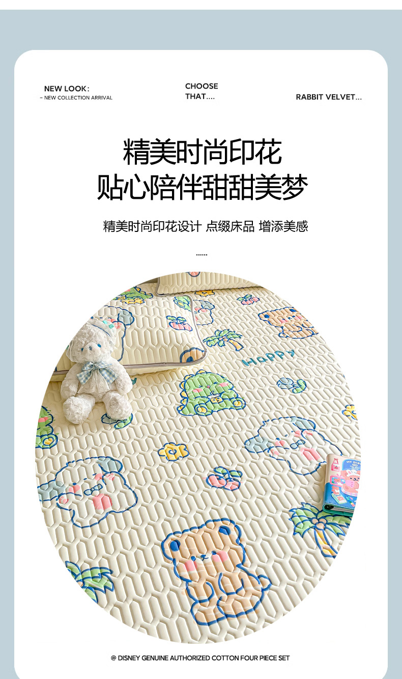 (总)沐慕 2025新款A类200g加厚雪花绒180g牛奶绒四件套,黄油小熊,爱心小熊,豹纹猫咪,彩虹,草莓兔,蛋糕兔,蛋糕小兔,粉嫩郁金香,花花粉兔,可爱熊,小橘子,星星月亮,熊猫伙伴,雪纳瑞,字母萌宠
