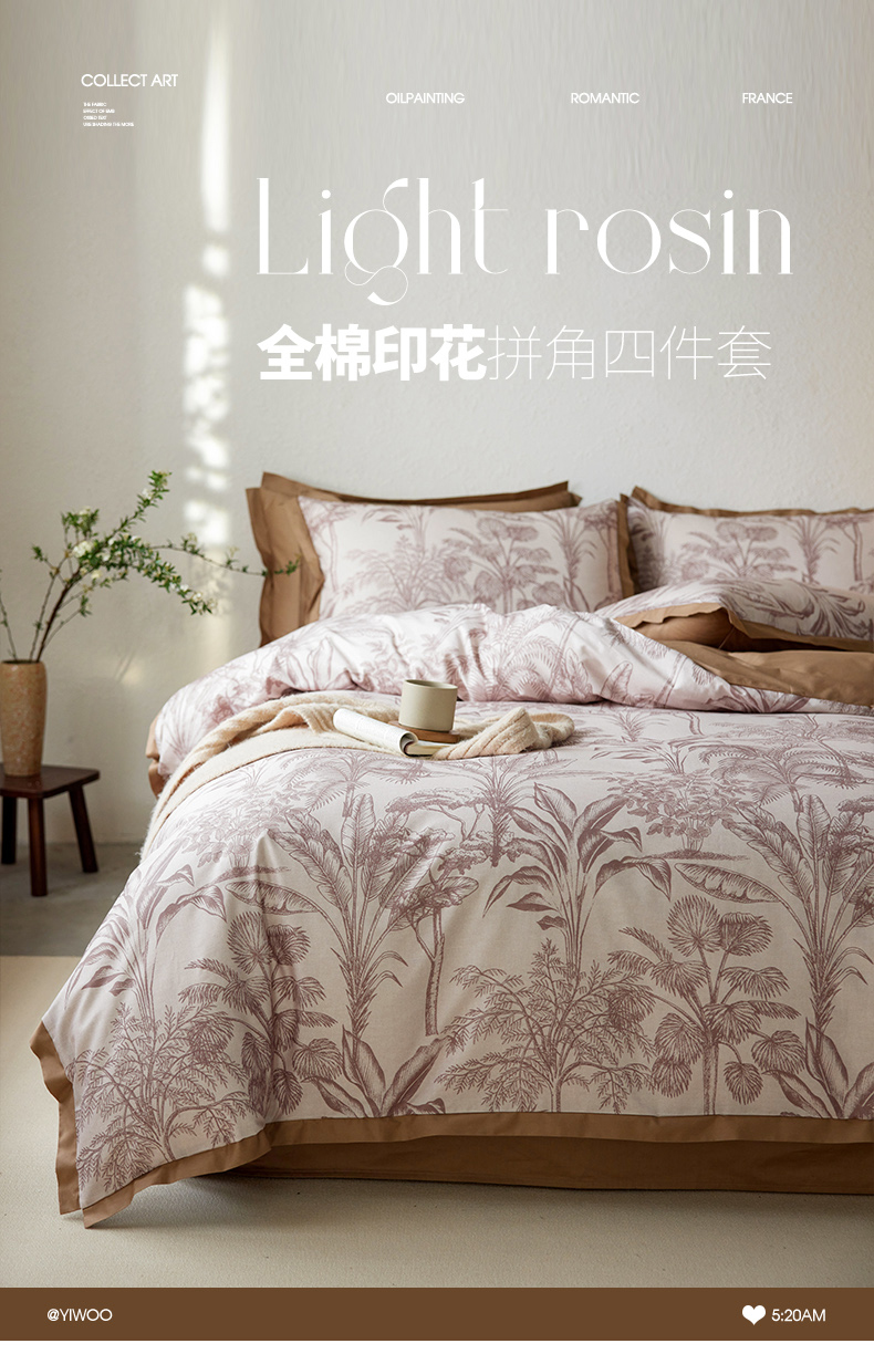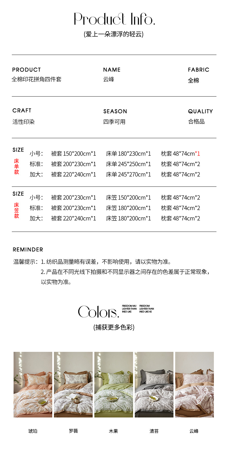千朵森 2024新款A类全棉拼角印花四件套(风格二) 云峰