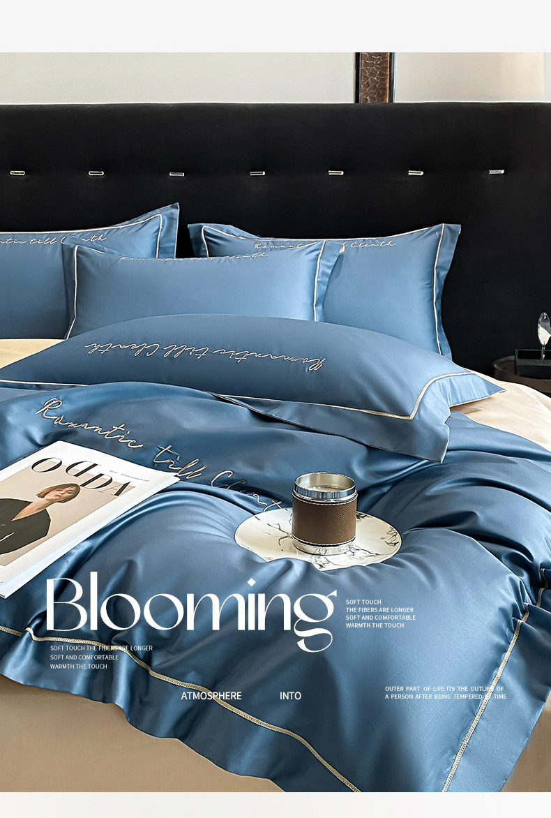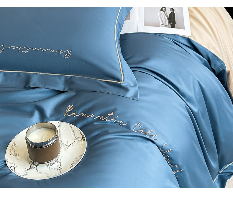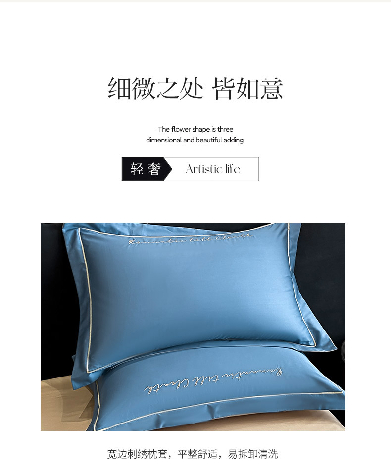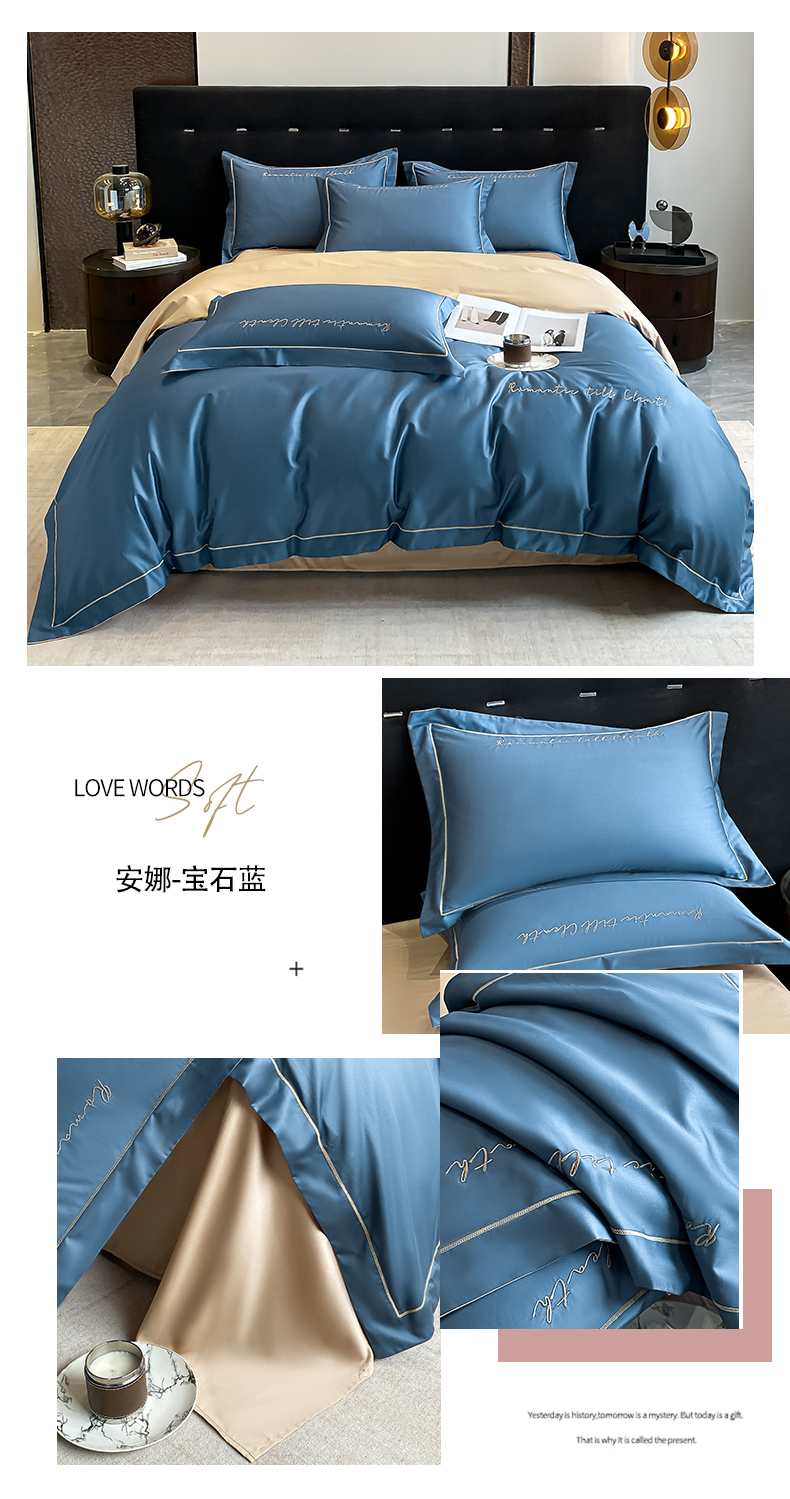 拼社家纺 2024 全棉长绒棉纯棉四件套刺绣轻奢床上用品-安娜系列 安娜-宝石蓝