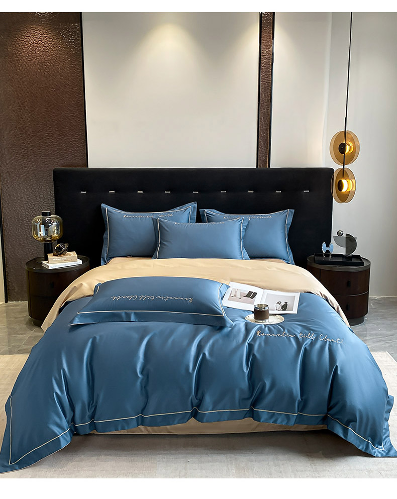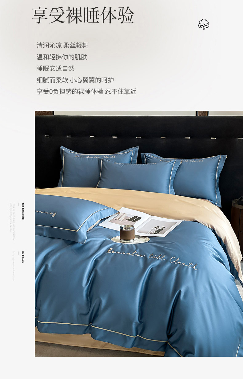 (总)拼社家纺 2025新款母婴及全棉水洗棉刺绣四件套纯棉床上用品,艾玛绿+卡其,繁星蓝+卡其,繁星蓝+玫瑰粉,红豆沙+雅灰,迷雾灰+玫瑰粉,蜜粉+雅灰,奶油白+卡其,奶油白+香橙,牛仔蓝+浅蓝,香橙+雅灰