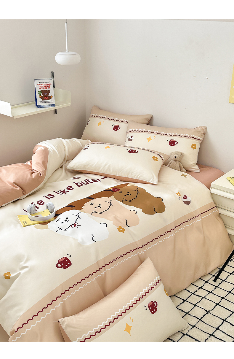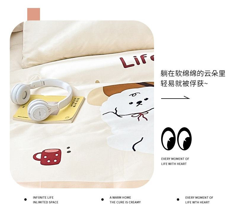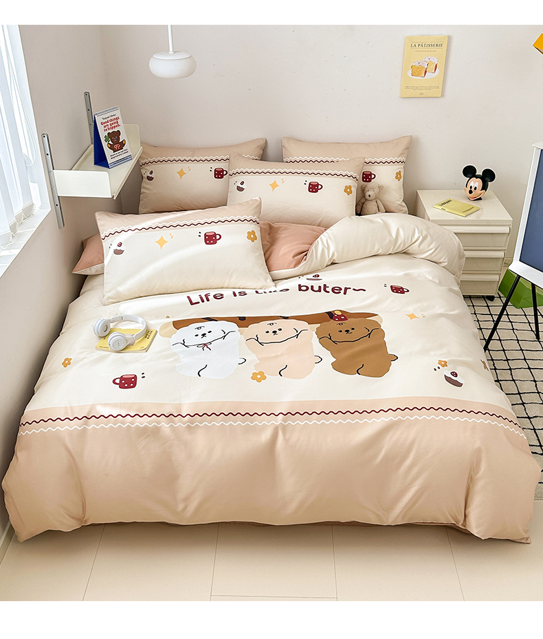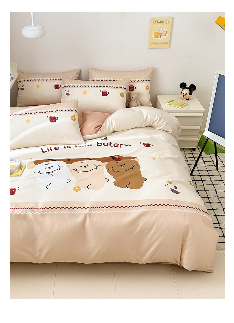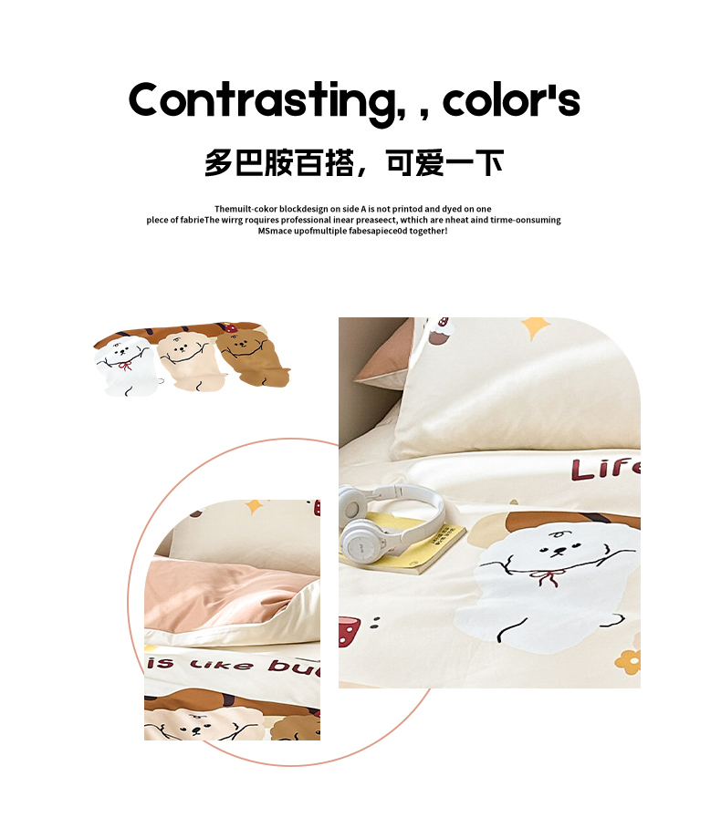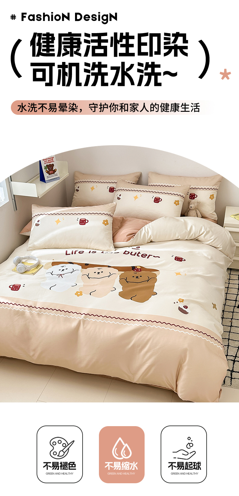 (总)摩卡(乐趣) 2025秋冬新品网红款水洗棉四季款四件套,豹纹熊-粉,豹纹熊-绿,彩虹兔,公仔蓝,梦幻粉,梦幻蓝,棋盘格公仔,太阳花粉,天使熊-粉,天使熊-咖,小熊头,熊头白,熊头橙,熊头咖,熊仔白